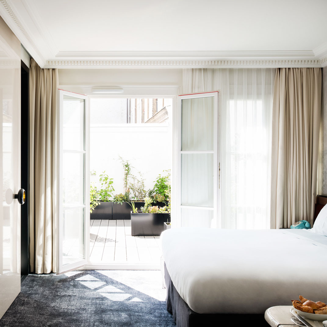 Meanwhile, upstairs, the bedrooms are soothing simplicity itself, luxe light-filled havens that promise to restore you to health and sanity, no matter what you’ve been up to the night before. It’s not often that a boutique hotel reminds us so vividly of what made us care about hotels in the first place.