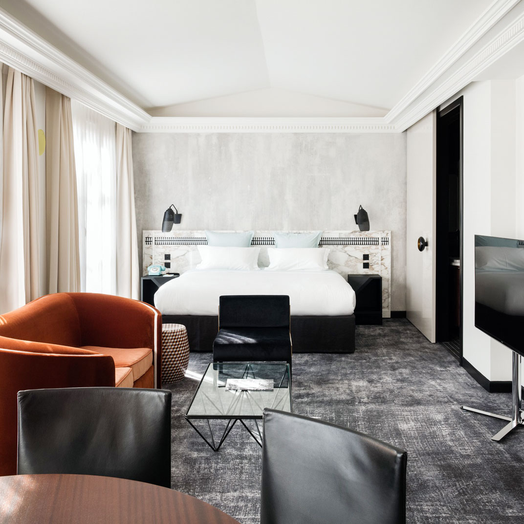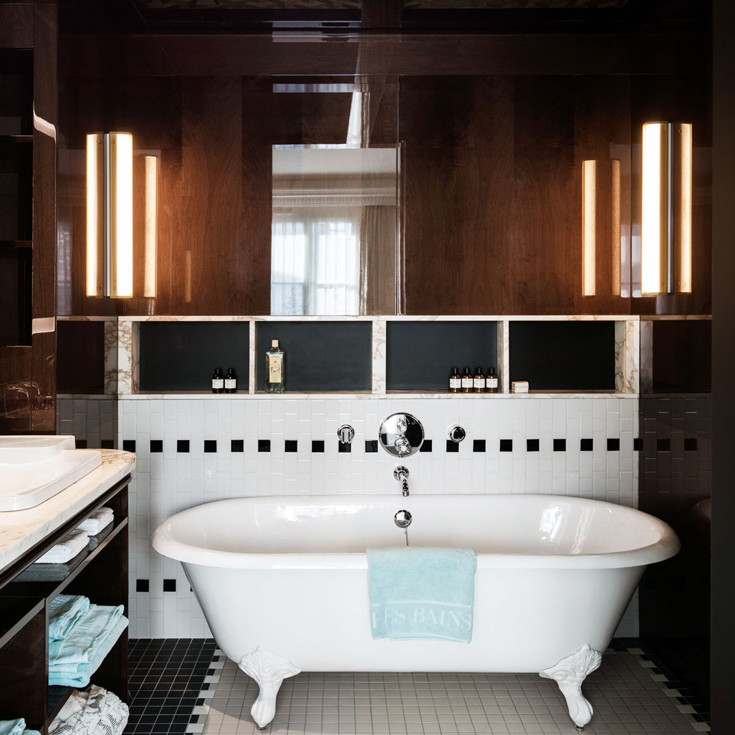 Studio 54, New York’s most notorious nightclub, is an ancestor of sorts (via Ian Schrager) to the whole boutique-hotel trend. But imagine its Parisian equivalent shutting its doors for a renovation and actually becoming a luxury boutique hotel, and you’ve got the basic idea of what Les Bains is all about. In the late 1800s it was a public spa, and by 1980 Les Bains Douches was a bona fide den of celebrity-studded iniquity.