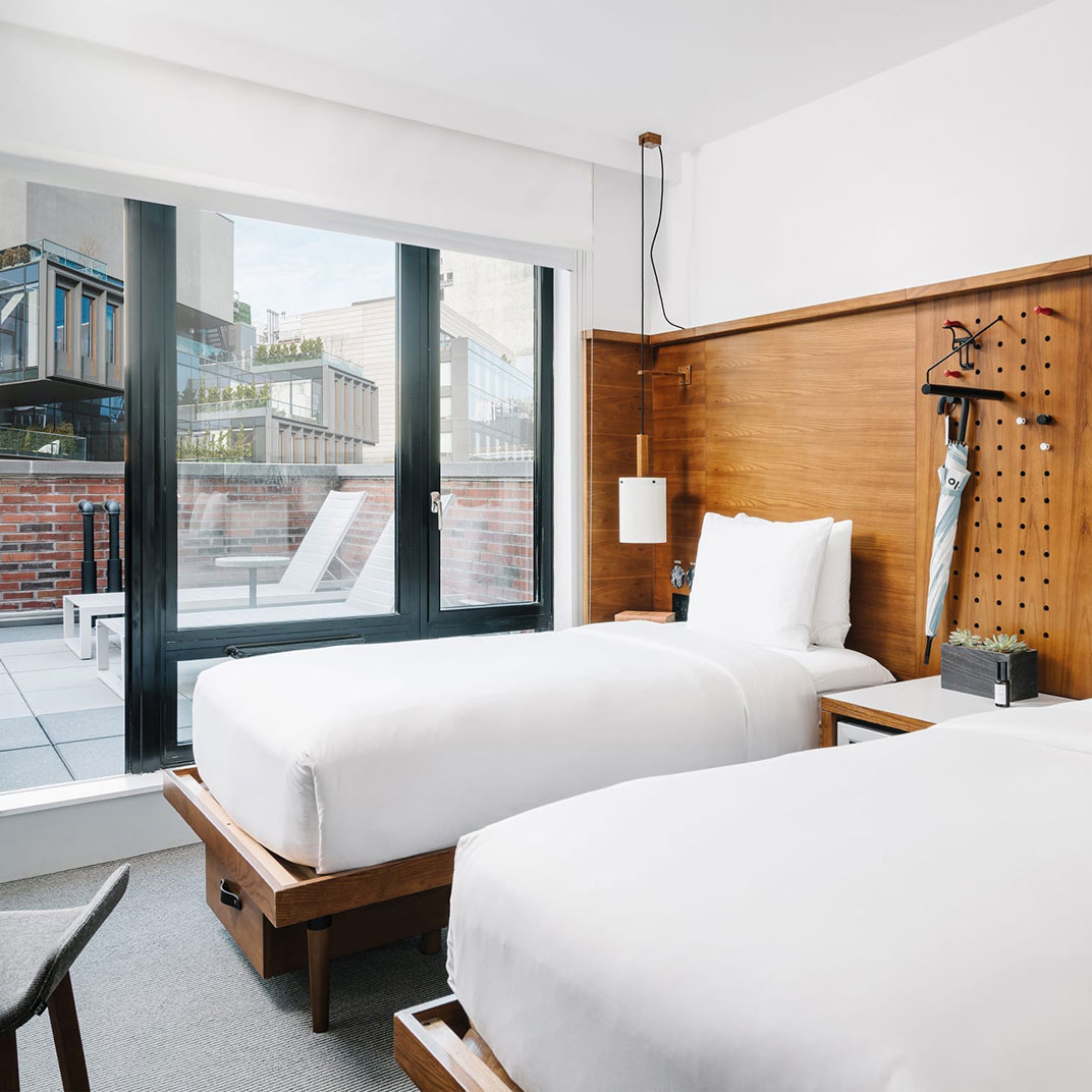 To be perfectly fair, the size of the rooms is also a factor. At 150 square feet, Arlo’s are small, even by local standards — but if you want a suite spacious enough to swing a cat in (this is a figure of speech, please do not swing cats) and you want it in Lower Manhattan, the economics are not in your favor. And here, while the rooms are compact, they’re plenty comfortable, finding space for mini-fridges and work desks, and, if you’re lucky, opening onto an outdoor terrace. Just pack decisively.
