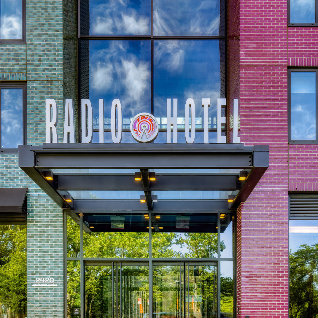 The most immediately arresting thing about Radio Hotel NYC has to be its location; this spot, in the corner of Washington Heights known as Little Dominican Republic, is at least 100 blocks uptown from the majority of Manhattan’s boutique hotels, which means it brings a much-needed dose of stylish hospitality to a part of the city that’s long gone without. The hotel itself is eye-catching as well, of course, its colorful structure towering above its surroundings, and its interiors decorated in an even more colorful contemporary style.