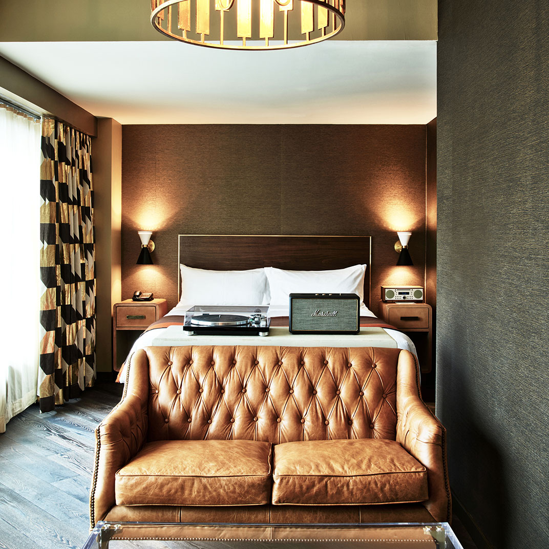 Downtown funk comes in the form of the brick and iron facade, and that natural light can’t fail to penetrate the wide glass roof of the eight-story atrium, making most other New York hotels feel gloomy and claustrophobic by comparison. Far from huge, though large enough by New York standards, rooms are organized around the atrium, each exquisitely designed and hyper-modern, yet authentically calming. High-speed internet and a work desk ensure you’ll get your work done. No shortage of luxuries, either, including Frette linens and robes and a selection of Five Wits bath products, which you’ll surely feel tempted to liberate.