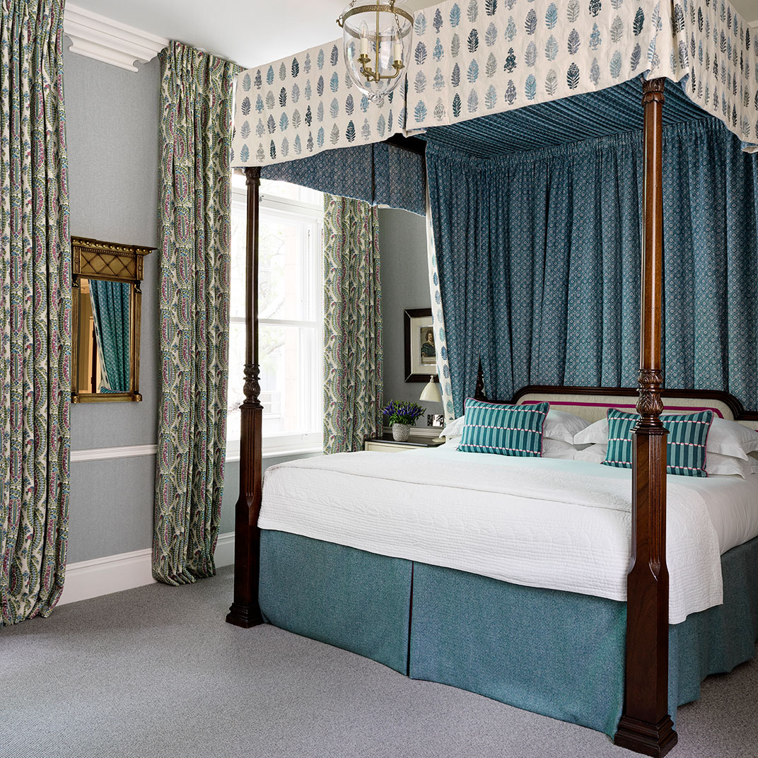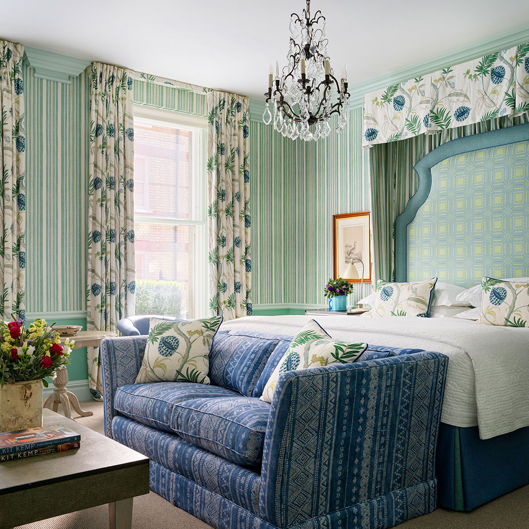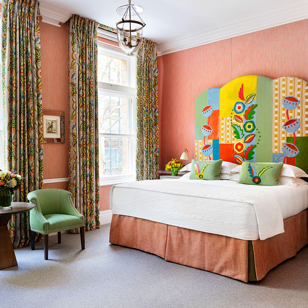 Rooms are decorated in a classic style, classic in inspiration but contemporary and always light, each one featuring Kit Kemp’s signature dressmaker’s dummy, outfitted in the same fabric as the room itself. Beds are expansive and luxurious, as are the marble-and-mahogany bathrooms, complete with a pair of bathrobes and Molton Brown bath products.