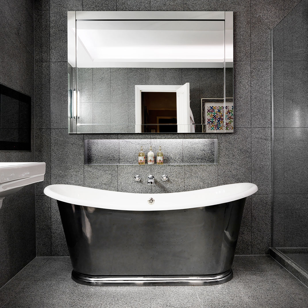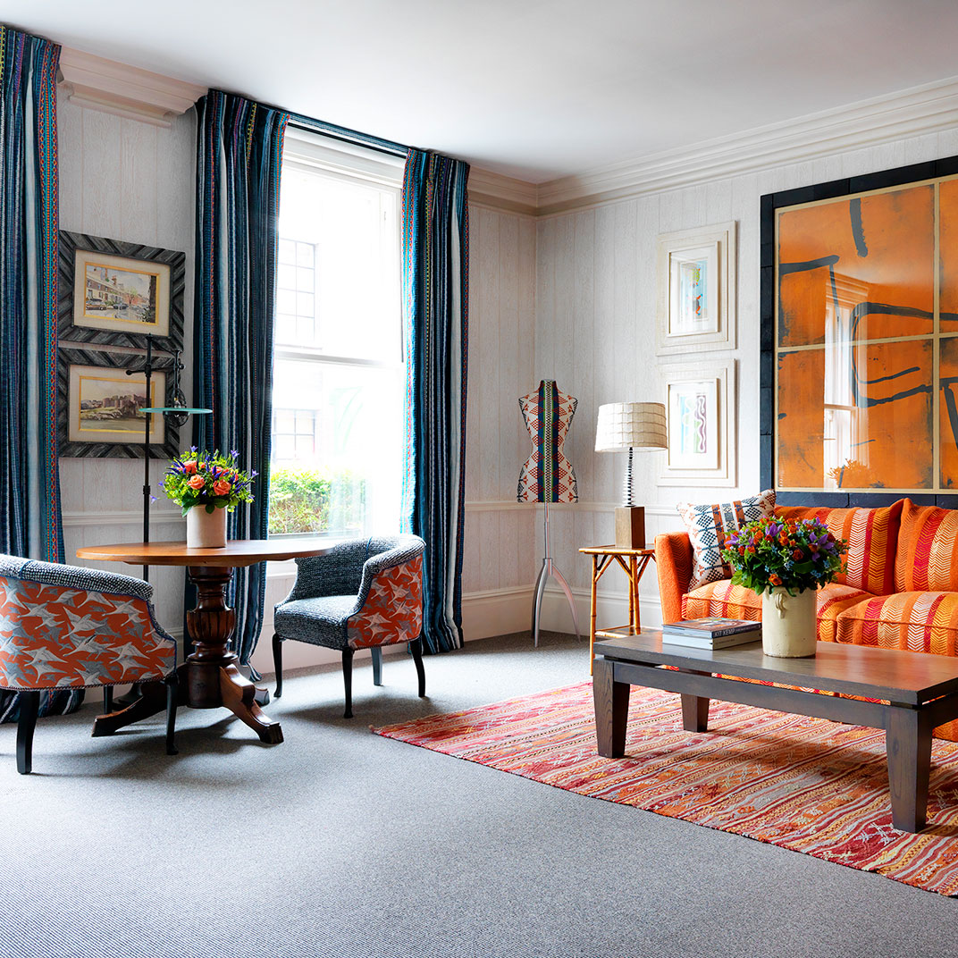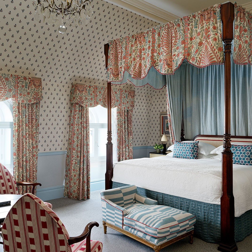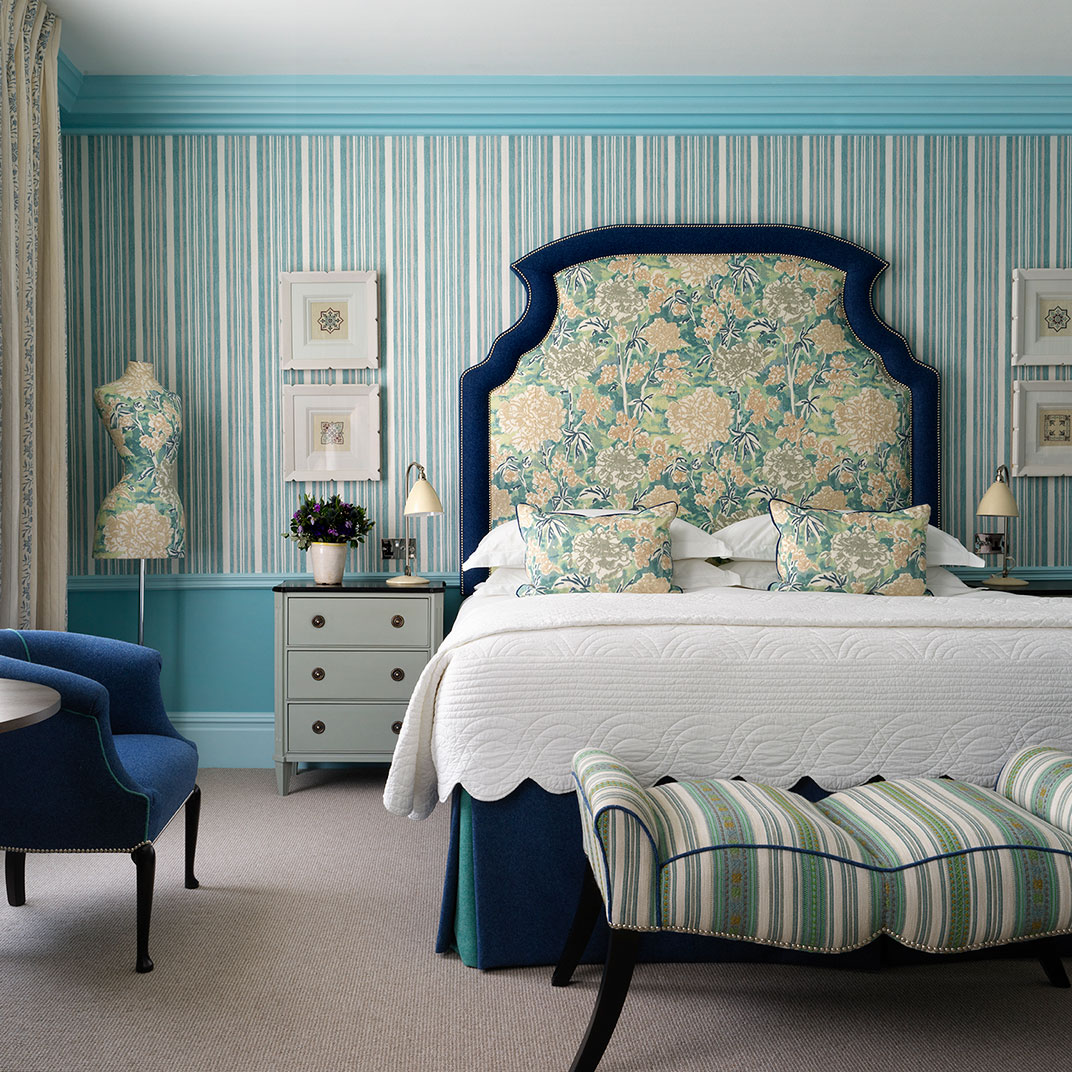 Rooms are decorated in a classic style, classic in inspiration but contemporary and always light, each one featuring Kit Kemp’s signature dressmaker’s dummy, outfitted in the same fabric as the room itself. Beds are expansive and luxurious, as are the marble-and-mahogany bathrooms, complete with a pair of bathrobes and Molton Brown bath products.