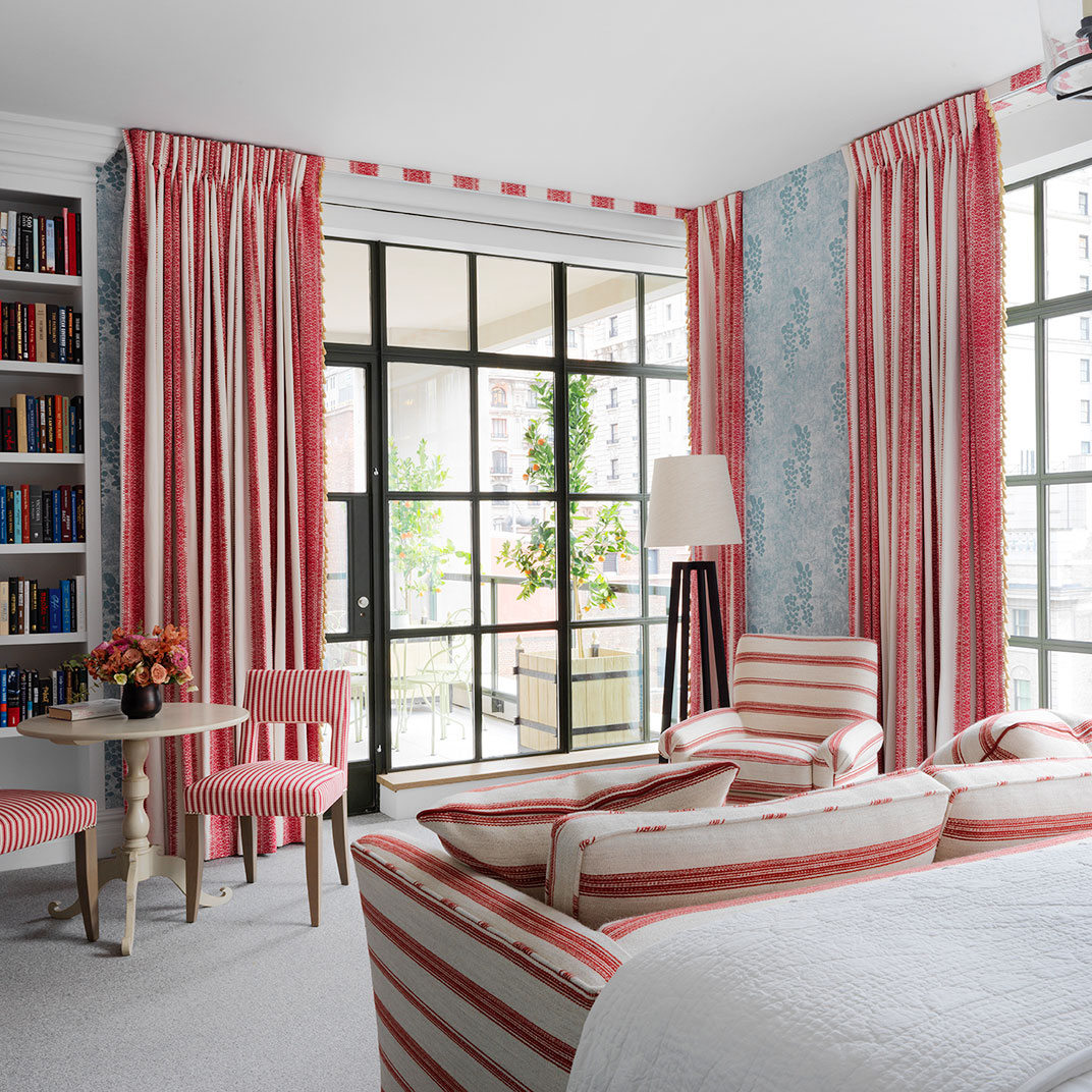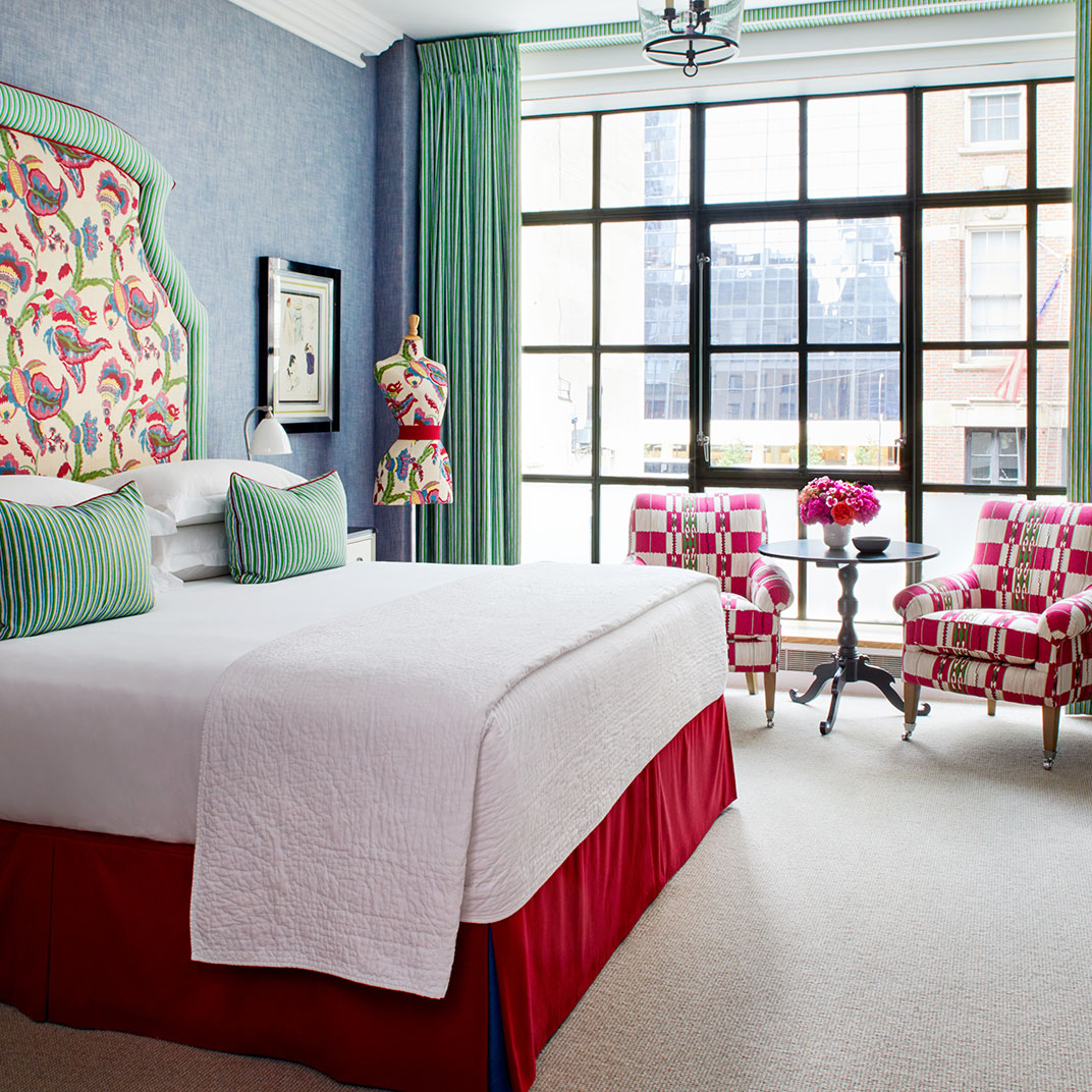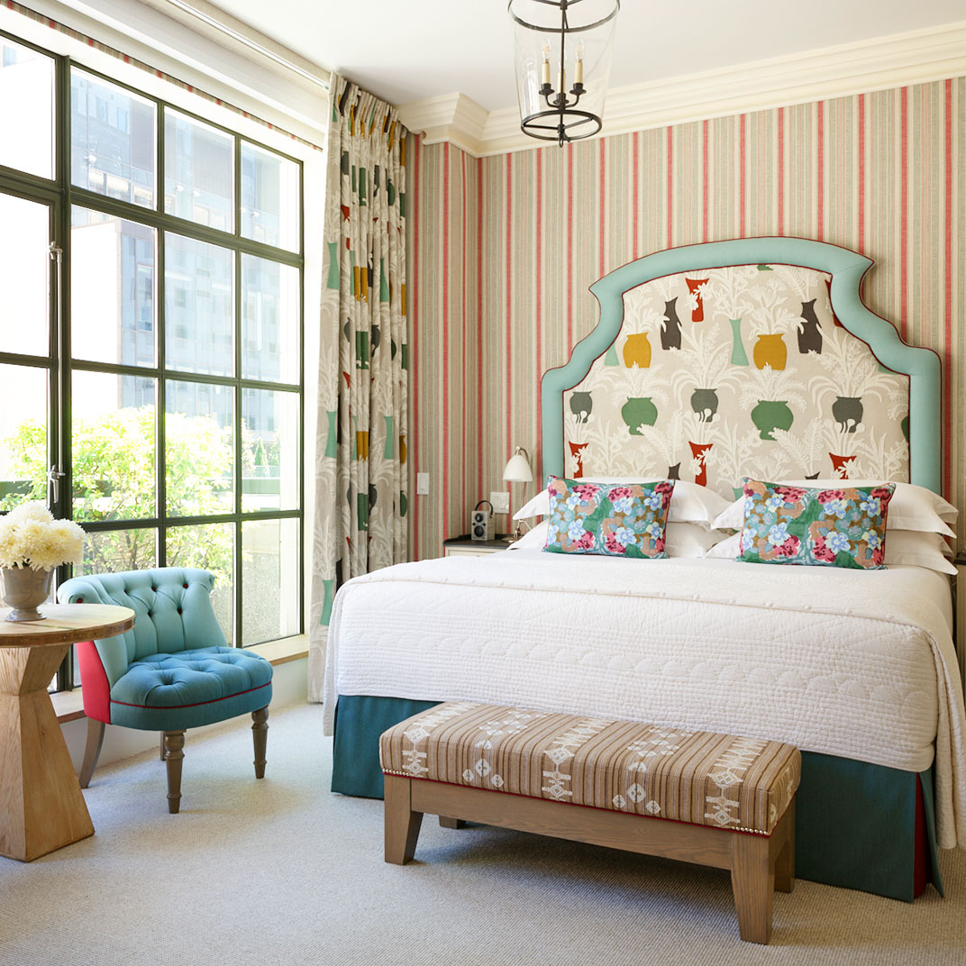 And the rooms! Here, as usual, owner-designer Kit Kemp puts her stamp on things, with trademark bold colors tuned to complement Midtown’s slightly muted palette, and the usual exquisite taste in details, from the artwork to the bathroom fixtures to those steel Crittall windows. If there’s any down side at all, it’s that now we can’t help but wonder what’s next — if you can make it here and in London, then surely you really can make it anywhere....