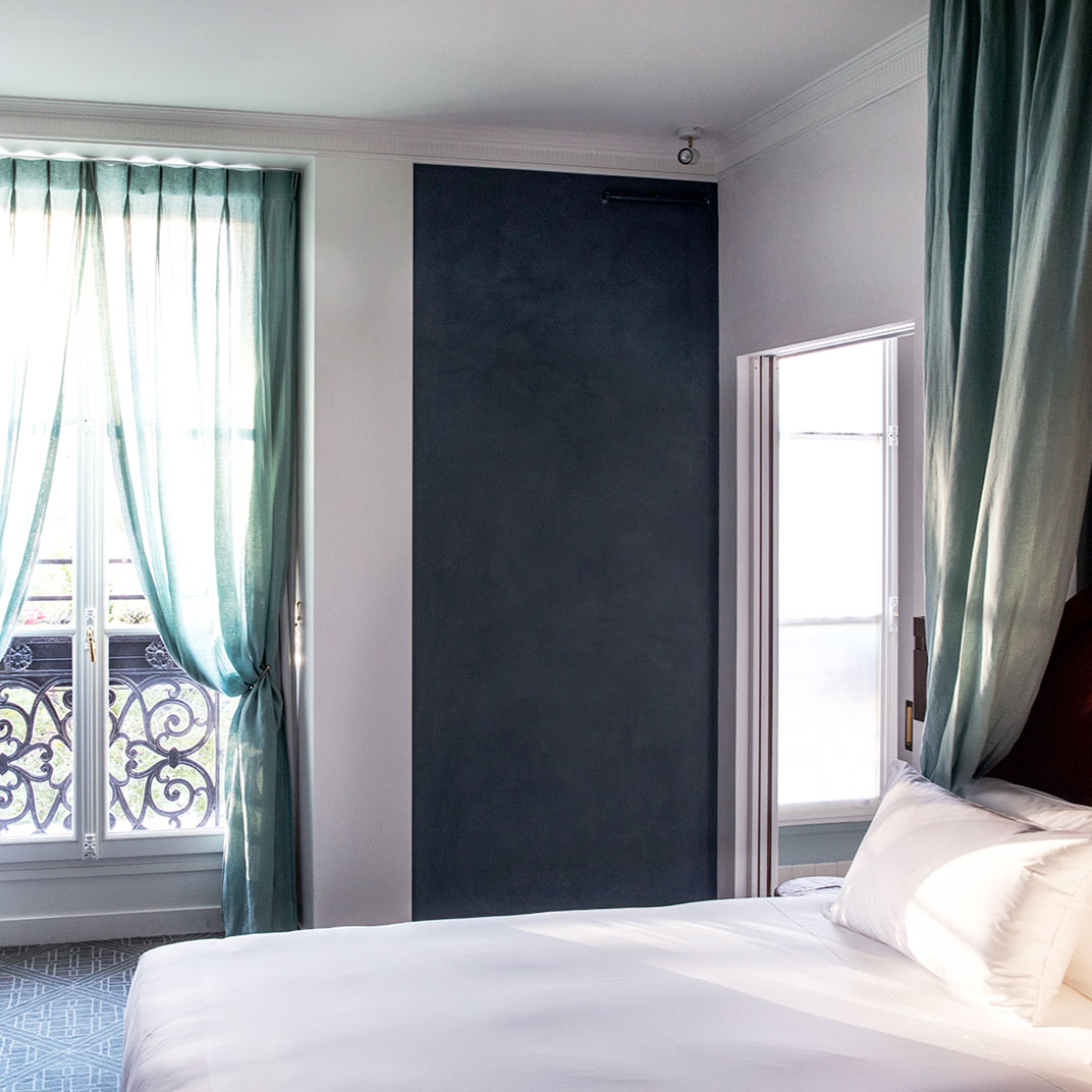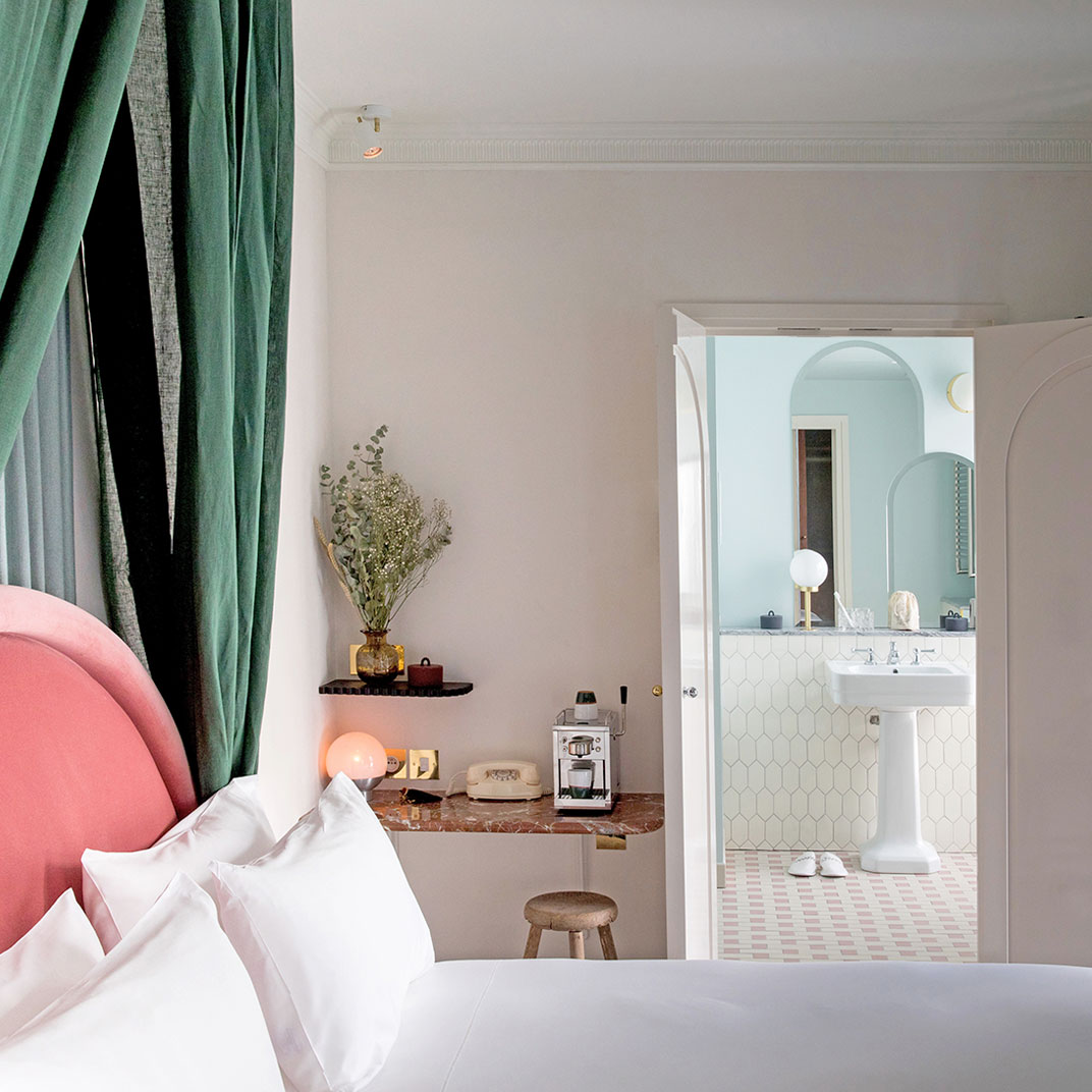 Grands Boulevards makes its home in a freestanding house, or hôtel particulier, that dates back to the days of the Revolution. It’s a rarity in this busy corner of Paris, and it’s hidden from the street, accessible only via a concealed passageway. This means not just the frisson of being in on a secret, but it means a measure of peace and quiet, too — this hotel knows how to party, but it also knows how to get a good night’s sleep.