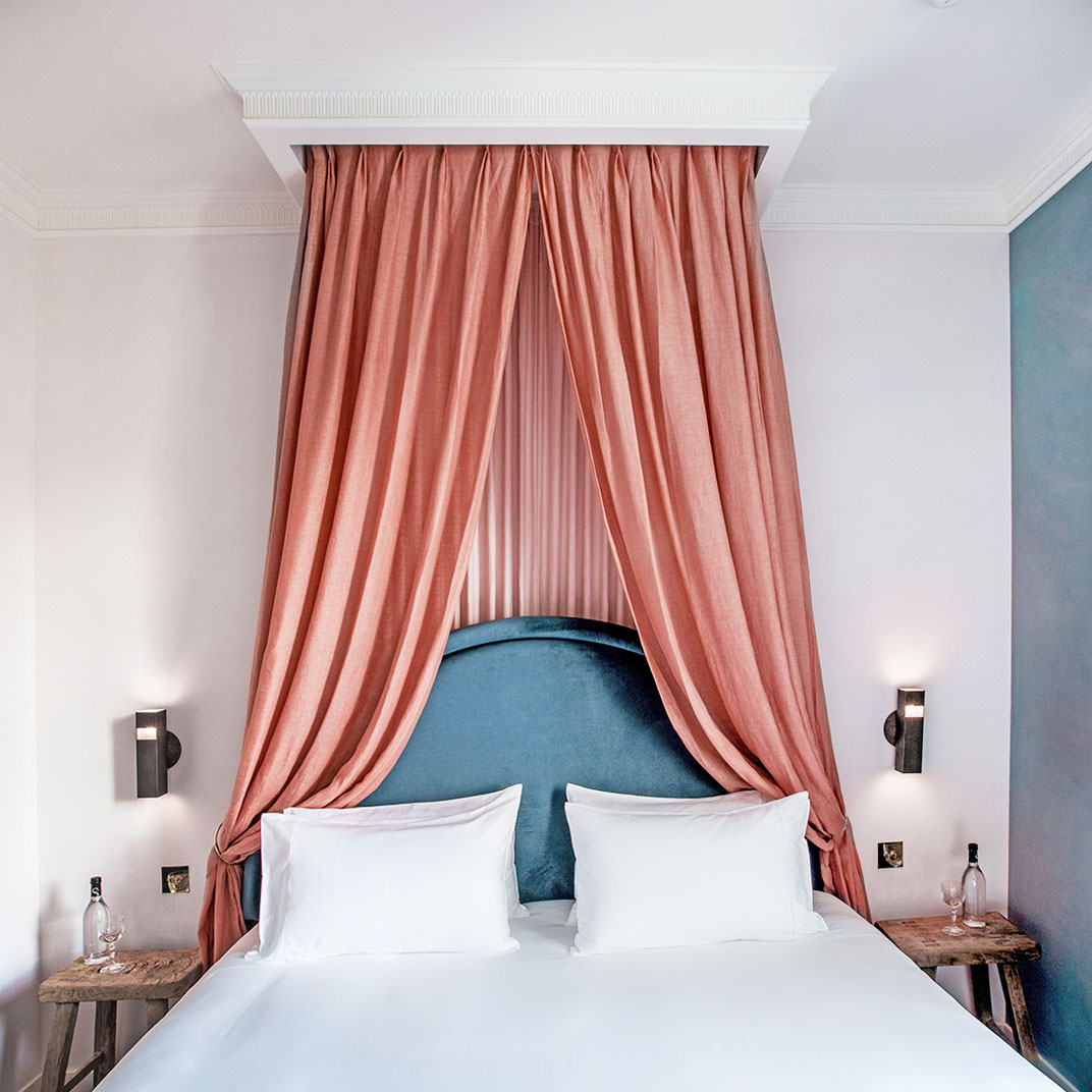 To that end, it’s got the same handmade beds made famous by the Grand Pigalle. It’s also got that signature historical-romance look, and a bit of updated country-house style as well, a heady design cocktail courtesy of Experimental’s designer of choice, Dorothée Meilichzon. And while many Parisian hotels make do with a little breakfast nook, this one splashes out on a restaurant and a buzzing bar with a terrace and a view.