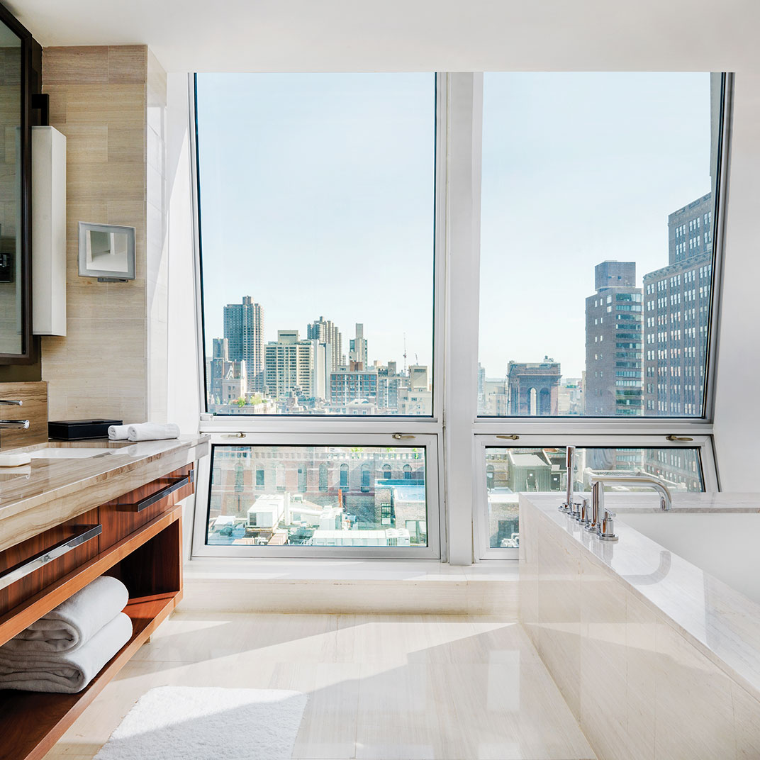 If the towering structure is any guide — that’s meant rhetorically, by the way, of course it’s a guide — then you could safely expect The Langham, New York, Fifth Avenue to be a pretty big deal. And naturally it is. This sixty-story skyscraper joins the Empire State Building on the Midtown skyline, and the architecture, by Gwathmey Siegel & Associates, is suitably monumental.