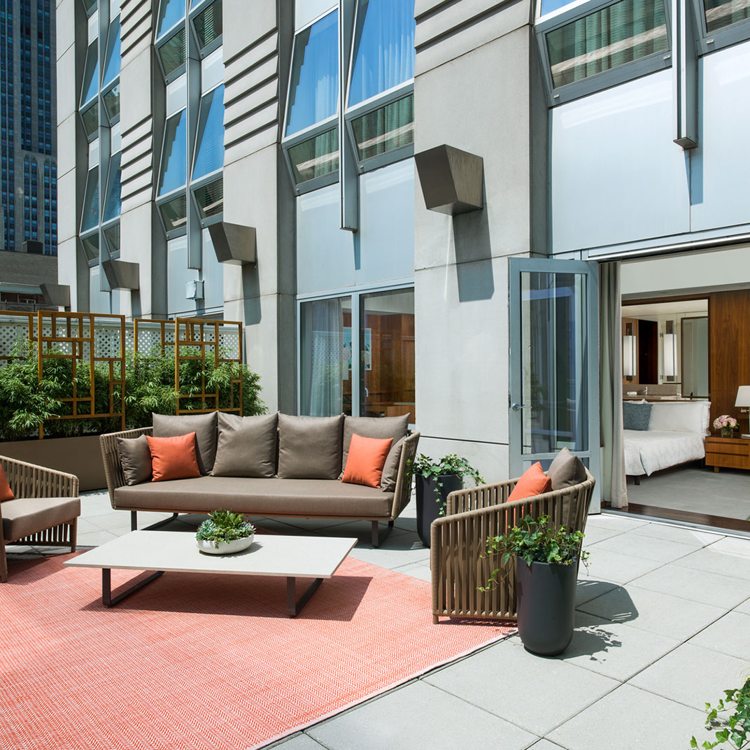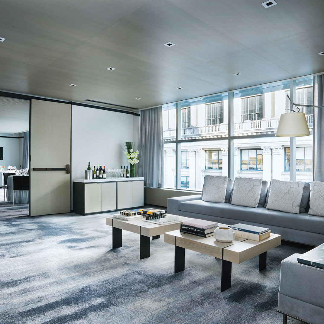 One might wonder if what’s inside quite measures up to what’s outside, but a look at these rich, modern and supremely confident interiors ought to put any worries to rest. To call this one of Manhattan’s more storied neighborhoods would be an understatement — that’s the classic old Tiffany building just across the avenue — but The Langham is more than up to the task. The public spaces don't quite equal the cavernous lobbies of the traditional grand hotels, but if anything that’s a testament to the hotel's residential atmosphere.