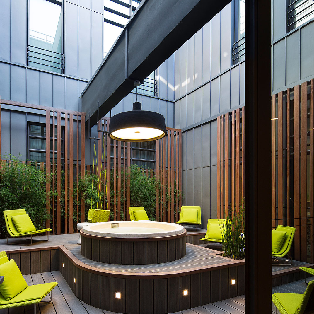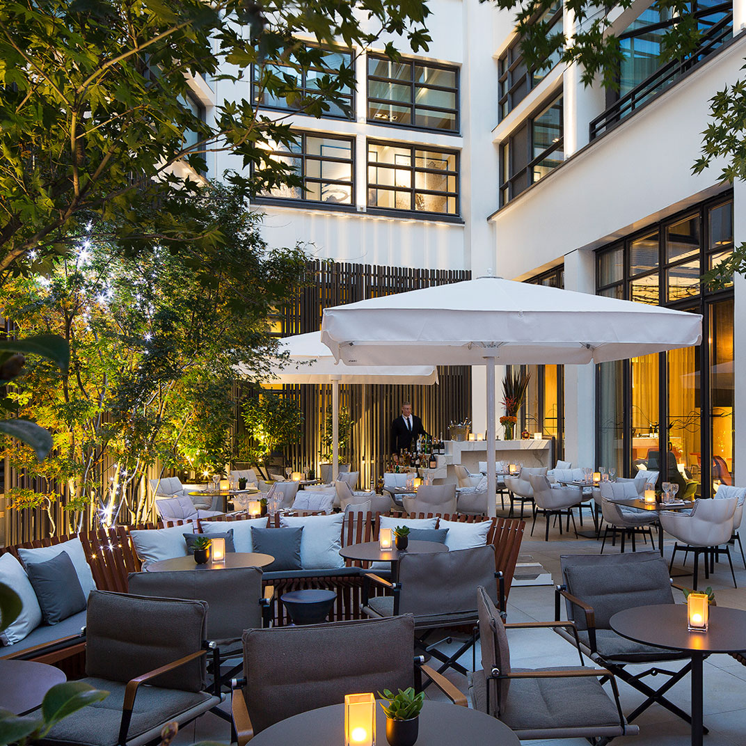 The restaurant, Chiquette, is a tribute to the Années Folles, the French equivalent of the Roaring Twenties; the cuisine is modern and creative, while the atmosphere is Art Deco, with a lounge bar that opens onto the patio. Add to that a spa and fitness center and you’ve got a hotel that, substance-wise, offers rather more than the norm — and is, when it comes to style, in the top class indeed.