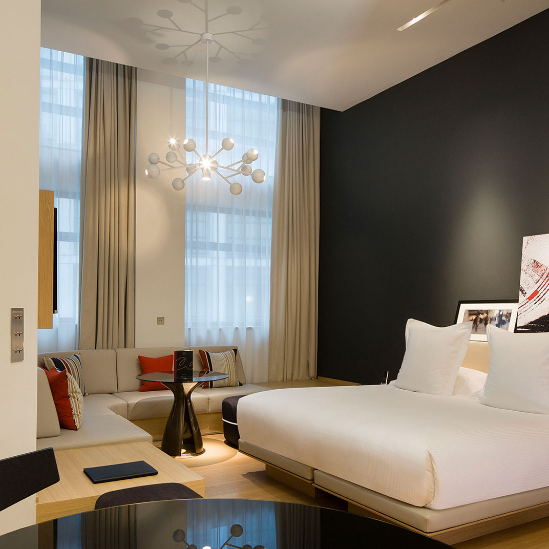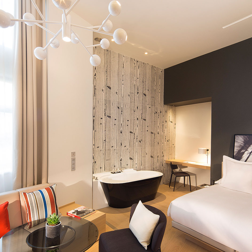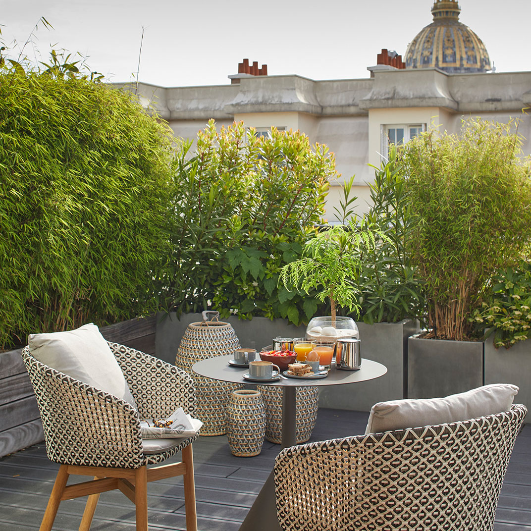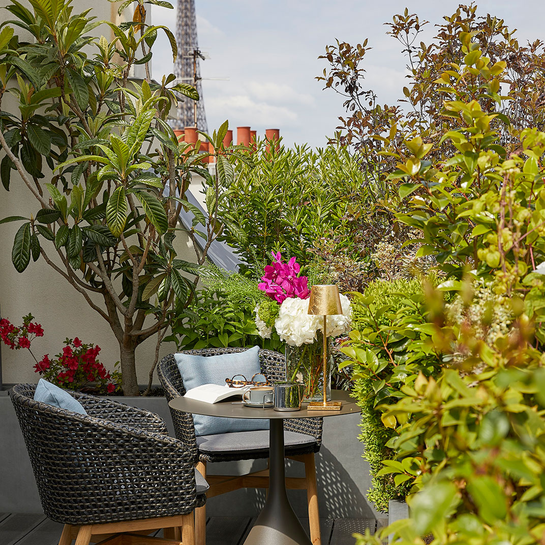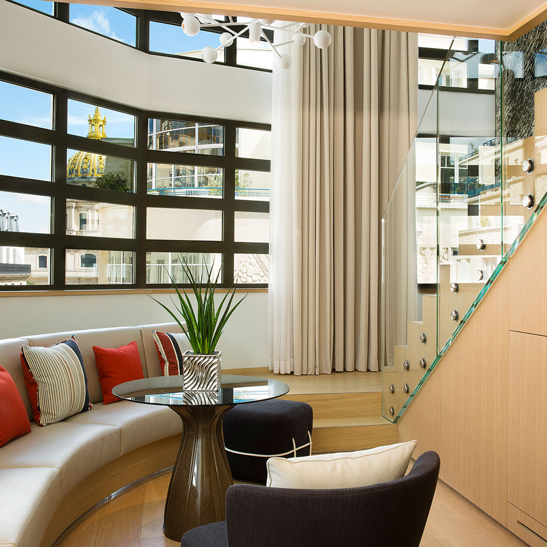 What’s not period per se is period-inspired, the stylish seriousness of interwar modernism being very much in fashion at the moment. The rooms and suites, meanwhile, are a subtle revelation: the eccentric layouts, many split-level, make for accommodations that are nothing if not memorable, and spaces that are inspiring and efficient, even if they’re somewhat more typically Parisian when viewed in terms of raw square footage. And the overriding feeling is of a hotel whose every element is expertly selected, from the artworks to the furnishings, across a range of eras from 20th-century classics to the present day.