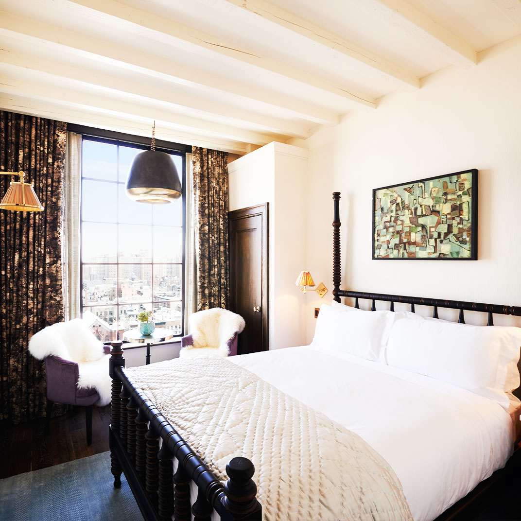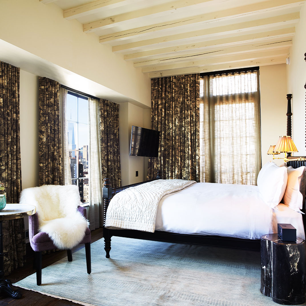 The Ludlow’s lineage is especially apparent in the ways in which it resembles the Bowery: the rooms are open and bright, with sun streaming through large casement windows, and the impeccable vintage styling feels historically rooted yet freshly finished. As a social center the Ludlow is just getting started — Dirty French, a fairly self-explanatory restaurant from the Major Food Group, another well-regarded local outfit, is joined by the lobby lounge, with its promised trellis garden, is sure to make a few nightlife lists.