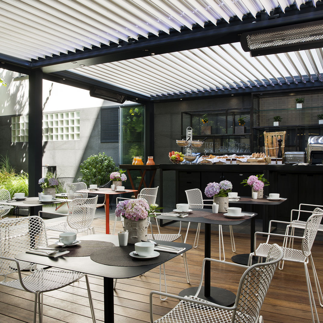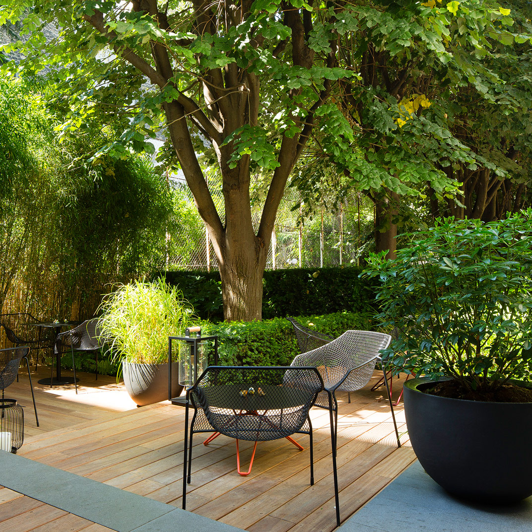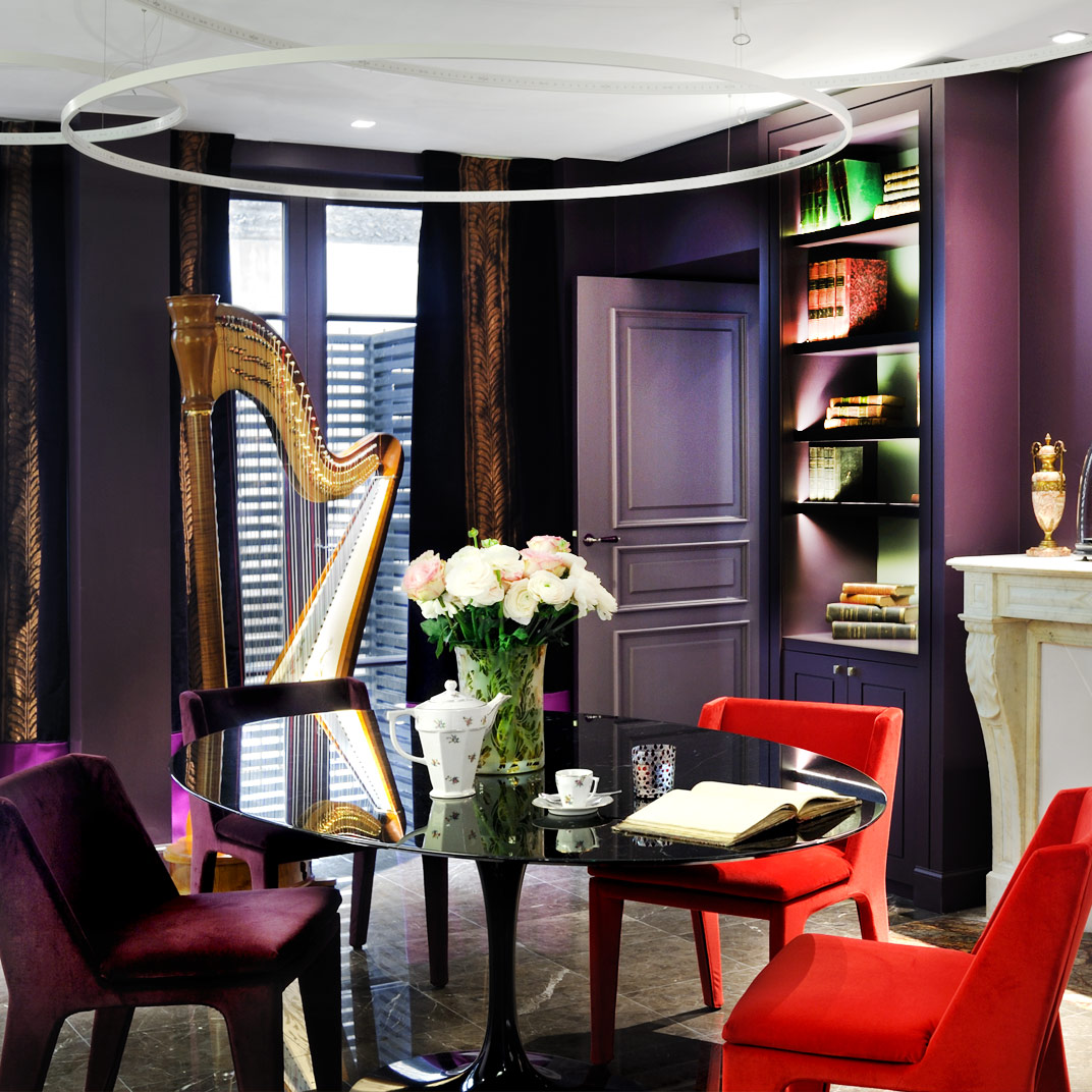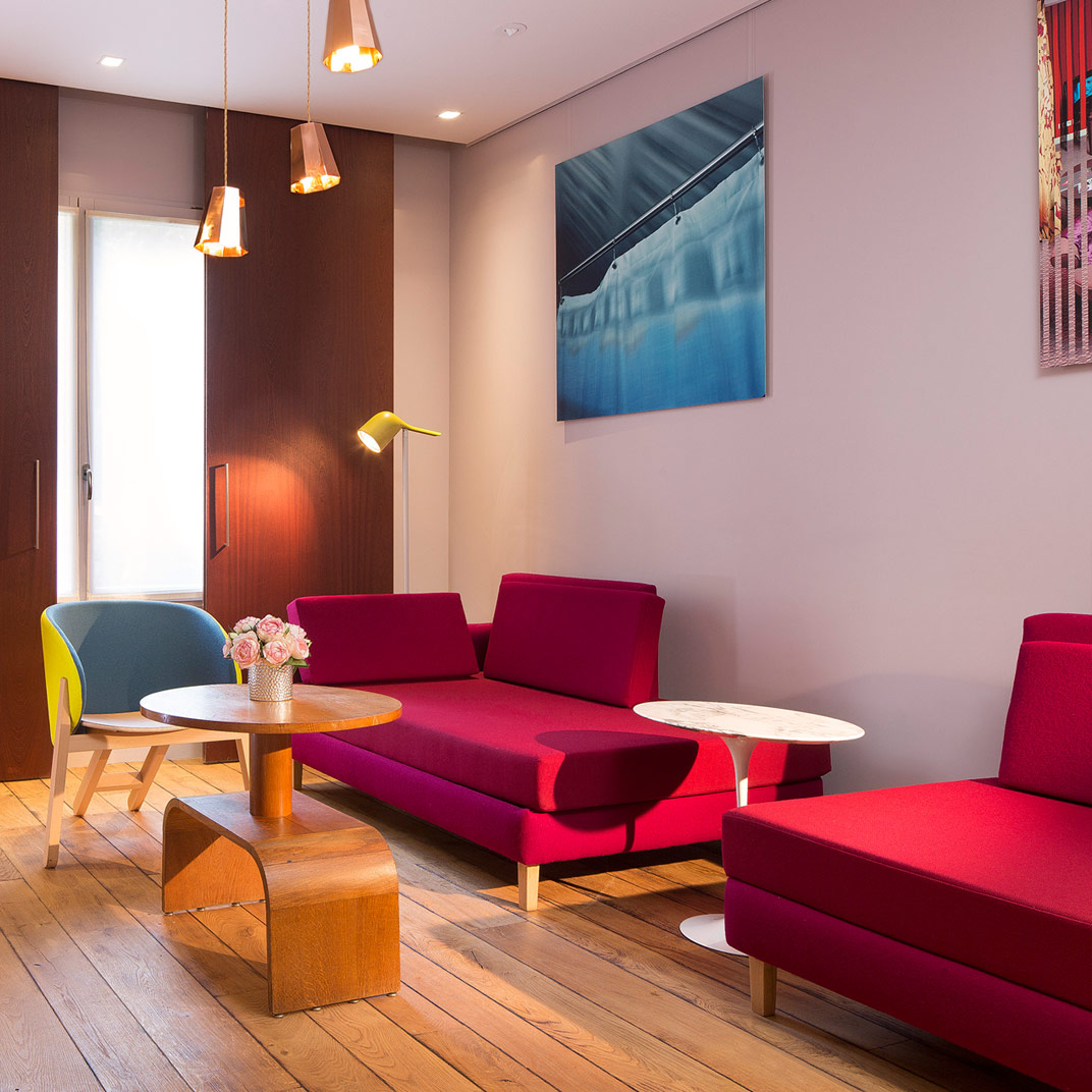 The ground floor features a multi-purpose bar and lounge space with a small-plate menu and a revamped selection of wines, champagnes, and cocktails. Do as the Parisians do and loll about with your poison of choice — or just stop by for an afternoon tea on the terrace. Better yet, take your tea in the spa, a remarkably lavish (and reservable) affair for such a small boutique hotel.