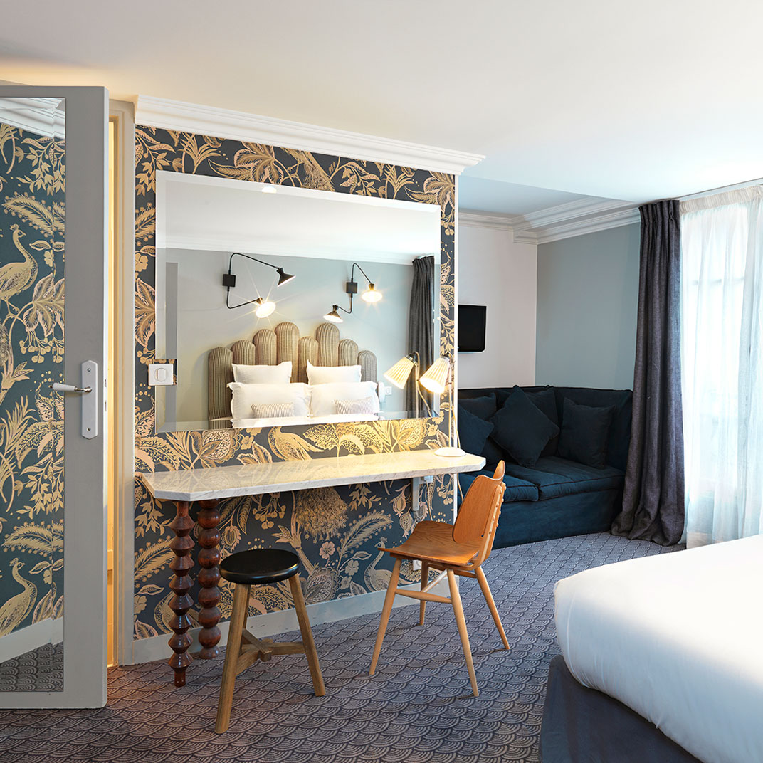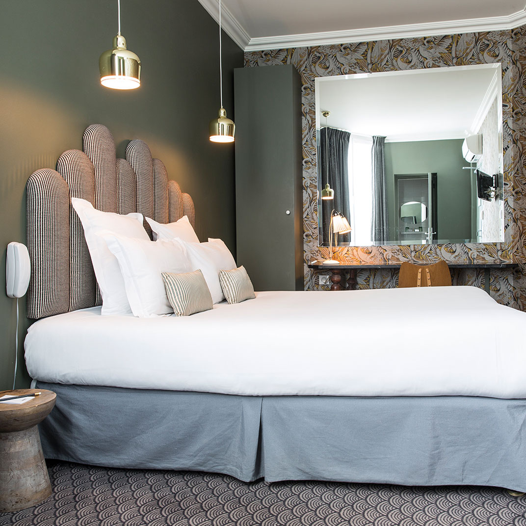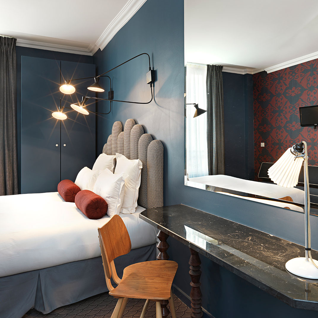 The way things have been going lately in the Parisian boutique-hotel scene, one might expect that a place called Hôtel Paradis would be literally built out of a fluffy cloud, staffed by actual cherubs and angels with harps and trumpets and the whole heavenly hullaballoo. Fortunately they’ve taken their brief a bit less literally than all that. In today’s Paris a smart, stylish, decently placed and humanely priced hotel is, in itself, a paradise of a certain kind — and Hôtel Paradis is all of those things.