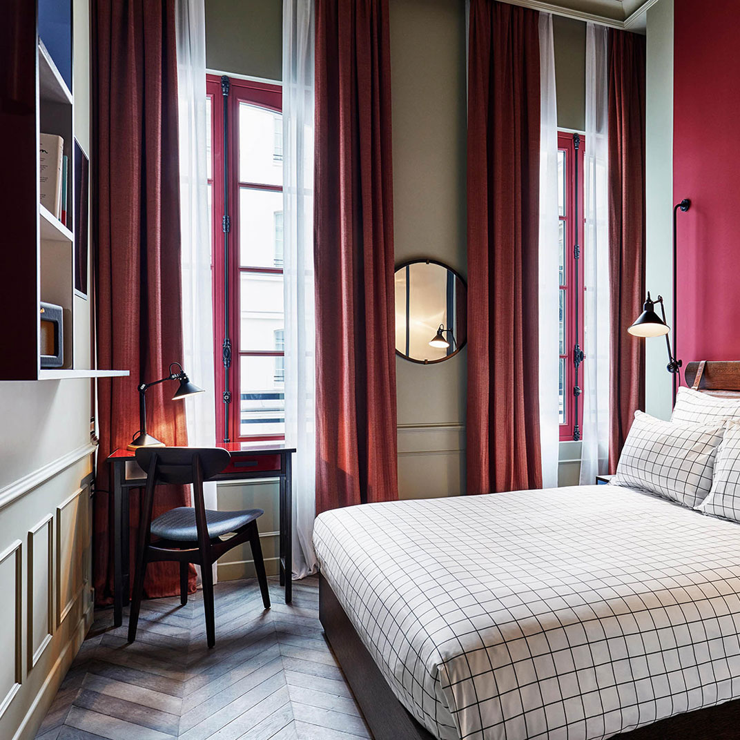 You’re meant to spend quite a bit of your time in the public spaces, after all — and here they’ve had help from Soho House in designing Rivié, a modern French spot with Asian influences, as well as the Moroccan-themed Jacques’ Bar and Planche, a wine bar specializing in natural and organic labels. It’s no grand palace hotel, but something so stylish at an attainable price is big news, perhaps even more so in Paris than anywhere else.