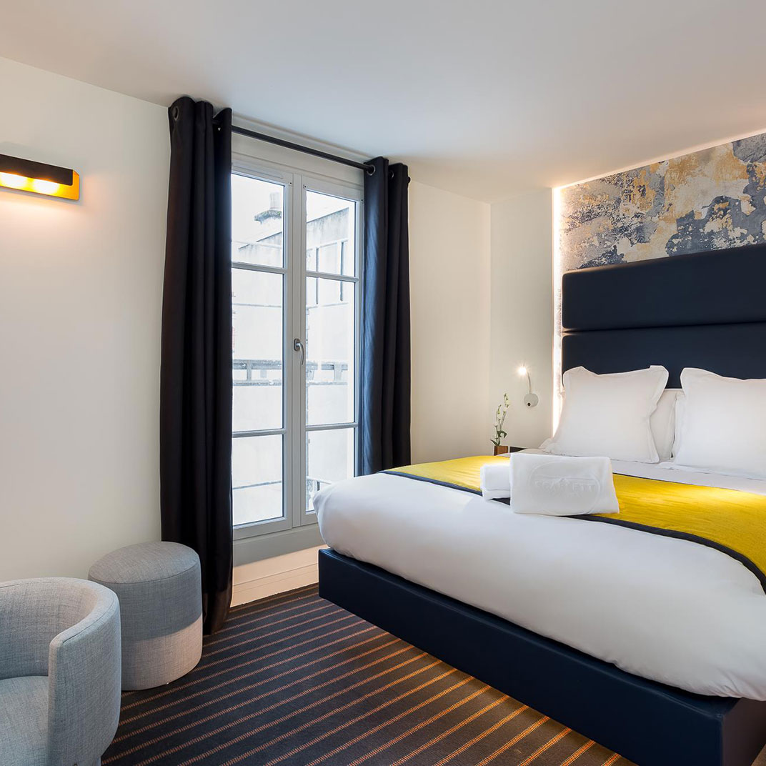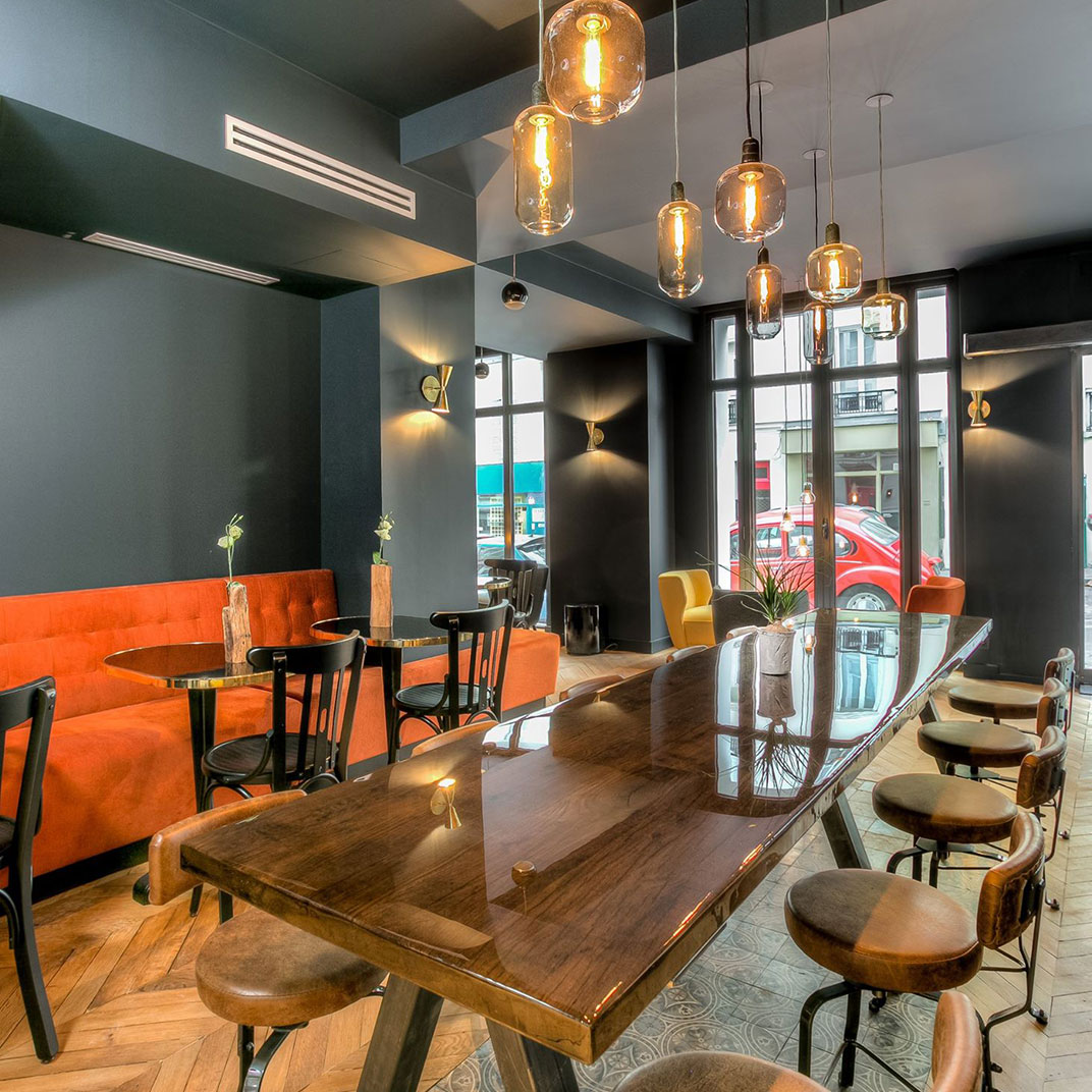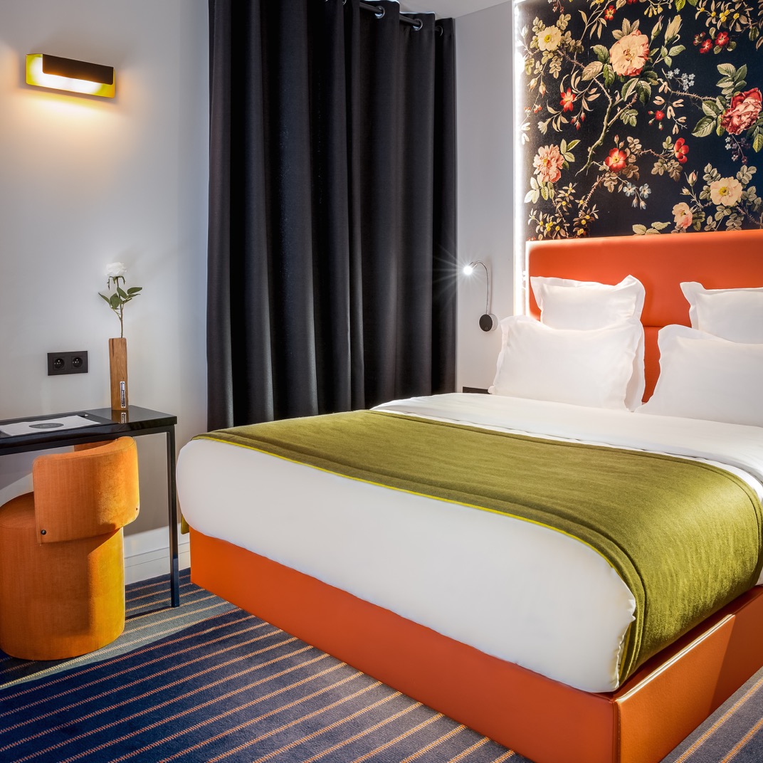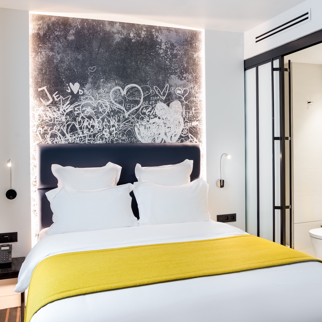 All of this to say: even though it’s a short metro ride away, Belleville has a different character than much of central Paris. It’s eclectic, bohemian, filled with colorful street art and cozy cafés, Chinese markets and Jewish bakeries, paint-splattered artist studios and onetime cabarets turned into cocktail bars. Hotel Scarlett is one of a few stylish new places that’s opened here during a recent wave of gentrification. Fortunately, though, it’s a hotel that feels like an authentic reflection of its place and time. It’s hip but low-key, pretty but practical.