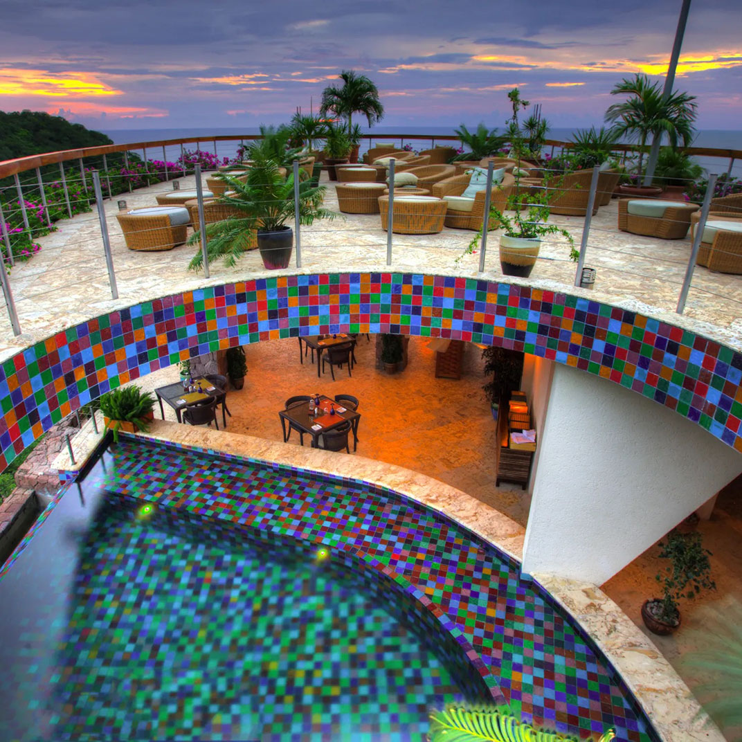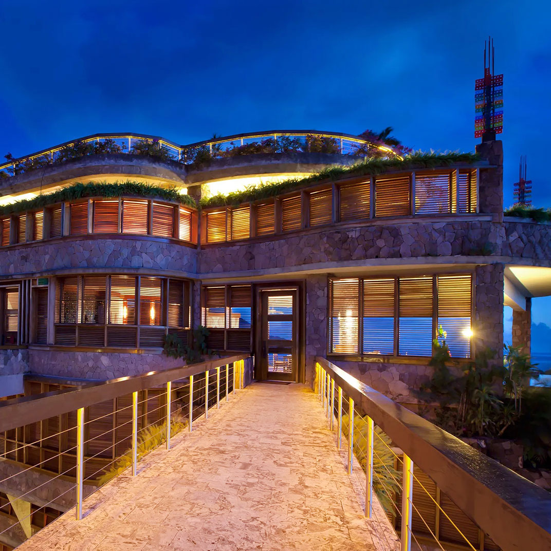 They certainly make the most of their views: the peaks are visible not from one central semi-public pool but from 24 of them, one for each of the “Sanctuary” suites. And you never have to leave them behind — the open-air bedrooms are missing a wall, so that the mountains and the waters of the Caribbean are the backdrop to just about every scene. Same goes for the “Sky” suites; while they lack infinity pools, they do have Jacuzzis, and panoramic open-air views.
