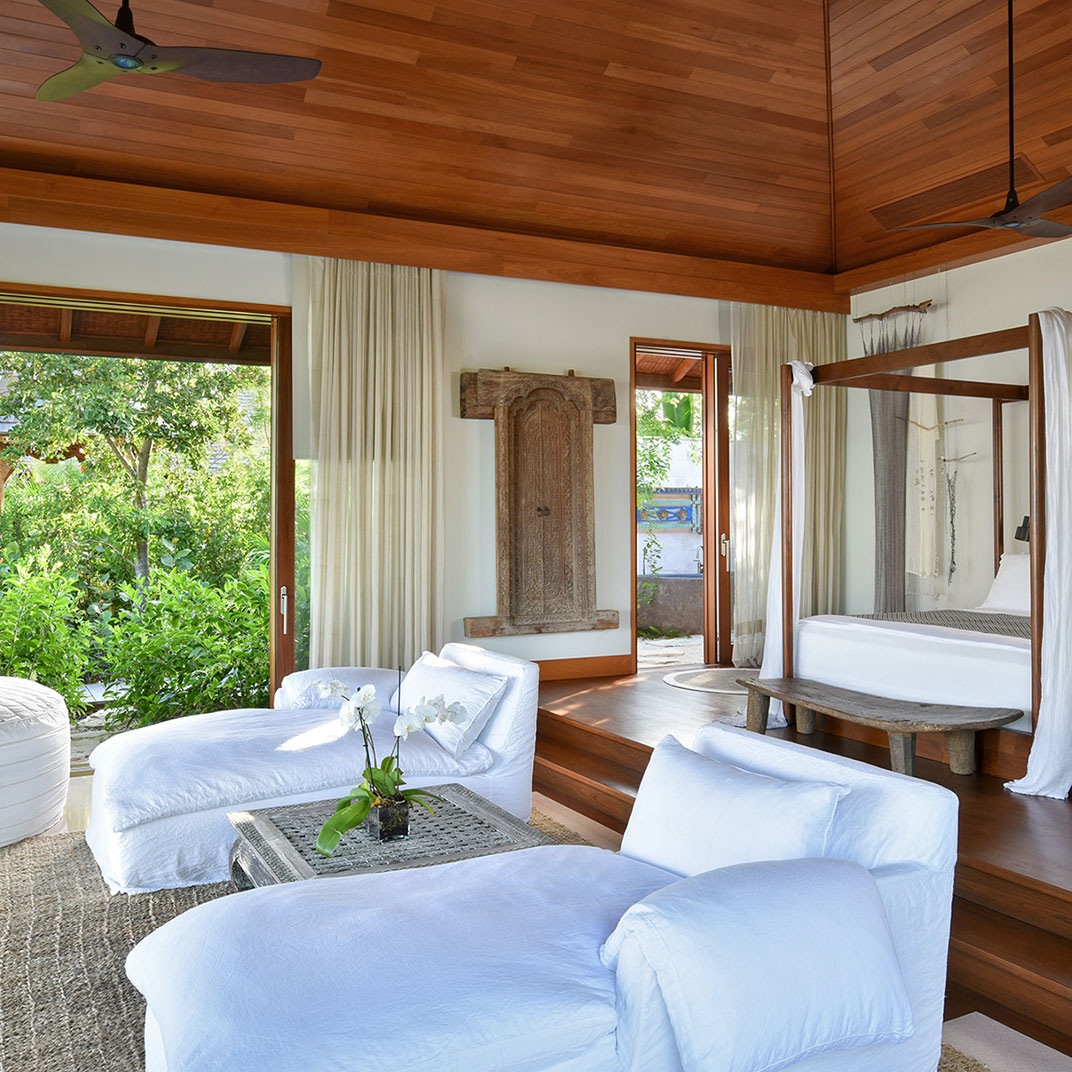 It’s self-sufficient, right down to its own desalination plant, and while the original old resort building and its traditional rooms offer a social space for chance meetings among guests, the newer, almost Spartan modernist-style villas are splendidly secluded, perfect for honeymooners, paparazzi-dodgers, or just getting away.