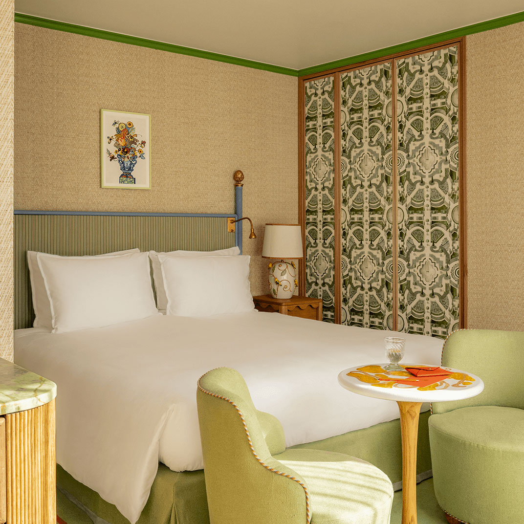 It takes an all-star team to make an impression in the Parisian luxury boutique hotel scene, and there’s no better way to describe the minds behind La Fantaisie. Designer Martin Brudnizki is well known from London to New York and beyond for his hospitality work but this is his first hotel in Paris. The location, in Faubourg Montmartre, could hardly be more auspicious, and the interior really is a fantasy, inspired by the neighborhood’s classic gardens.