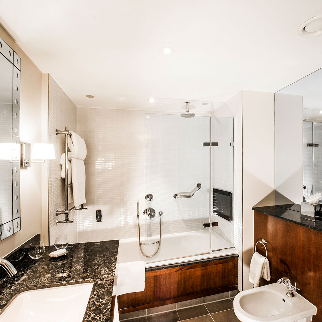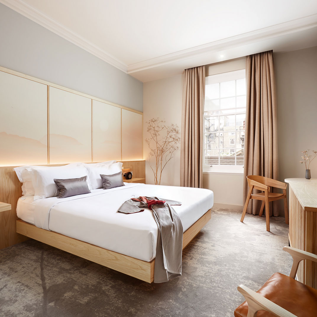 With fewer than a hundred rooms and suites it’s neither a large nor a particularly small hotel, but each unit feels a bit like a little ryokan room, full of wood grain and warm textures. They start out compact, central London being what it is, but the suites are genuinely expansive, and at all levels you’ll have creature comforts like a pillow menu and a walk-in rain shower.