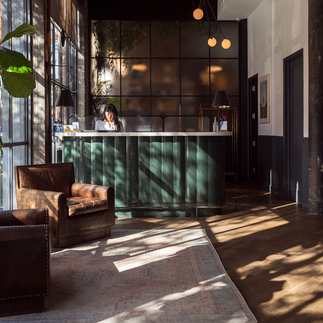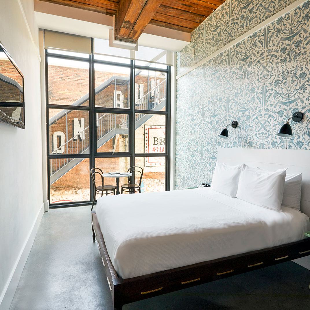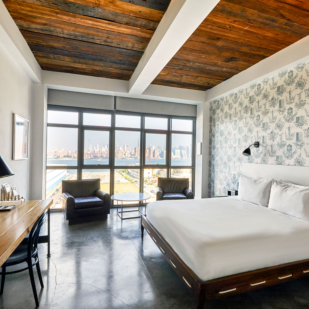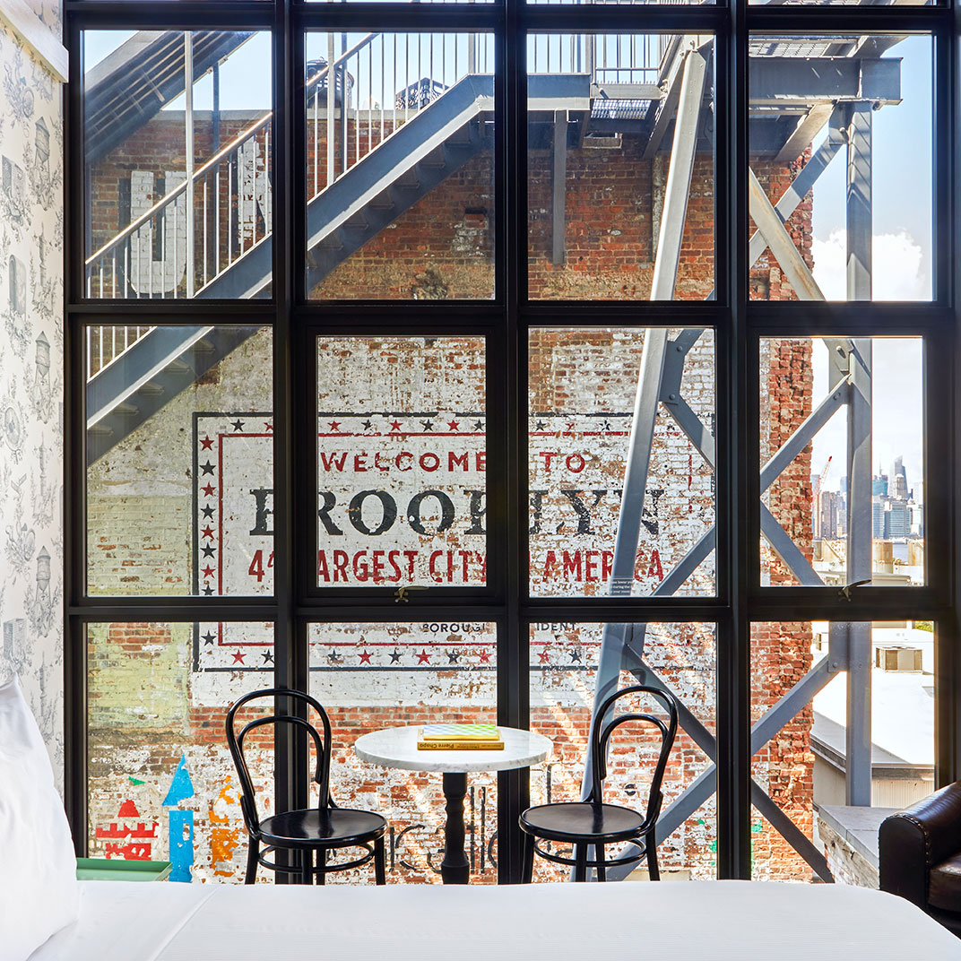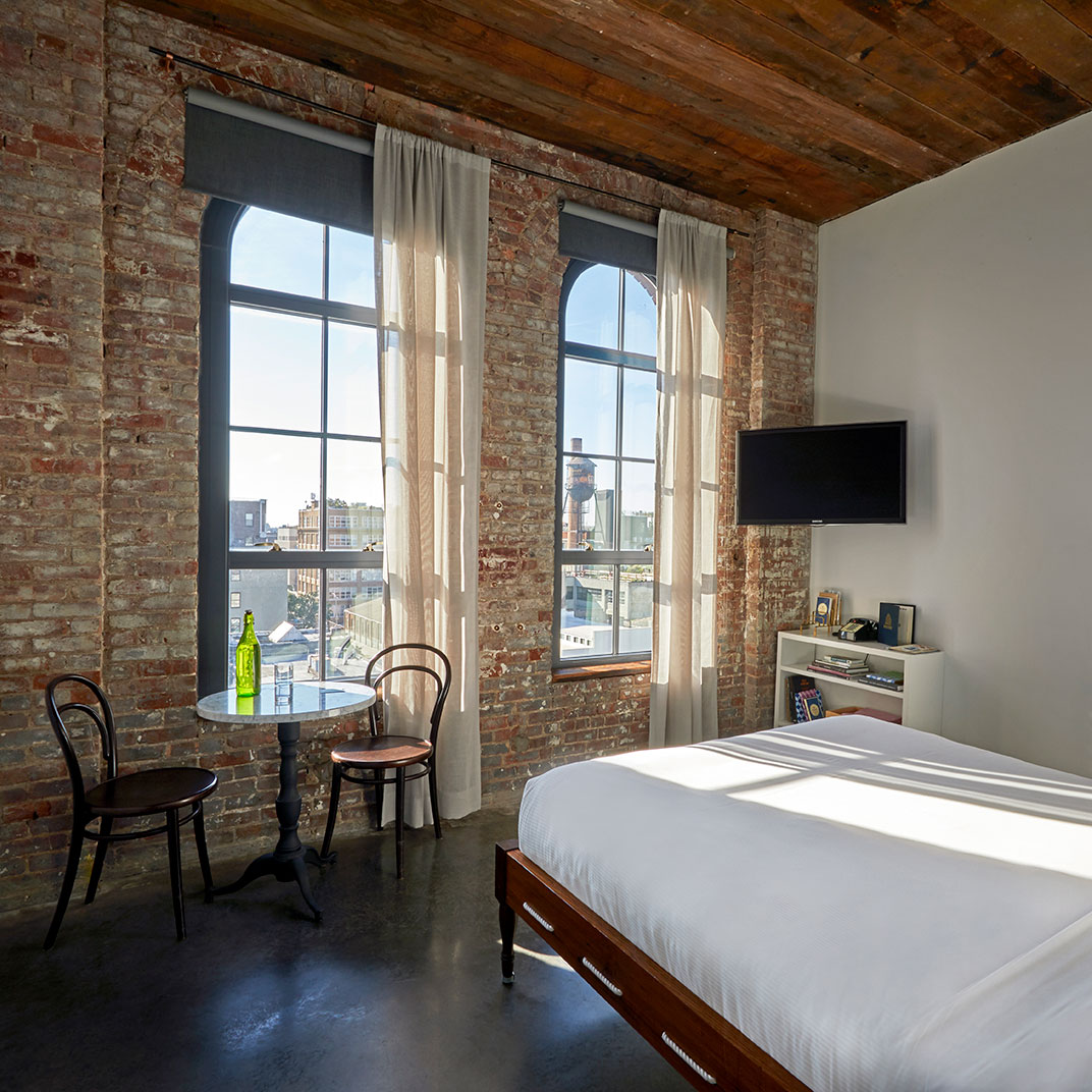 Wythe Hotel is a quick 7-block walk from the Bedford Avenue subway stop, which is less than 10 minutes on the L train from Union Square in Manhattan.