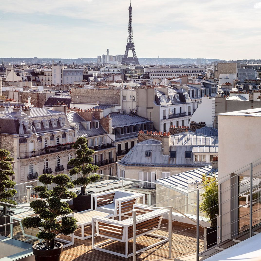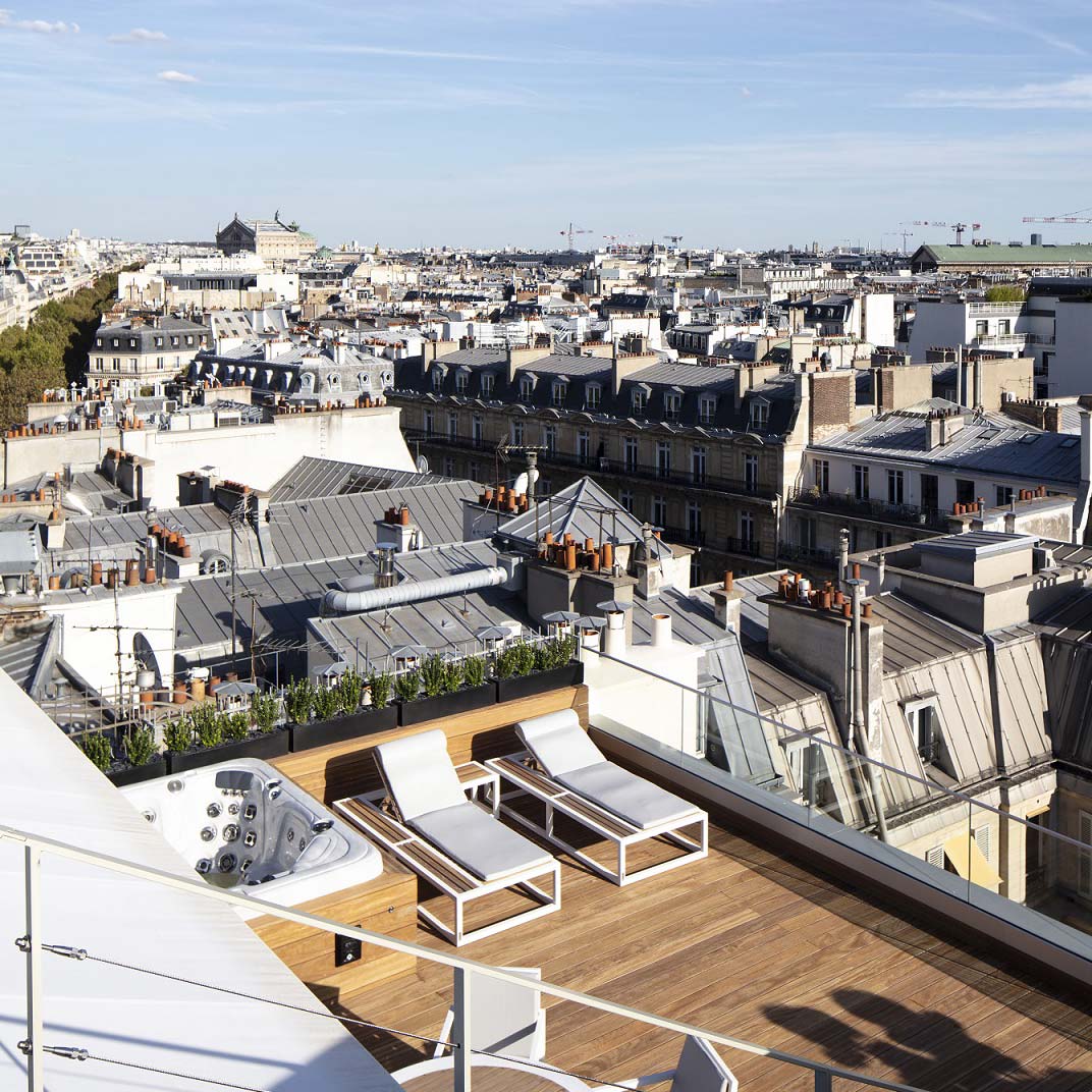 In classic Parisian style the entry-level rooms are relatively compact, though spacious enough and more than a little bit plush. The Executives and Deluxes quickly add enough space to make a noticeable difference, and look out over either the hotel’s garden or the Boulevard Haussmann. And the suites are positively capacious, all with separate bathtubs and showers, some with Eiffel Tower views, and the top-end suite spanning 100 square meters Hotelist Club an additional 100 square meters of terrace, complete with a jacuzzi and a panoramic view. To this you can add the 99 Hausmann restaurant and bar, with garden and terrace seating, and a spa by Lacure Officine.