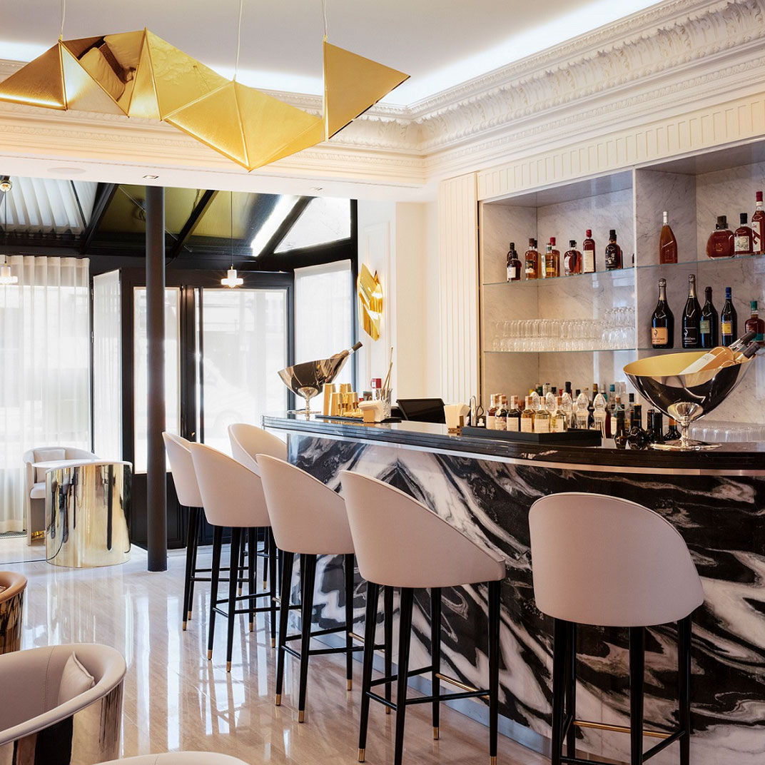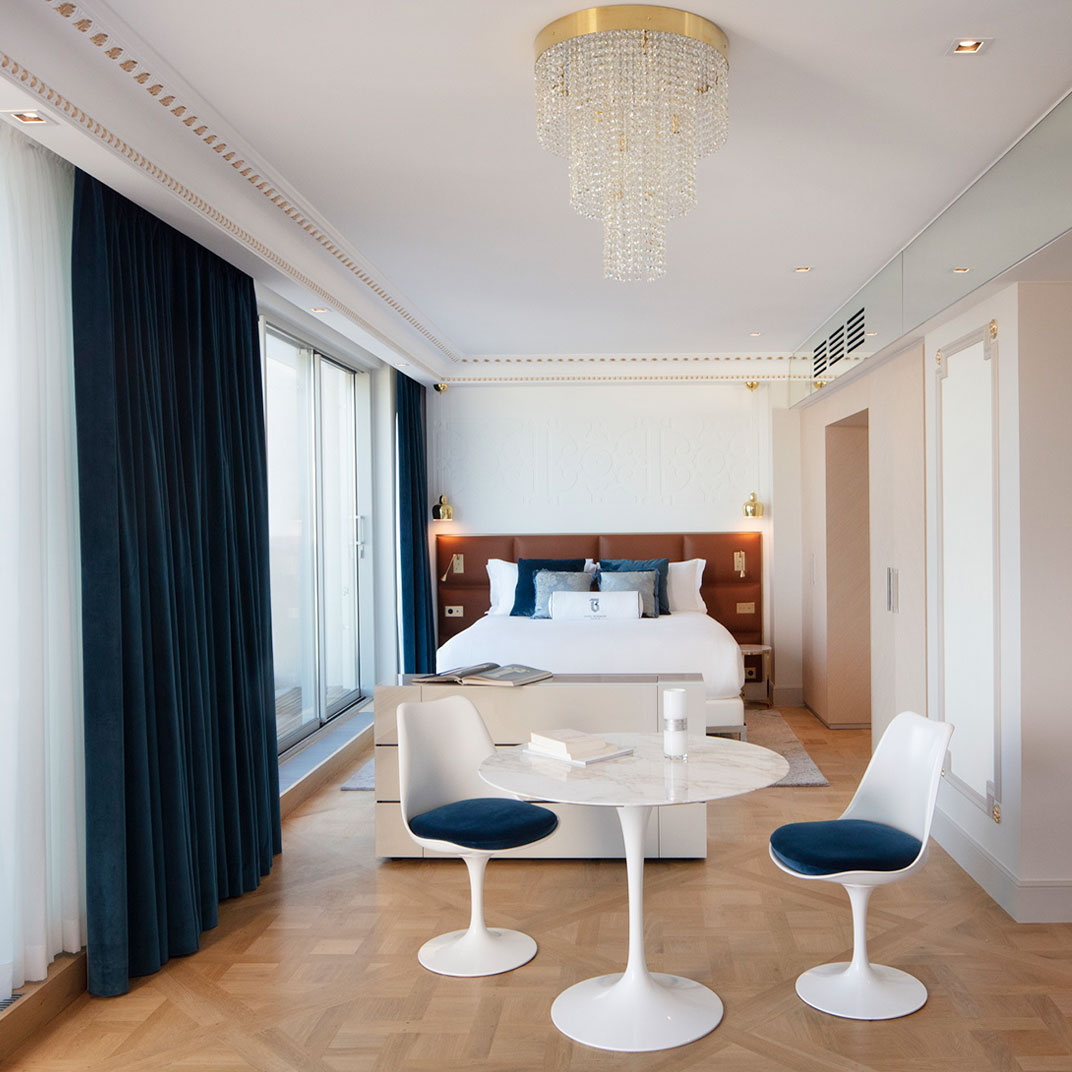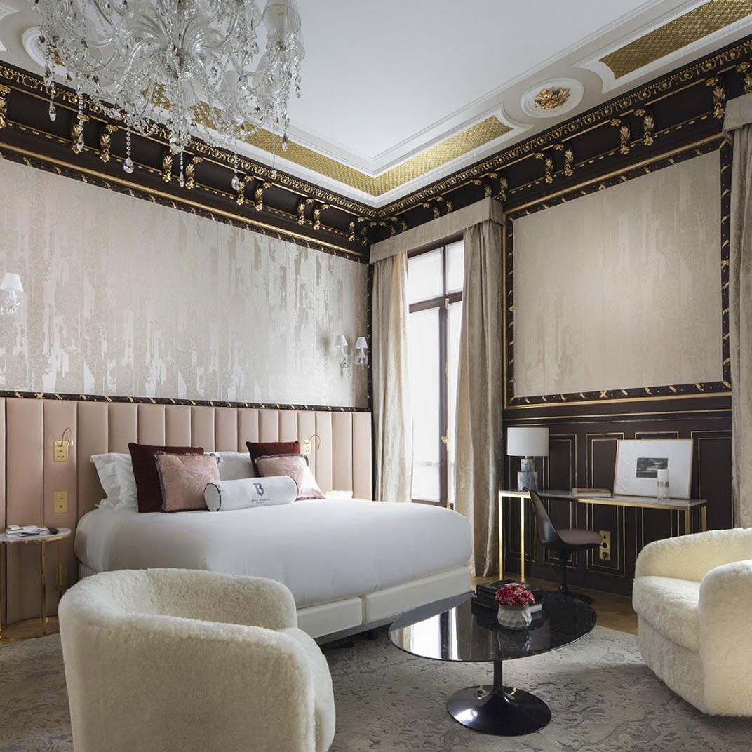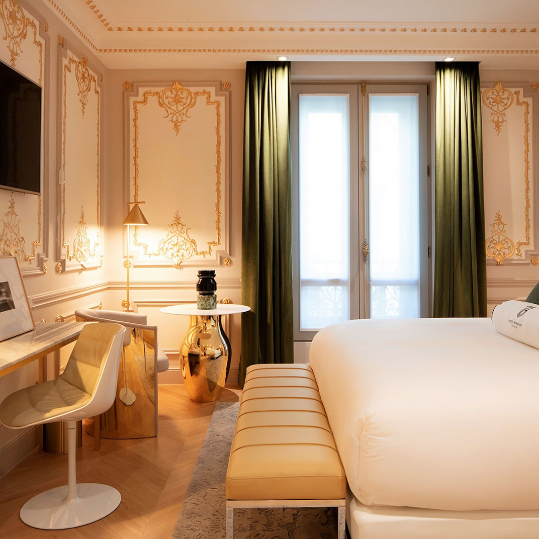 Though it’s a newcomer to the Parisian luxury-hotel scene, the Hotel Bowmann has no trouble fitting in: it’s a lively blend of classic Haussmannian architecture, modern furniture design, and contemporary decoration. The location — on Boulevard Haussmann, fittingly — is close to the Parc Monceau, and surrounded by a wealth of art galleries in the north end of the 8th. And the atmosphere, for lack of a better label, is “discreet luxury” — smaller and more intimate than Paris’s officially designated palace hotels, it’s nevertheless a thoroughly high-end experience, with no compromises made in either comfort or service.