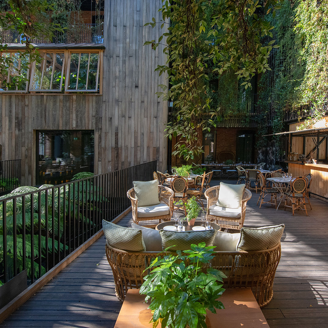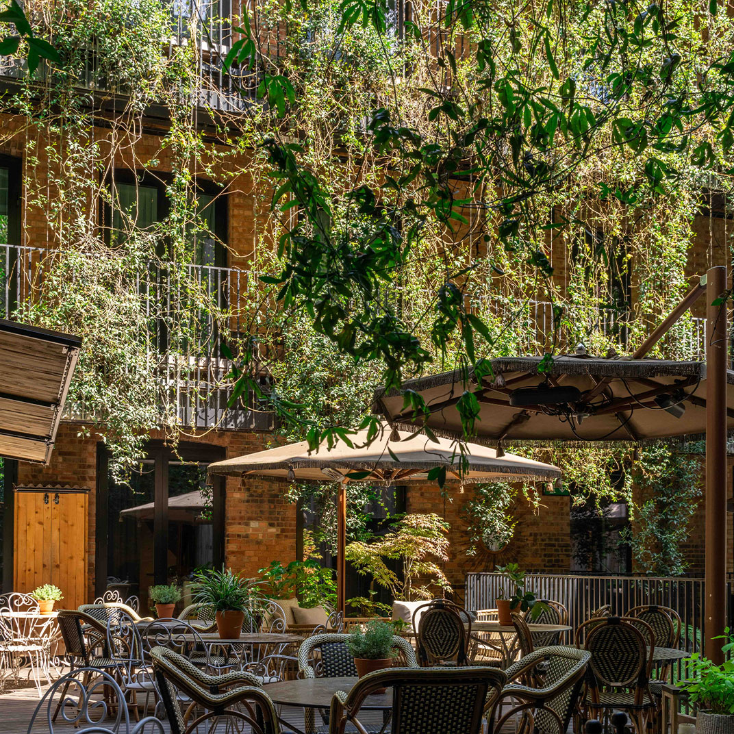 Some of London’s luxury boutique hotels are so tasteful they’re almost invisible, catering to guests who want a blank canvas on which to project their own personalities. And then there’s the Mandrake. Set in a relatively sleepy section of Fitzrovia, it’s nevertheless nothing short of a fantasy world, a moody, atmospheric 33-room boutique hotel surrounding a central courtyard full of hanging jasmine and passionflower.