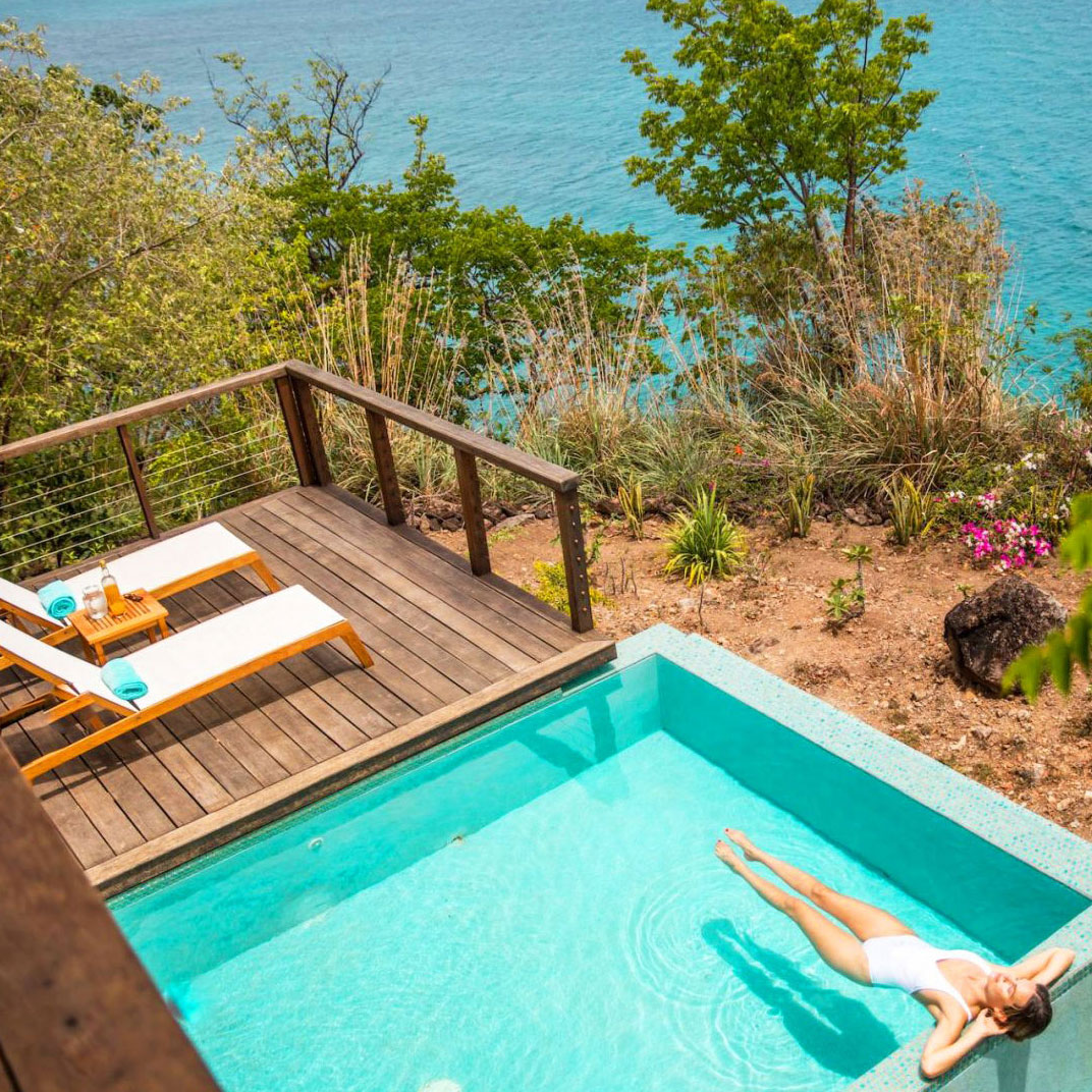 From north to south, between Antigua and St. Lucia, are Montserrat, Guadeloupe, Dominica, and Martinique. They’re just as beautiful as any of the other islands in the Caribbean, but they’re mostly untouched by tourism. The reasons for that are complex, and bound to change — in the case of Dominica, where the boutique hotel Secret Bay is located, it’s partly because the landscape is volcanic and mostly devoid of white sandy beaches, and partly because the island isn’t served by international flights.