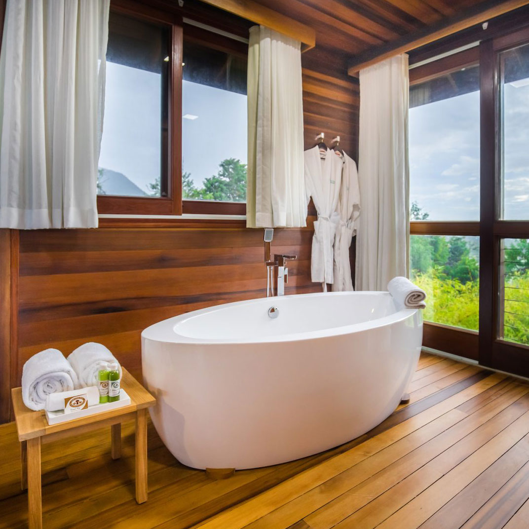 The hotel has just 22 villas, one more lavish than the next. The original Zabuco Honeymoon villa is situated on a rocky outcrop over the sea. And frankly, you’ll never need to leave it: there’s an indoor-outdoor living room with daybeds and hammocks, a private terrace with a plunge pool and outdoor shower, a state-of-the-art open-plan kitchen with granite countertops and an espresso machine. You can grill your own fresh fish at the villa’s barbecue and an outdoor dining area, should you wish (on request, the hotel provides an Organic Breakfast Basket filled with fresh supplies and snacks), and rest easy on a bed carved by local craftsmen from indigenous red cedar.