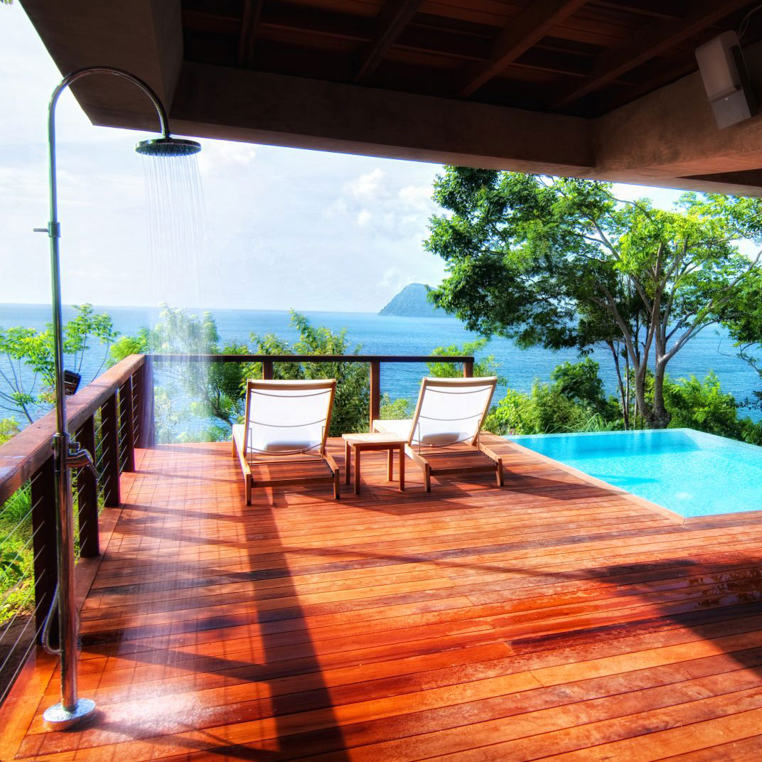 The Ti-Fèy villas and the Ylang Ylang villas feel like treehouses. Apple TVs and wi-fi, check, sound systems by Bose, check. A pillow menu and a mattress menu? You got it.