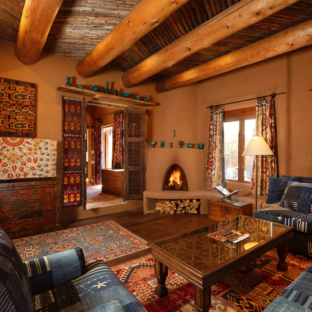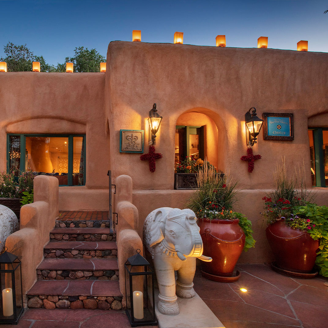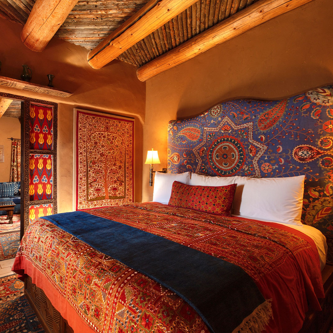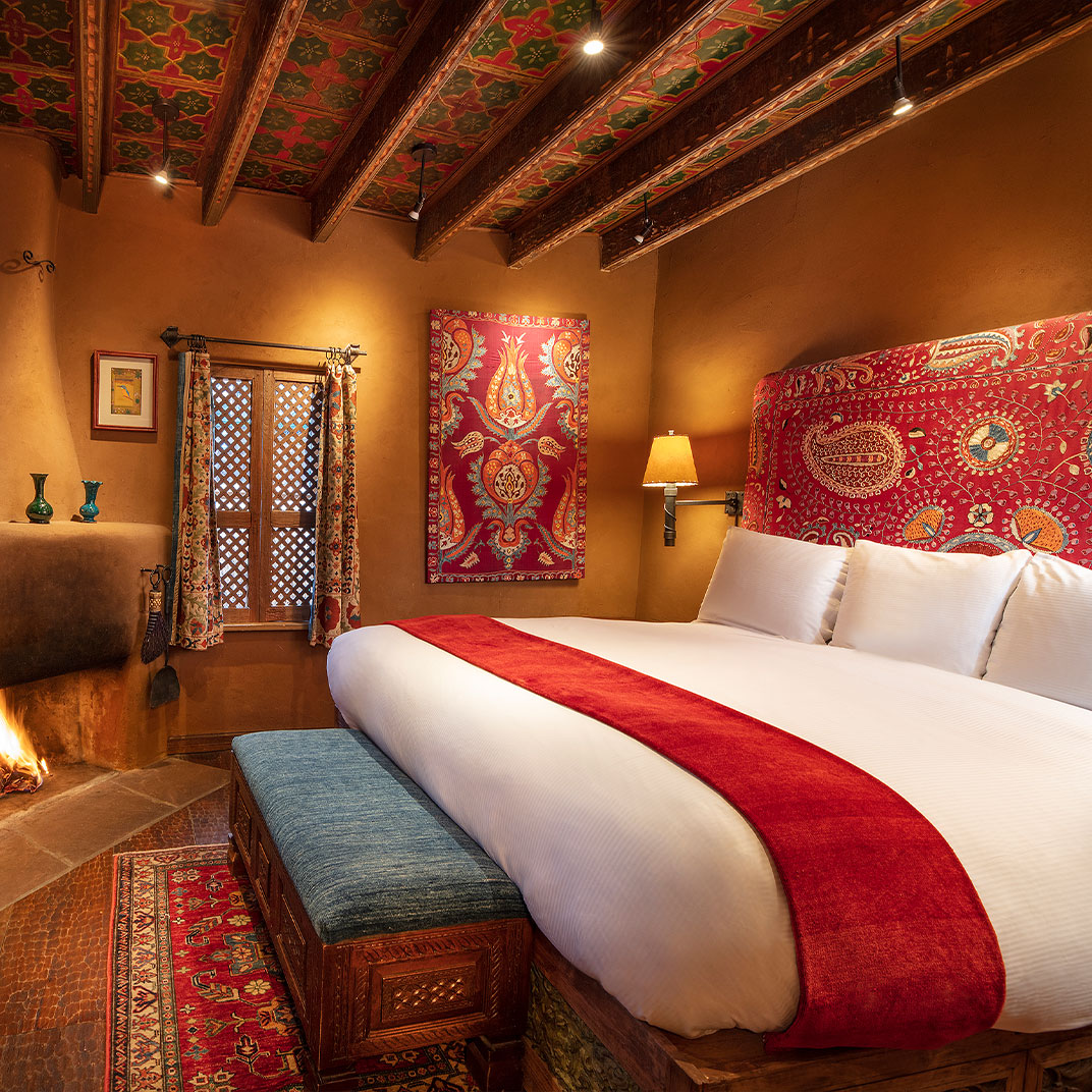 It’s hard to say what’s more notable about the Inn of the Five Graces — the one-of-a-kind setting in a series of restored adobe houses in Santa Fe’s Barrio de Analco, considered the oldest neighborhood in the United States, or the museum-worthy art collection the designer owners acquired over a lifetime of world travels. Rooms feature rustic exposed beams, artisan-crafted textiles, wood-burning fireplaces, and bathrooms lined in colorful mosaic, while suites, arranged around a cluster of quiet courtyards, are lavishly appointed with hand-carved wooden furnishings and soaking tubs framed by inlaid onyx, lapis, and jade. The spa takes inspiration from ancient Silk Road rituals, and a hidden passageway off the main patio leads to the Pink Adobe and the Dragon Room, a revitalized local dining institution and bar where Georgia O’Keeffe was once a regular.