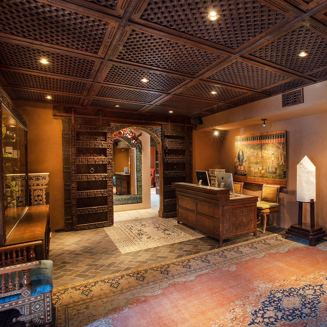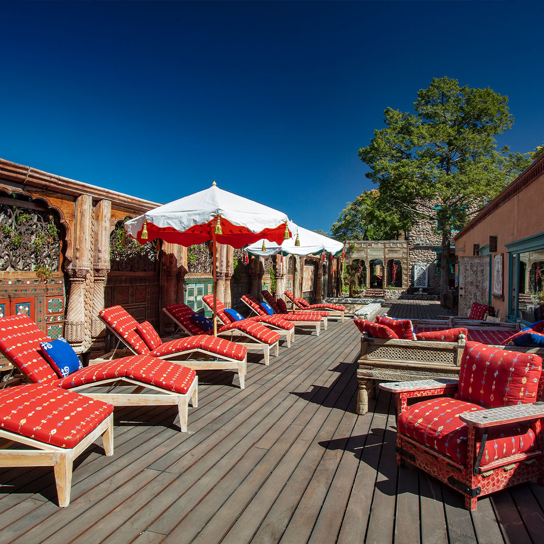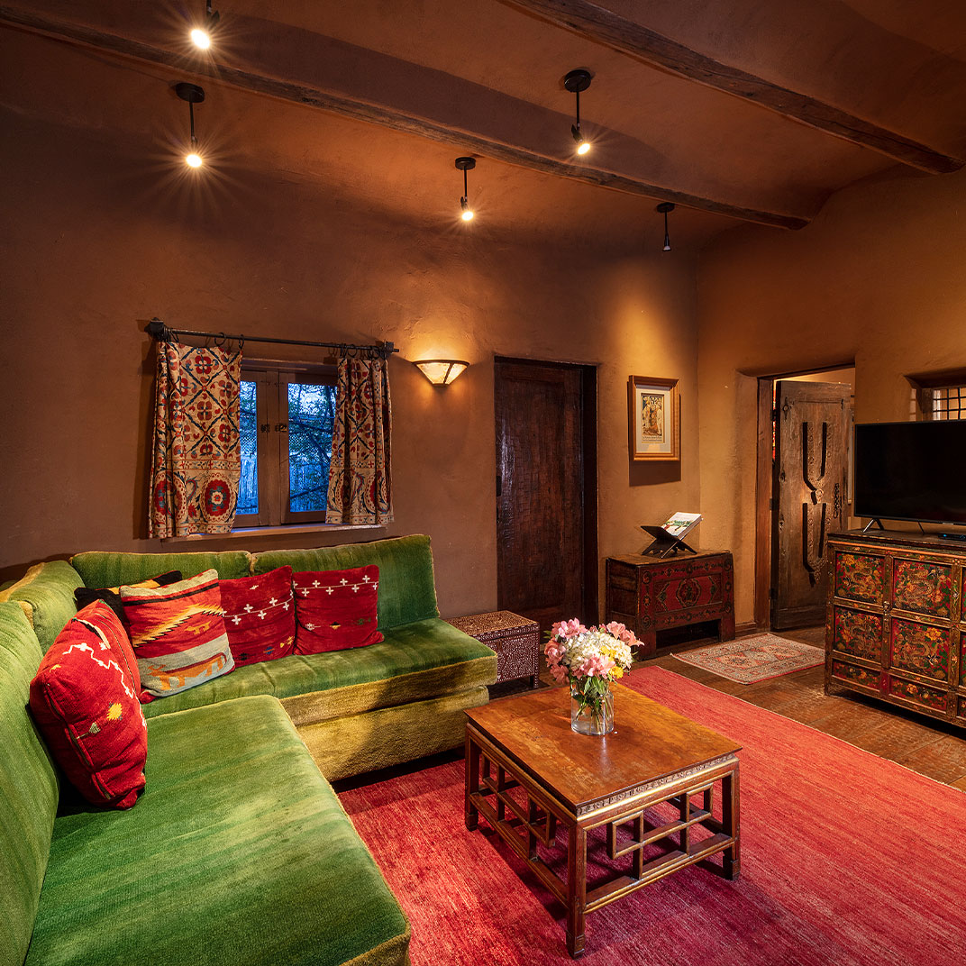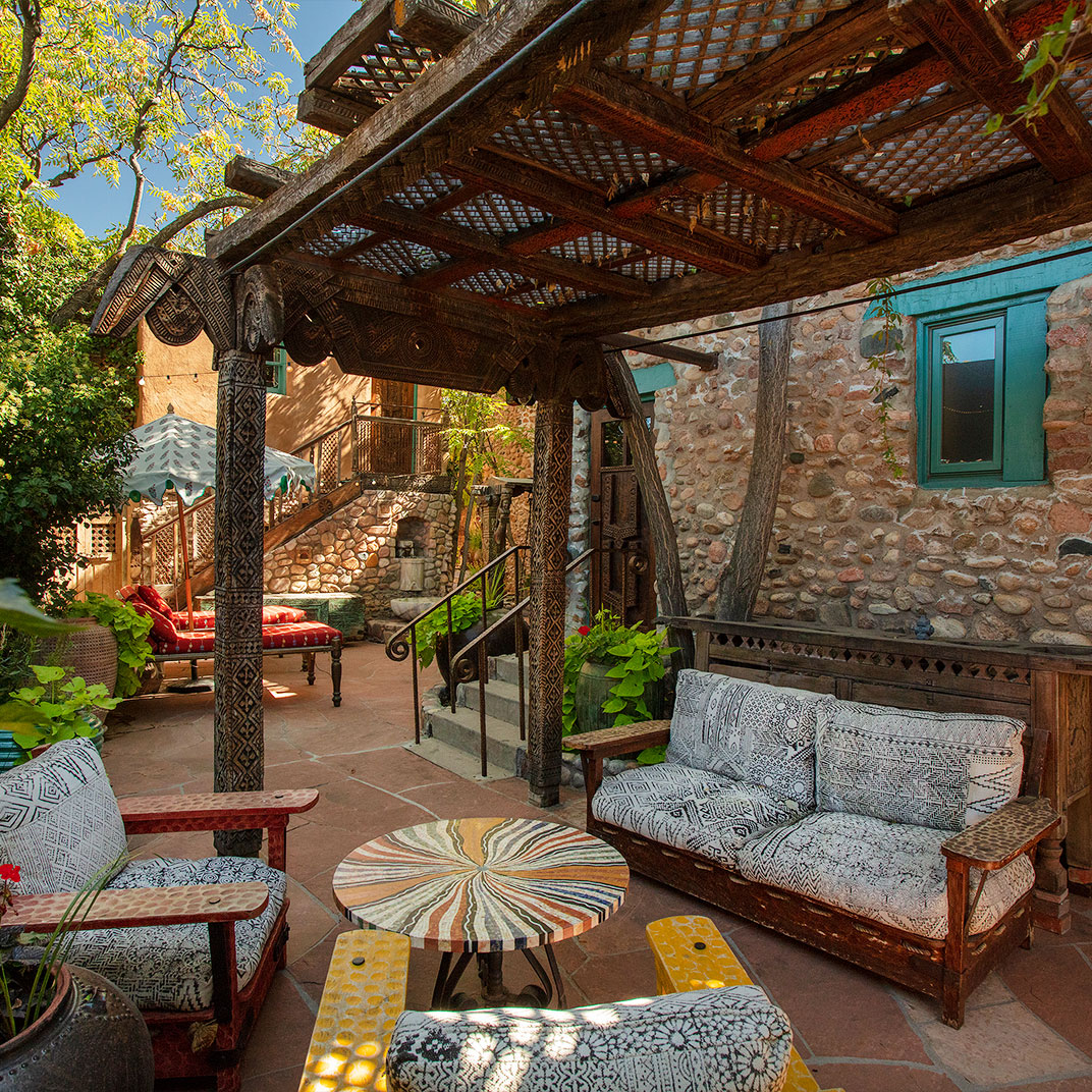 It’s hard to say what’s more notable about the Inn of the Five Graces — the one-of-a-kind setting in a series of restored adobe houses in Santa Fe’s Barrio de Analco, considered the oldest neighborhood in the United States, or the museum-worthy art collection the designer owners acquired over a lifetime of world travels. Rooms feature rustic exposed beams, artisan-crafted textiles, wood-burning fireplaces, and bathrooms lined in colorful mosaic, while suites, arranged around a cluster of quiet courtyards, are lavishly appointed with hand-carved wooden furnishings and soaking tubs framed by inlaid onyx, lapis, and jade. The spa takes inspiration from ancient Silk Road rituals, and a hidden passageway off the main patio leads to the Pink Adobe and the Dragon Room, a revitalized local dining institution and bar where Georgia O’Keeffe was once a regular.