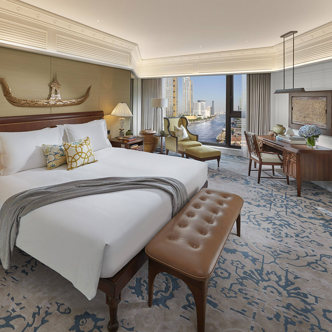 As such it’s still frequented by the leading lights of Thai society as well as visiting Western luminaries; more to the point, it’s an ornately detailed and thoroughly well-equipped modern luxury hotel. The newer wings put their elevation to use offering impressive views over the river; lavish comforts like butler service are universal throughout. Of particular note are the extraordinary array of restaurants, including the one-MICHELIN-Star Le Normandie, as well as the famous Sala Rim Naam, a traditional Thai restaurant featuring an immersive culinary experience; it’s set across the river, along with the hotel’s spa, and is reached via a brief but memorable shuttle boat ride.