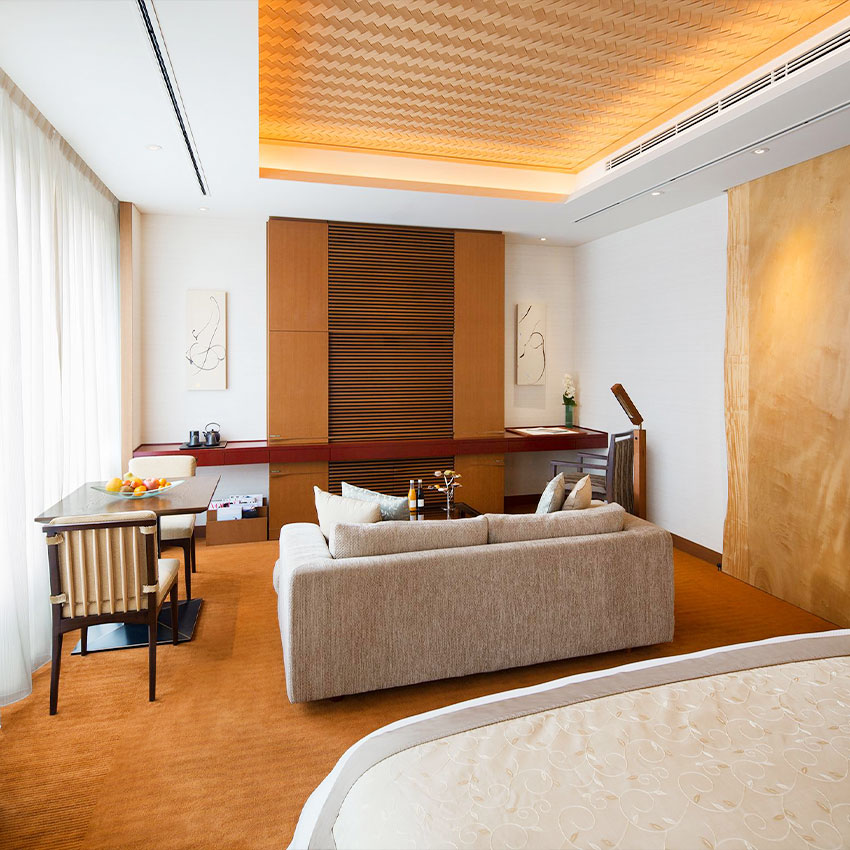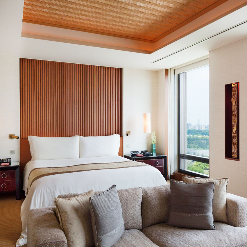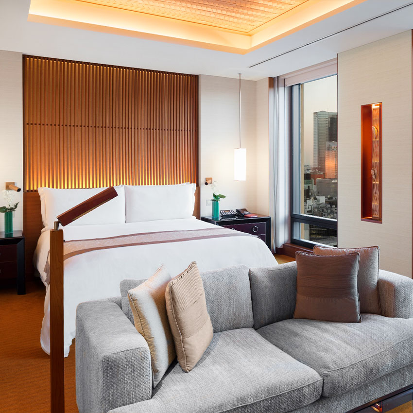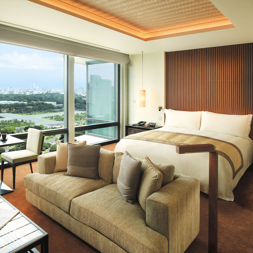 While most big Tokyo hotels occupy the upper floors of mixed-use skyscrapers, the Peninsula is purpose-built, with its lobby on the ground floor, just like a proper hotel. The location, in Marunouchi, is unique, adjoining the Imperial Gardens, which makes for impressive views during the daytime and the rare (for Tokyo) sight of complete darkness at night. You’re close by to the Ginza shopping district, but slightly removed from it all, and public transportation is no problem — though as long as you’re living it up, there’s a fleet of BMWs and Rolls-Royces at guests’ disposal.