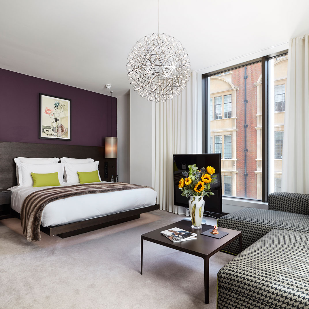 It’s a very short walk to the Barbican, but guests need not travel even that far to check out a bold collection of contemporary art. Custom works by young London artists hang above every bed, the hotel commissions installation pieces for its public spaces, and an annual art prize for works by London art school graduates ensures that the collection will stay fresh.