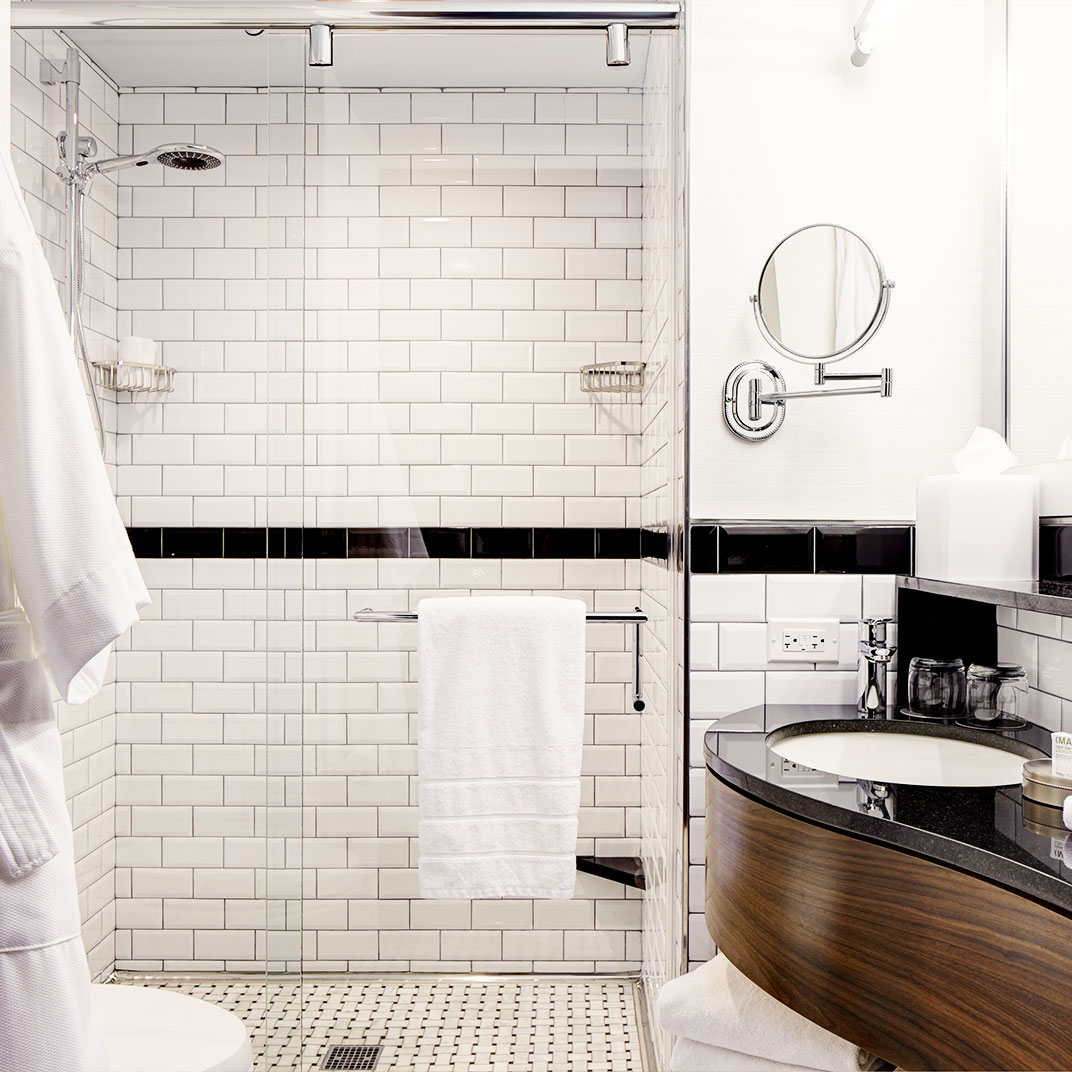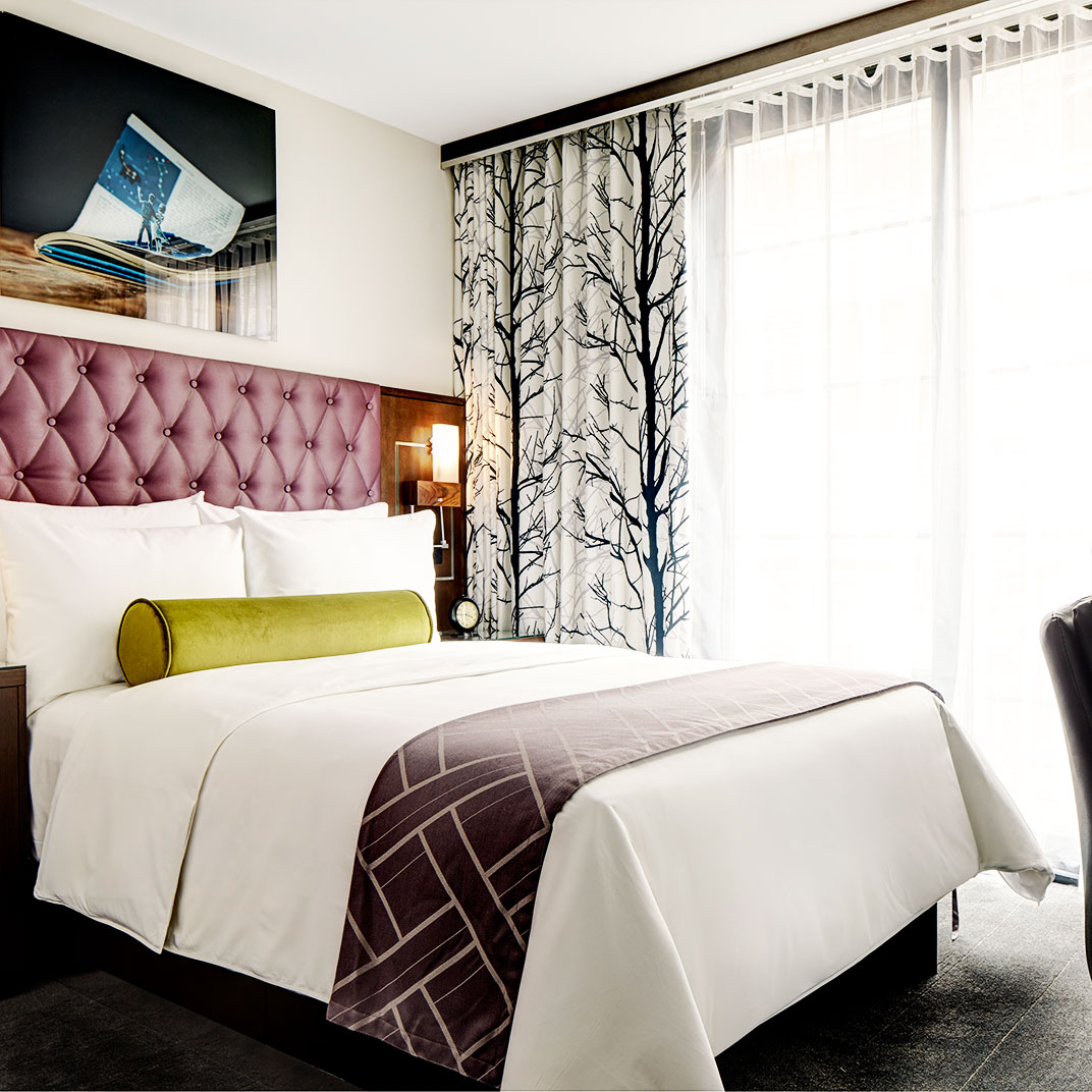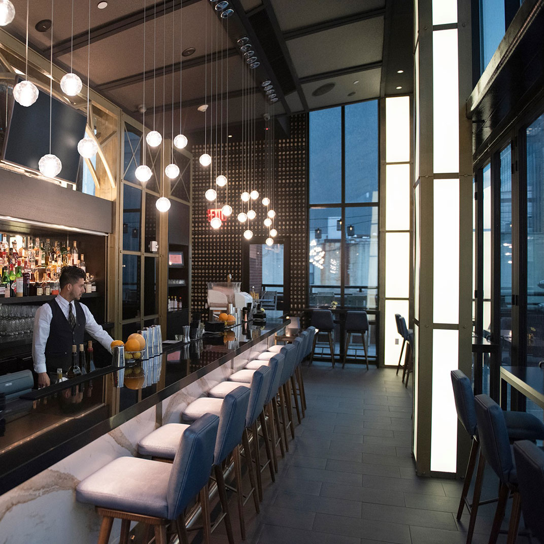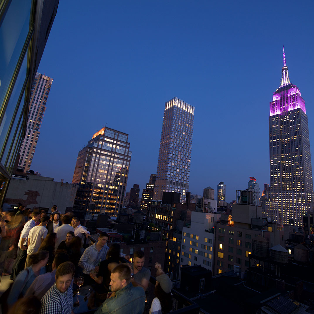 Meanwhile the hotel’s restaurant, Charlie Palmer Steak, highlights artisanal American beef in a stylish, open dining room, and the Foyer Bar's garage door opens onto an outdoor patio. The best of the public spaces, however, has to be Spyglass, the rooftop bar with a panoramic view of the Empire State and the Chrysler building.