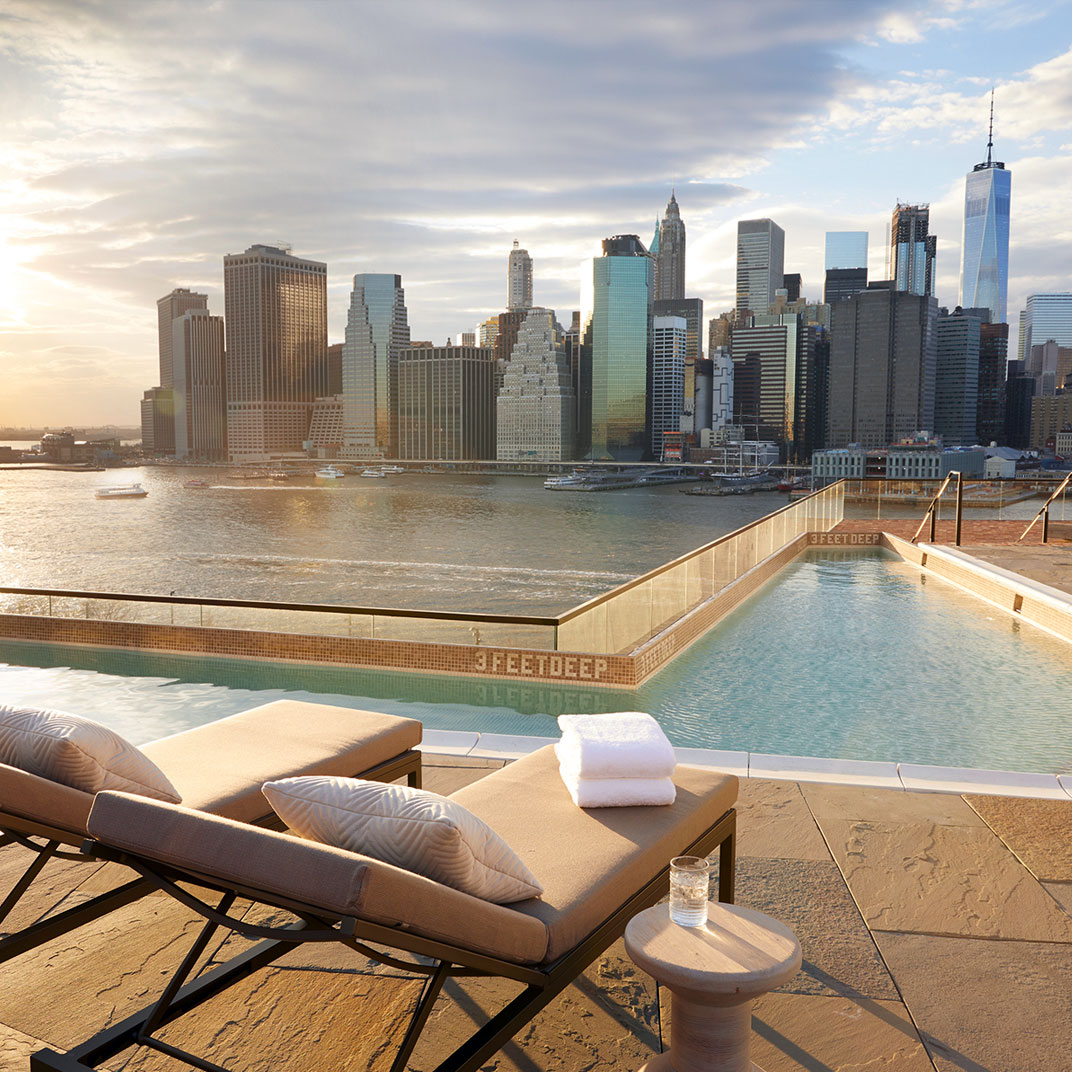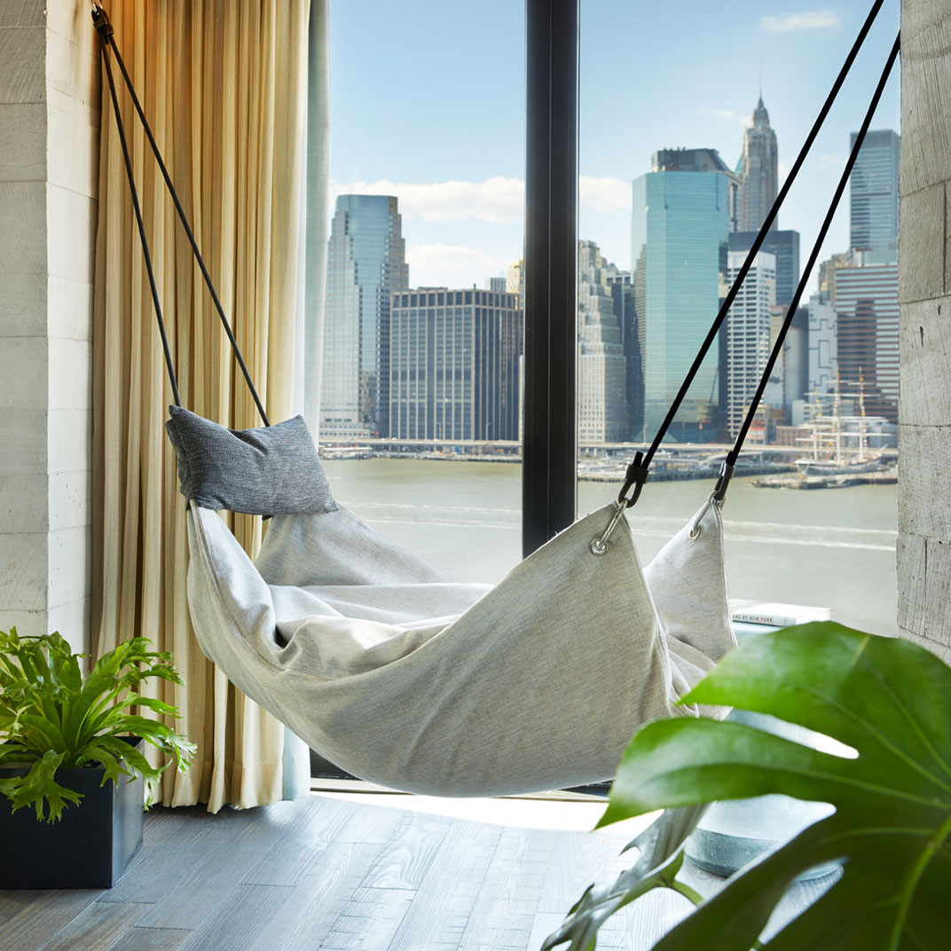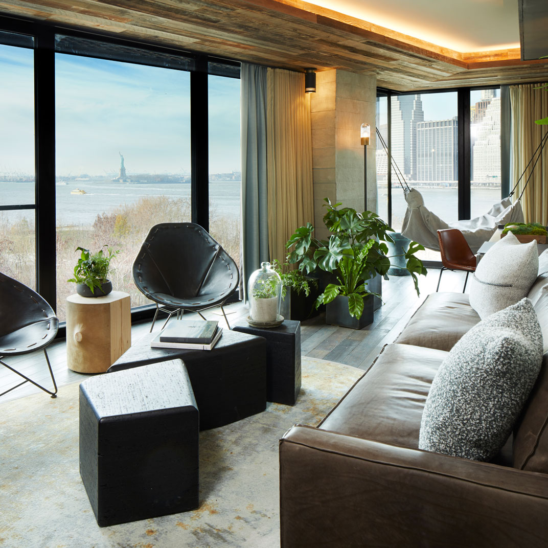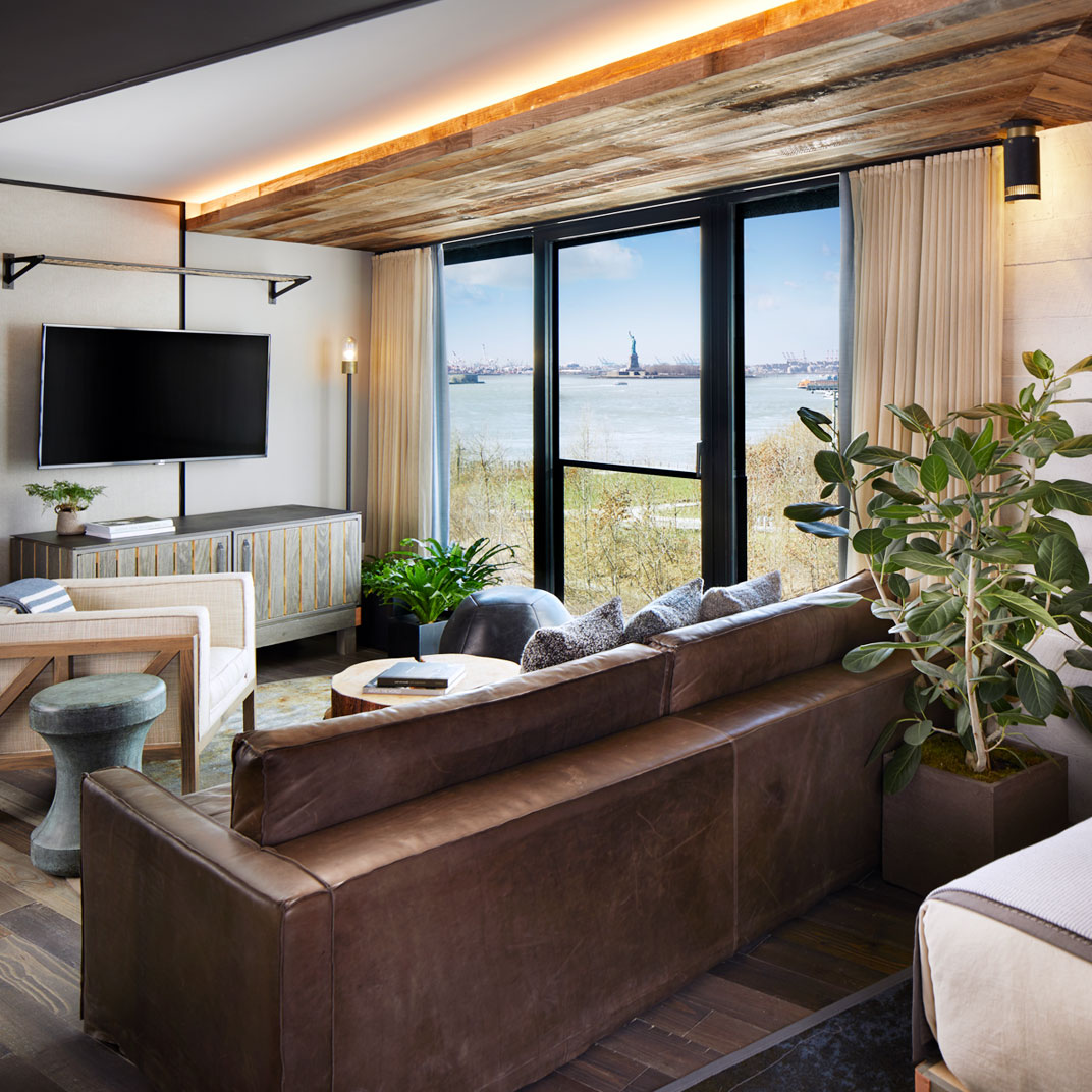 The Manhattan iteration of the 1 Hotels brand may have come first, but that doesn’t mean the Brooklyn edition is an afterthought. 1 Hotel Brooklyn Bridge stands at the edge of Brooklyn Bridge Park, looking across the East River at the Lower Manhattan skyline, a view that’s unique among New York hotels. There’s no more fitting location for 1 Hotels’ eco-luxe aesthetic, with its salvaged materials, stylish design, and low-impact construction than here in Brooklyn, alongside the lush green park that’s been reclaimed from the city’s post-industrial waterfront.