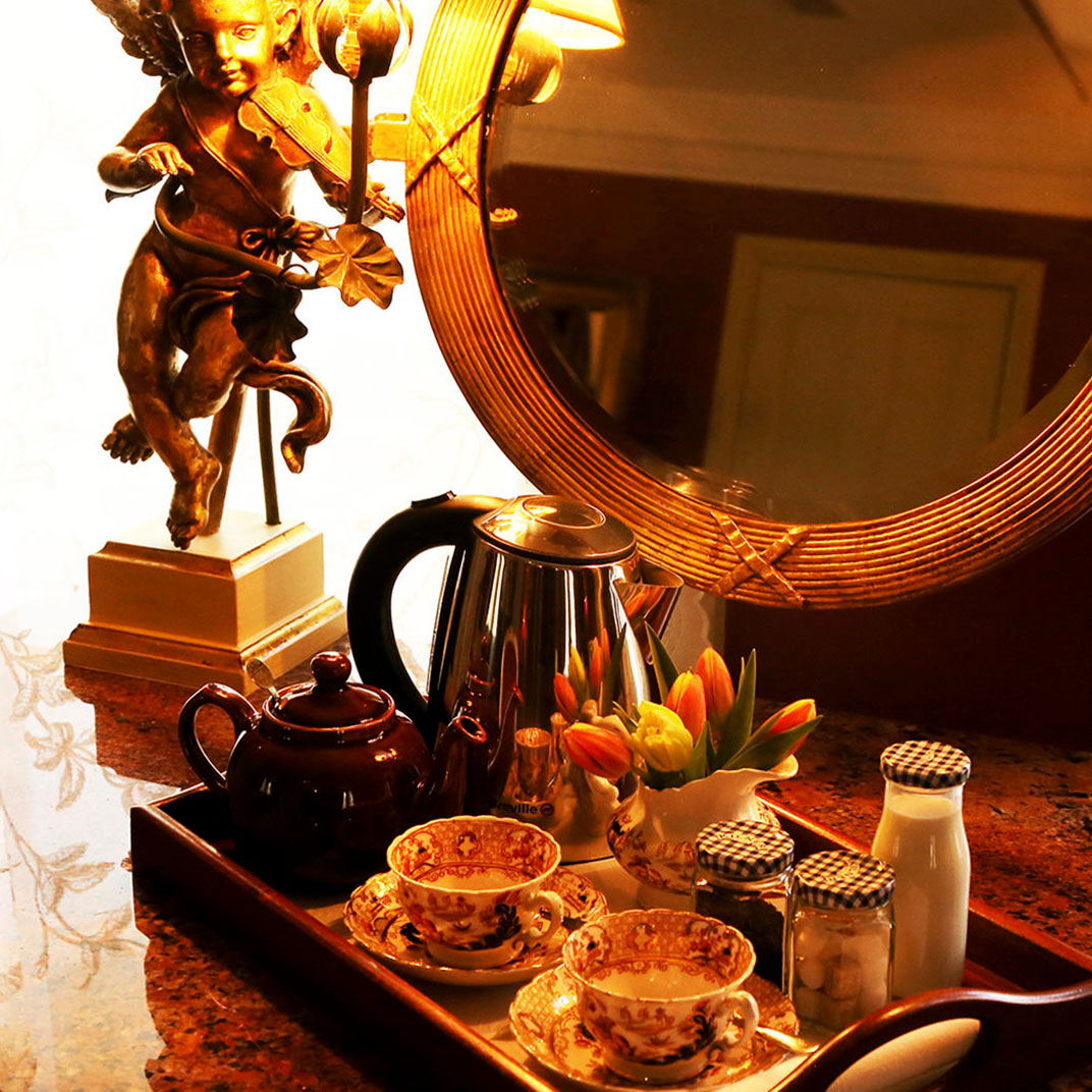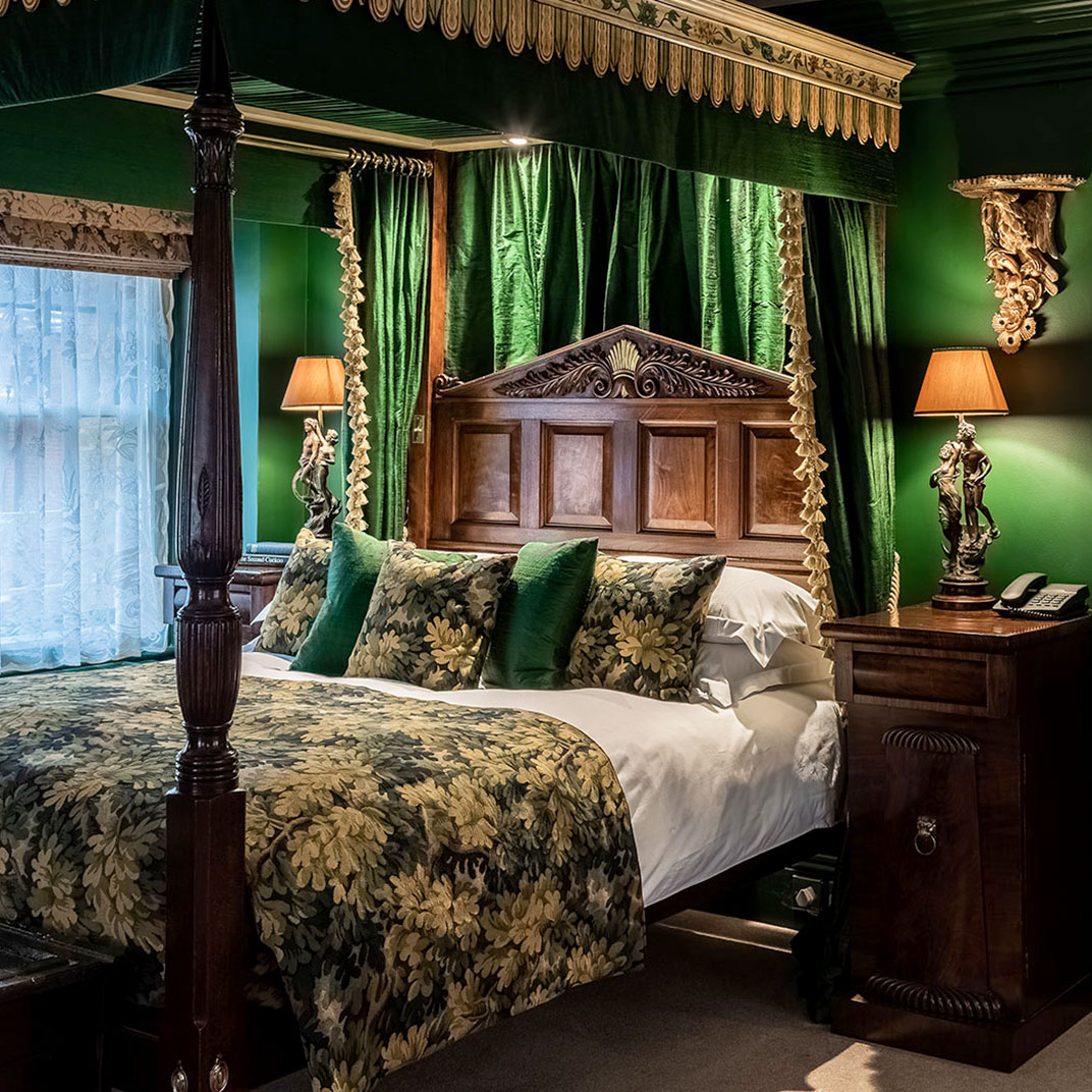 It’s a history that the Rookery (the hotel) trades on quite explicitly. Each one of its bedrooms is unique, and named for characters from the Rookery’s lawless days, not just professionals but criminals and prostitutes as well. Inside they’re beautifully old-fashioned, a Victorian fantasy, some wood-paneled, all antique-furnished, with bathrooms featuring restored Victorian-era plumbing and fittings — a difficult sell to some guests, possibly, but not at all lacking for personality.