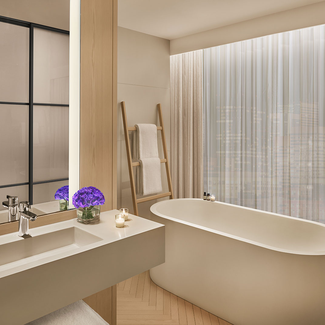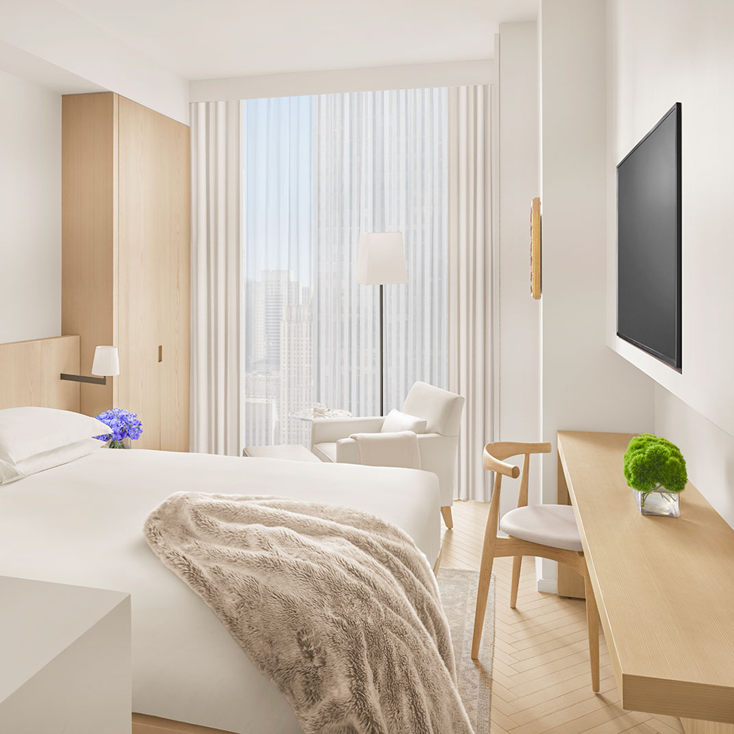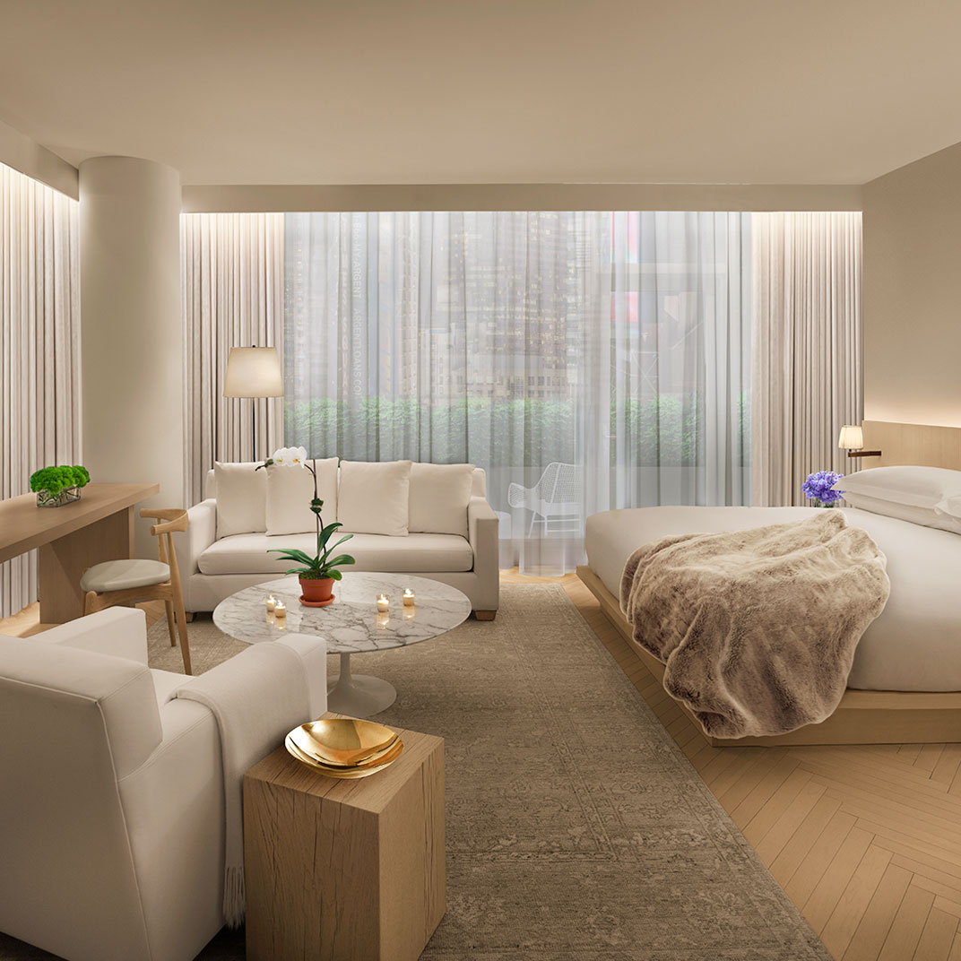 It’s both high-end and high-design, authentically stylish and unapologetically luxe. The public spaces aren’t just inviting, they (crucially) look great in pictures, too. And the rooms couldn’t stand in starker contrast to the scene on the streets of Times Square below; they’re meant to evoke the quiet, secluded calm of a yacht’s cabin, and their subtle color palette, in white and metallic tones, blends harmoniously with whatever personal style you bring to it.