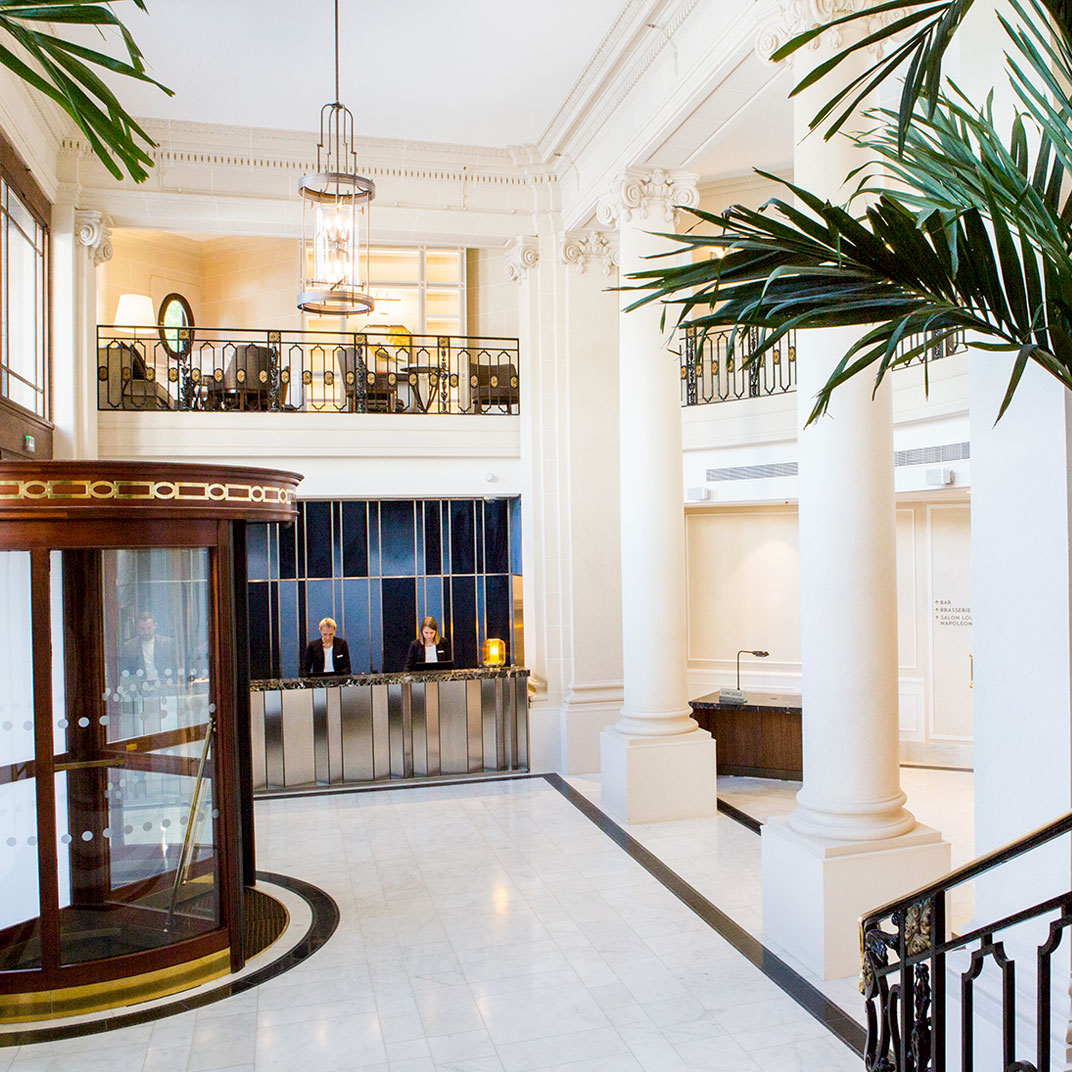 The Brasserie du Louvre features modern-classic French fare, developed under the guidance of legendary chef Paul Bocuse, as well as a terrace facing the Louvre, and the Officine du Louvre, the hotel’s bar, sits under a spectacular glass roof. And the Hôtel du Louvre’s capable staff will happily pursue reservations at any of Paris’s vast selection of extraordinary restaurants — as well as excursions that take advantage of the hotel’s unique location, from museum visits to tours of Louis XV’s personal wine cellar.