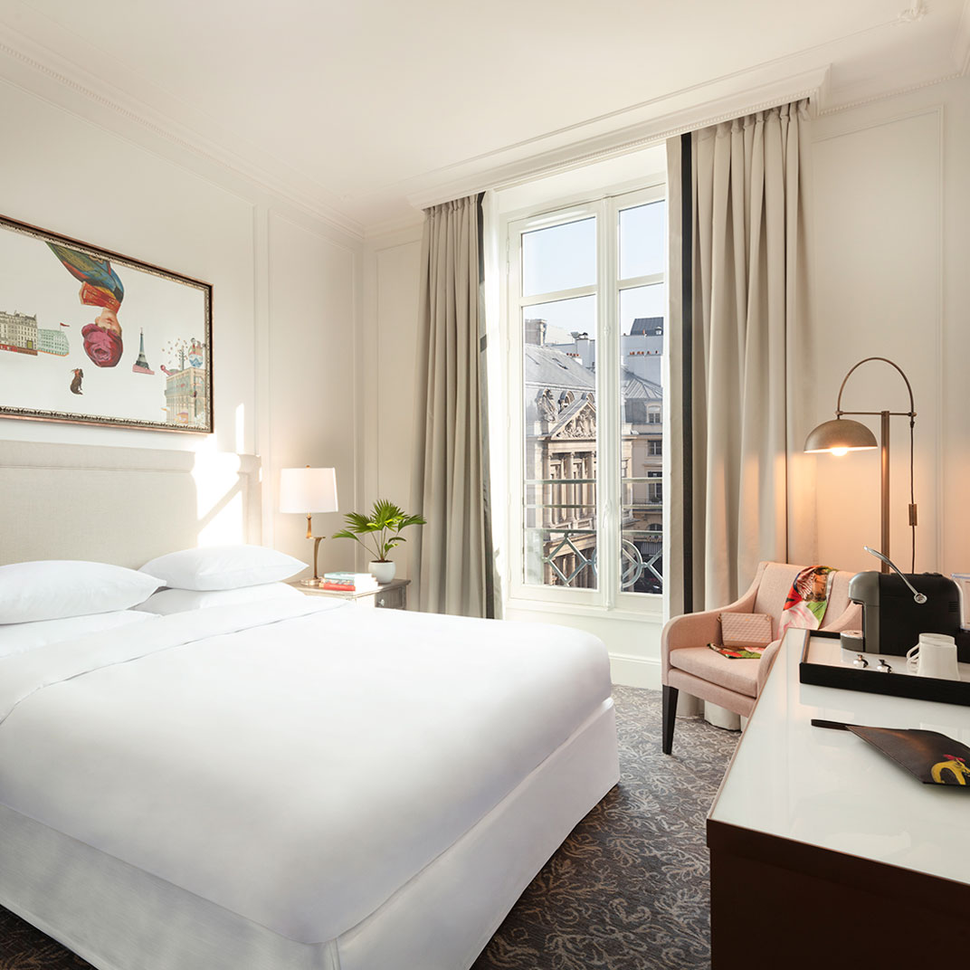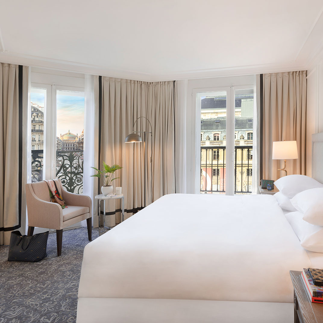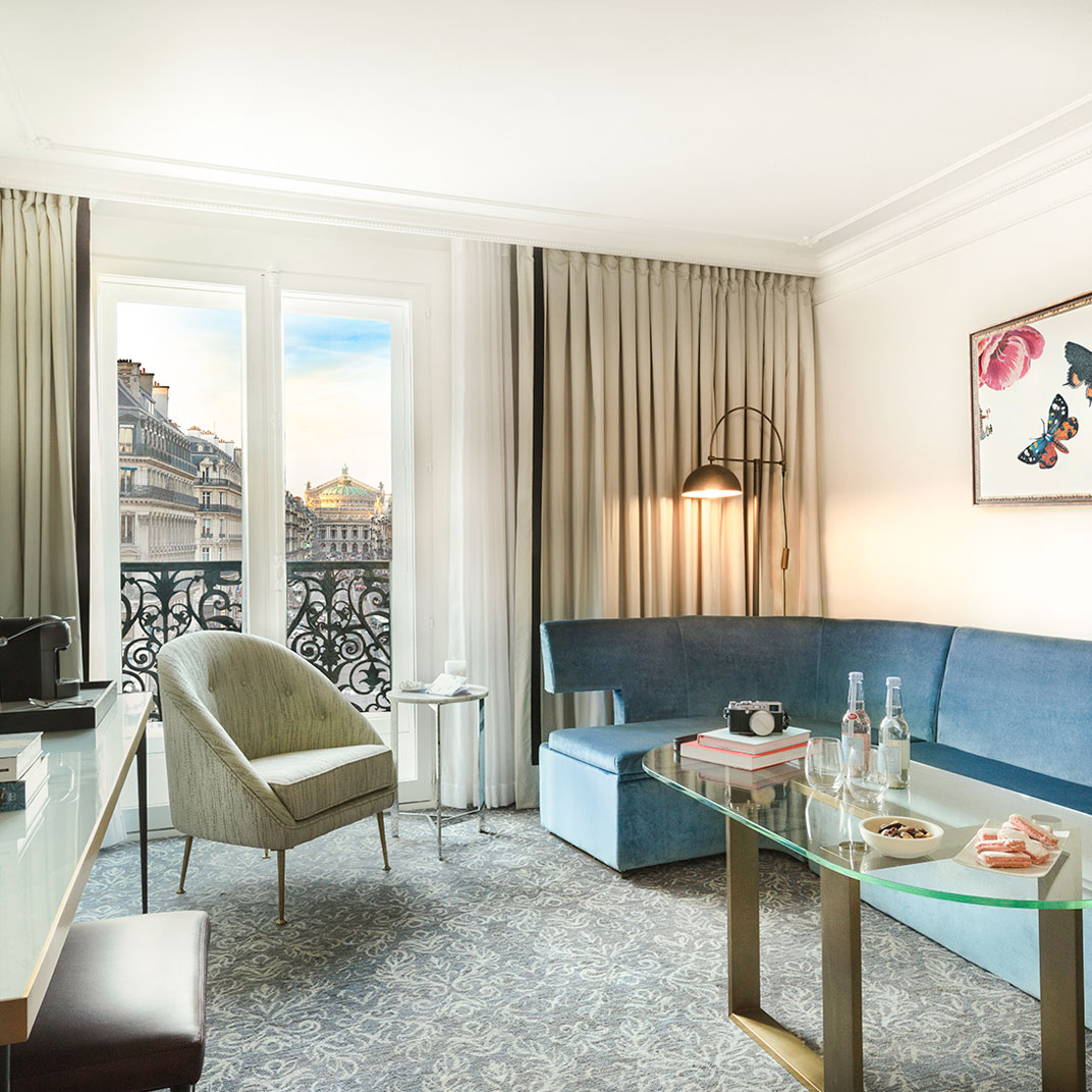 The Haussmannian building in which it sits is a classic, while its interiors are perhaps surprisingly contemporary — still Parisian to the core, but with a subtlety and a lightness that feels modern. The rooms and suites are state-of-the-art, efficiently laid out and shockingly quiet, and thanks to the hotel’s extraordinary location many of them offer views of the Louvre, the Comédie Française, the Avenue de l’Opéra, and at the high end even the Palais-Royal.