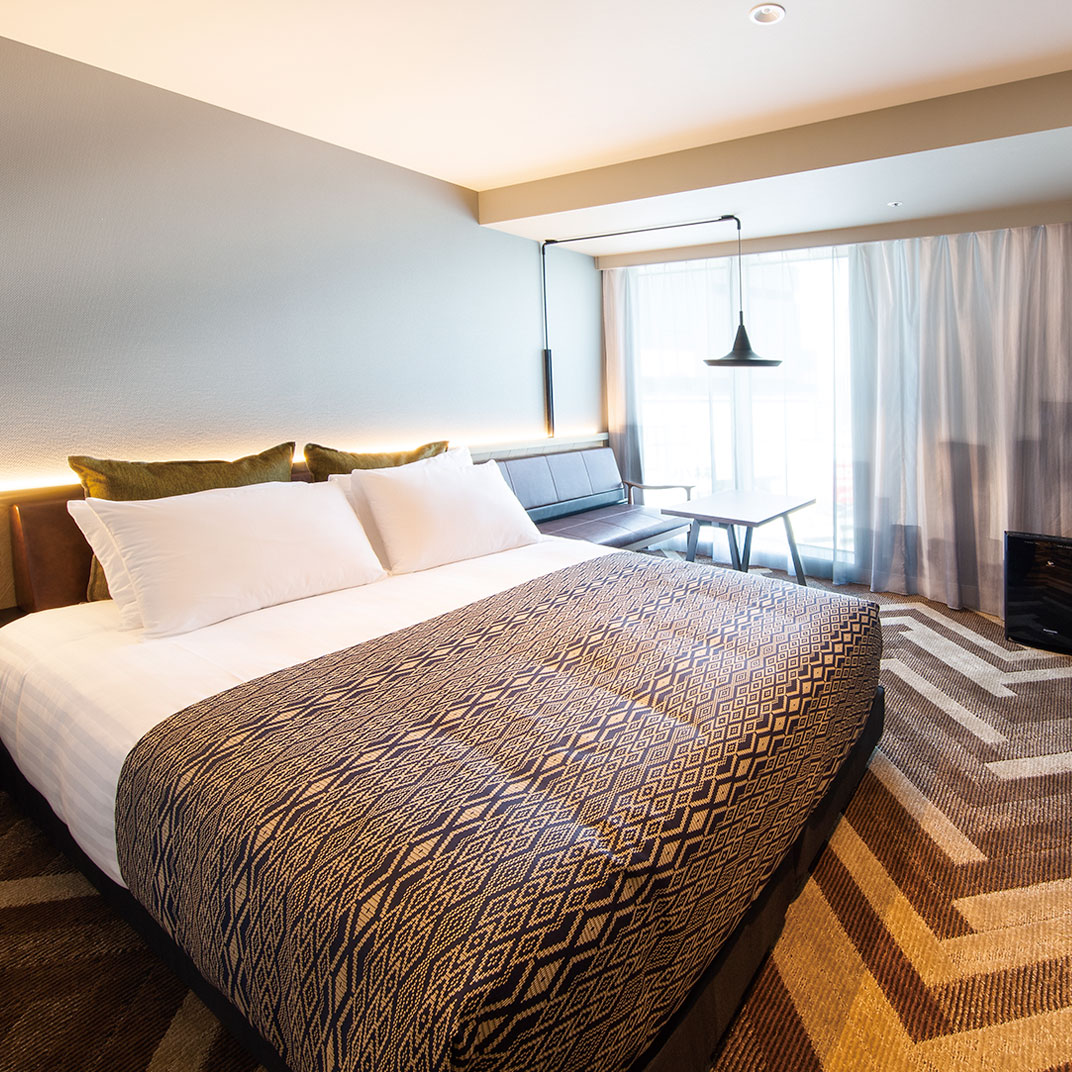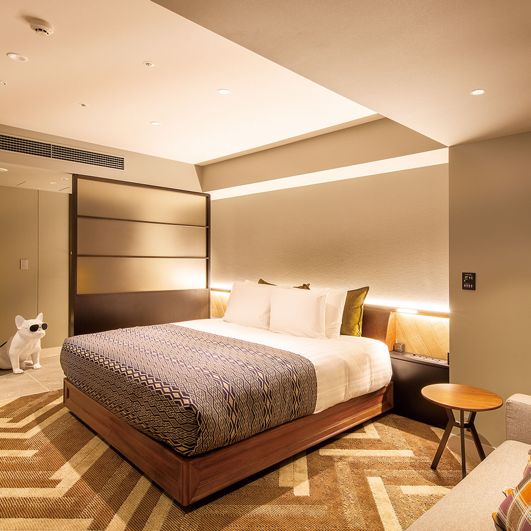 This means contemporary colors, patterned textiles and upholstery, clean modernist lines, functional desks and lounge space, and wardrobes that can handle a fashionista’s costume changes. It also means a lobby lounge that’s a warm and inviting place to pass time, with a variety of spaces for multiple uses. And finally it means Torrent, the restaurant and bar just off the lobby lounge, offers modern Japanese cuisine with a French fine-dining influence. All of this just yards from Shibuya Crossing, the world’s busiest intersection, surrounded by all manner of world-class shopping, dining, and entertainment.