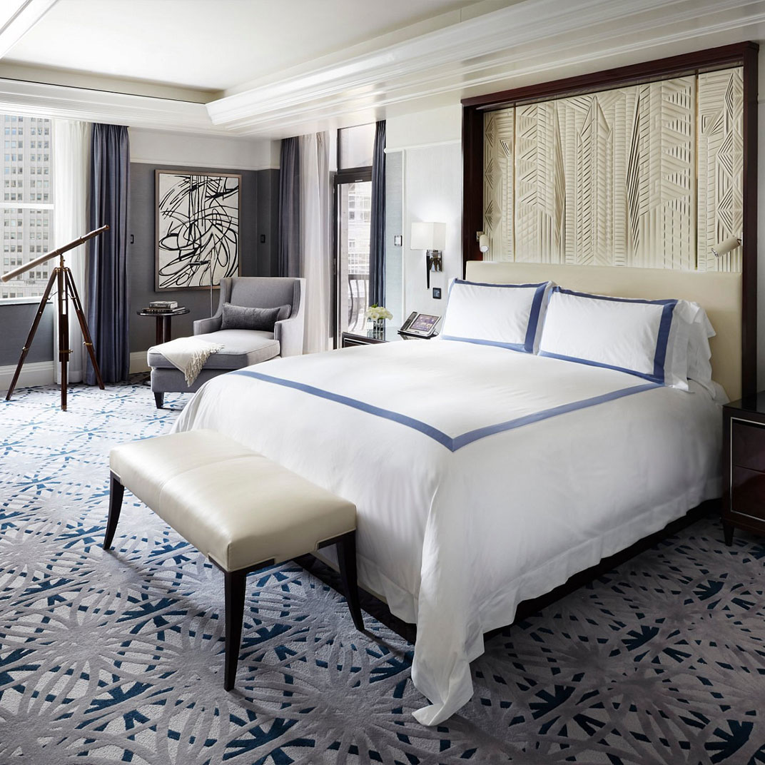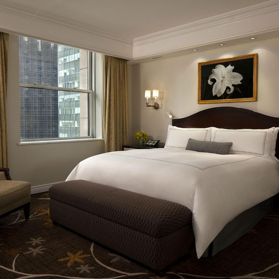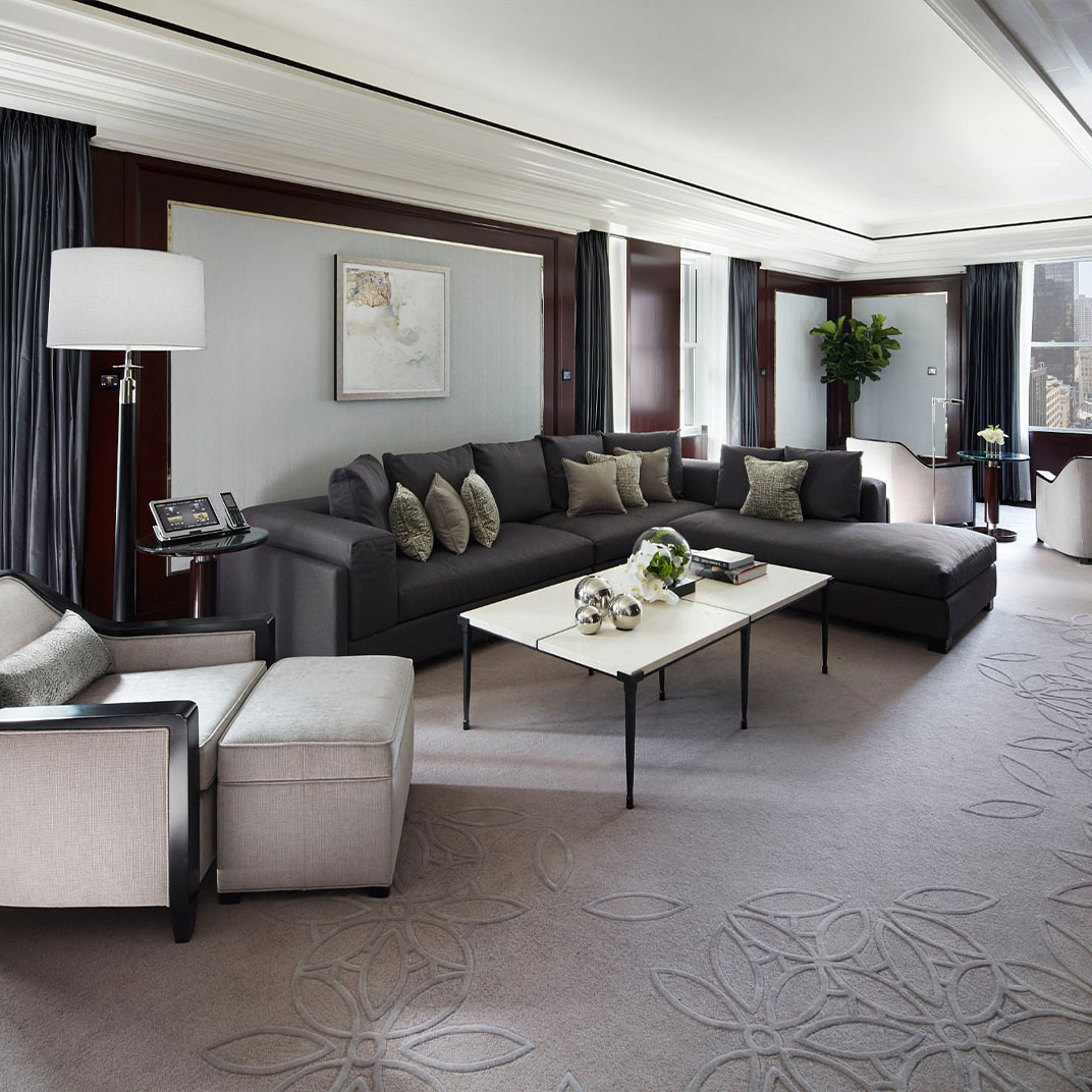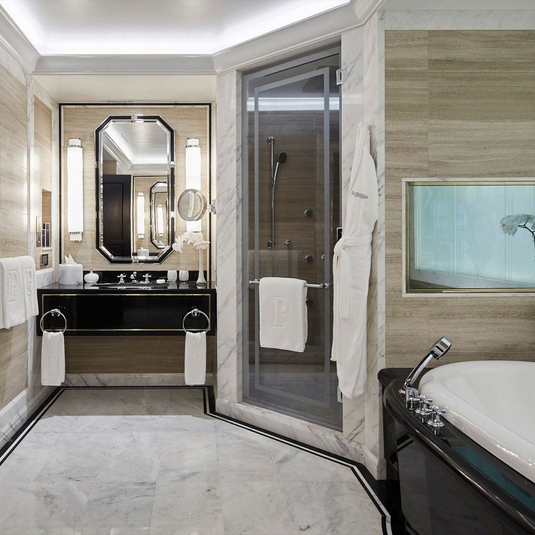 Service is characteristically precise and efficient, whisking guests through the grand columned lobby and up to the spanking-new guest rooms, all contemporary elegance with Art Nouveau furnishings and a subtle Asian influence. Views are phenomenal — overlooking this stretch of Fifth Avenue one feels at the very center of the world — and the amenities are state-of-the-art, with high-tech entertainment systems, infinitely adjustable lighting, and deep soaking tubs with LCD televisions and bath-side control panels.