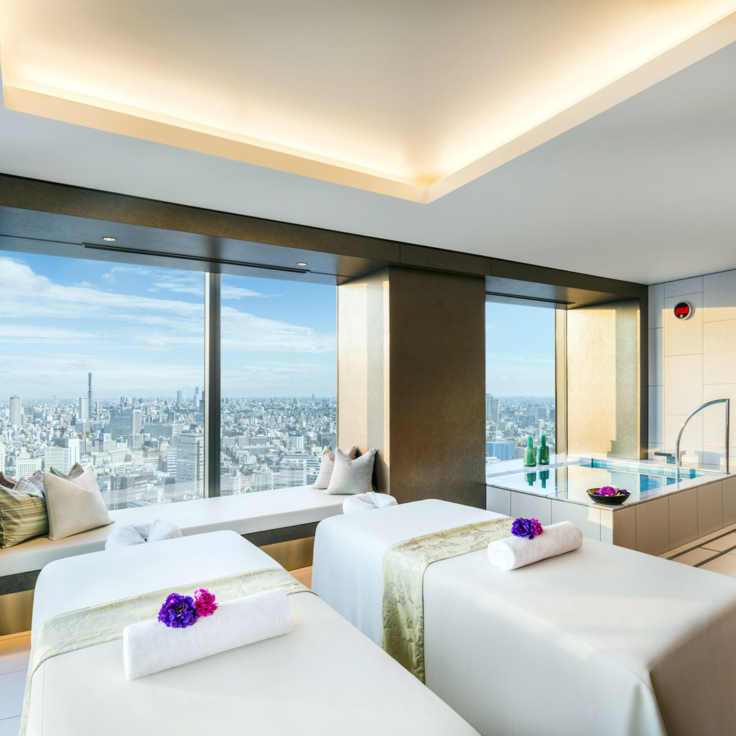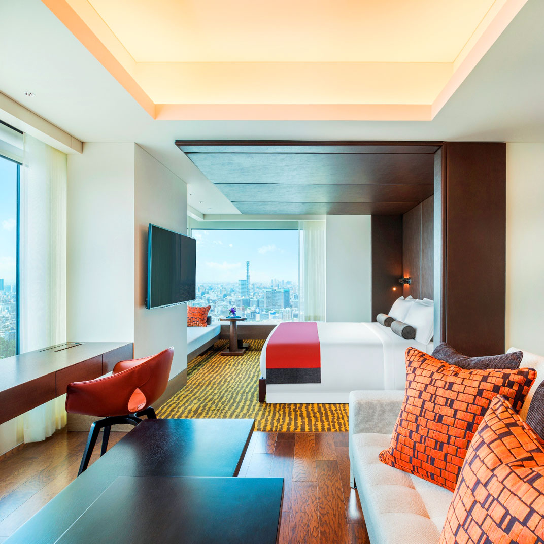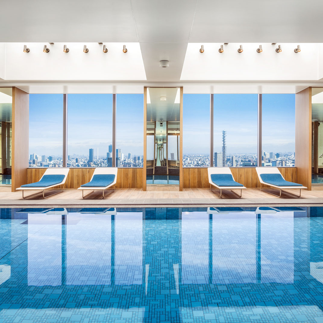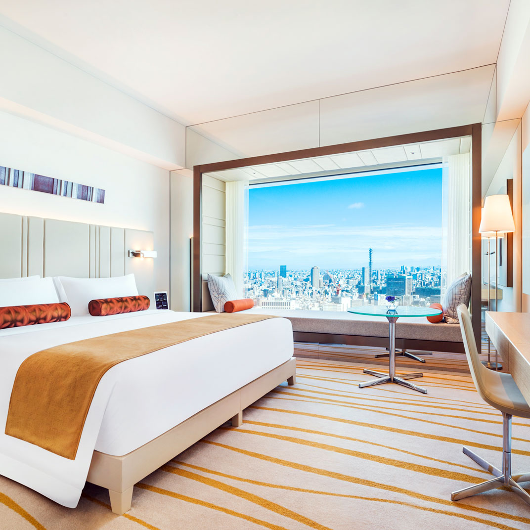 As with many hotels of this ilk, the Club Lounge is a hive of activity; visit as much for its sweeping panorama as its facilities: pool, Swiss spa, welcome drinks, shoeshines, and a full suite of business services. A trio of suitably elegant restaurants round out the experience — Washoku Souten gets our vote for its traditional Japanese cuisine and sake bar in a crystalline space with wraparound exposure — while a matching trio of bars sustain the impeccable service in ambiences ranging from candles-and-velvet to commanding views of the twinkling urban twilight. A nightscape for a nightcap.
