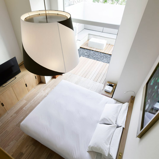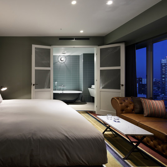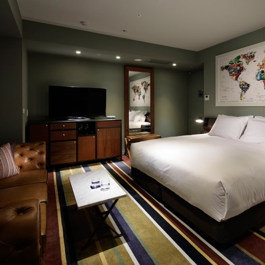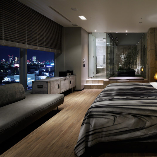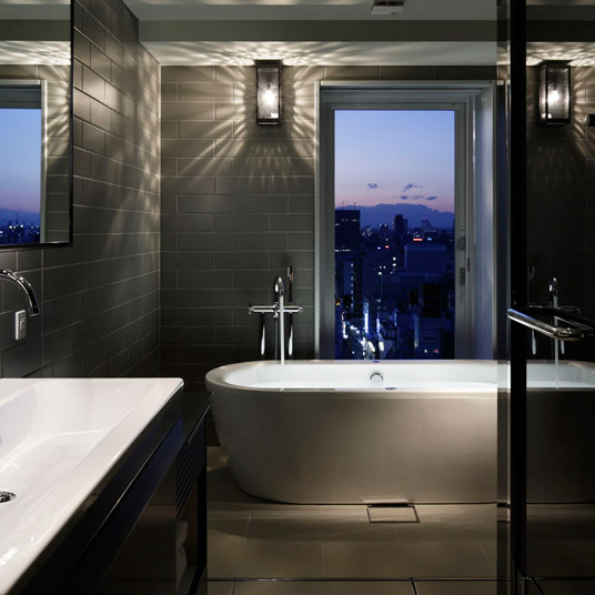 Though only a stone’s throw away from the shanties of Golden Gai, Granbell Hotel is anything but. Opened in December 2013, the hotel was designed with the help of a handful of artists and creative directors from both Japan and elsewhere; and the resulting style is thoroughly contemporary. Space in the standard rooms is a bit tight, but the clean, compact design and the thoughtful lighting fixtures make it feel cozy rather than claustrophobic. Meanwile some of the “Loft” rooms, with their11-foot ceilings, come with a private terraces, a rarity in Tokyo. The Executive Rooms offer a sweeping view of the Shinjuku skyline, and many of them have a stylish soaking tub by a window, too. And even if you don’t have much of a view in the room, there’s the rooftop bar and terrace — another bit of rarity in Tokyo. It’s open until four in the morning, so you can count on it for drinks, casual bites and far-ranging views, no matter your jet-lag situation.