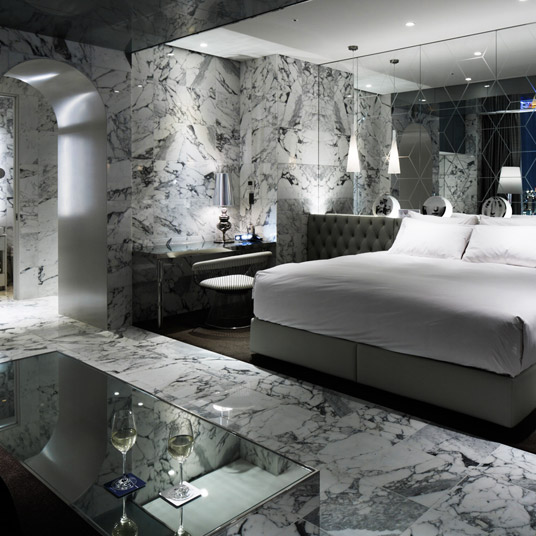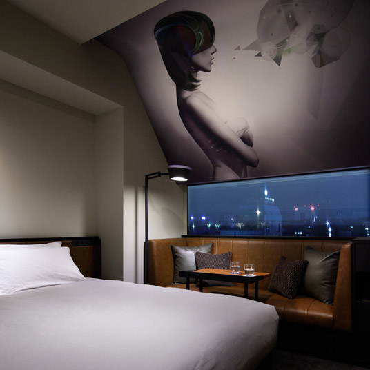 If your Tokyo fantasy is fashioned more in the style of Gasper Noé’s Enter the Void than a certain Sofia Coppola high-rise romance, the still somewhat seedy Kabukicho area in Shinjuku would be the place to be. During the day, the neighborhood is quiet and pleasantly retro, a rarity in this otherwise futuristic city, and once the sun goes down, the streets come alive with the neon signs of bars, pubs, late-night eateries and other businesses that seem to get busier as the sky darkens. It’s the perfect setting for a hotel with just a little bit of an edge, which is where Granbell Hotel Shinjuku fits in.