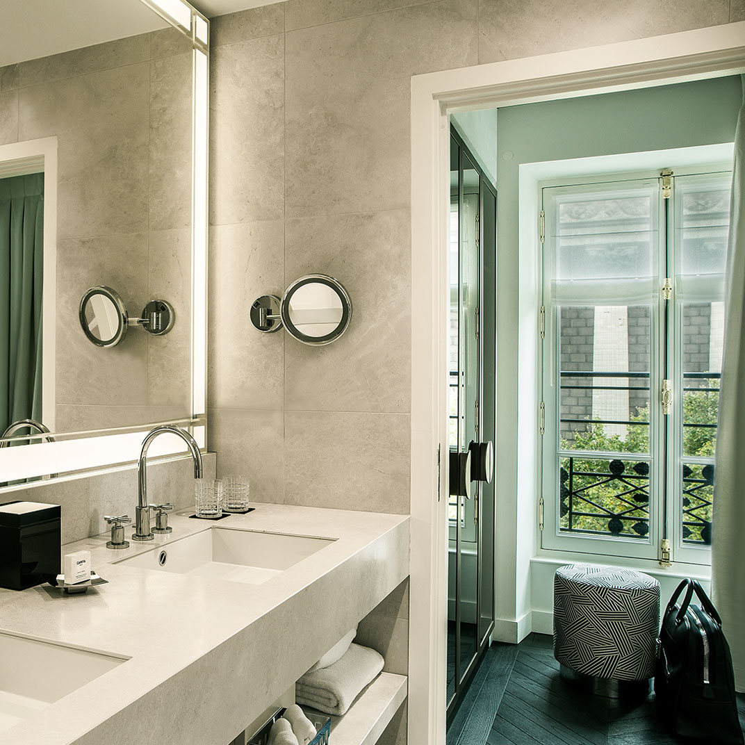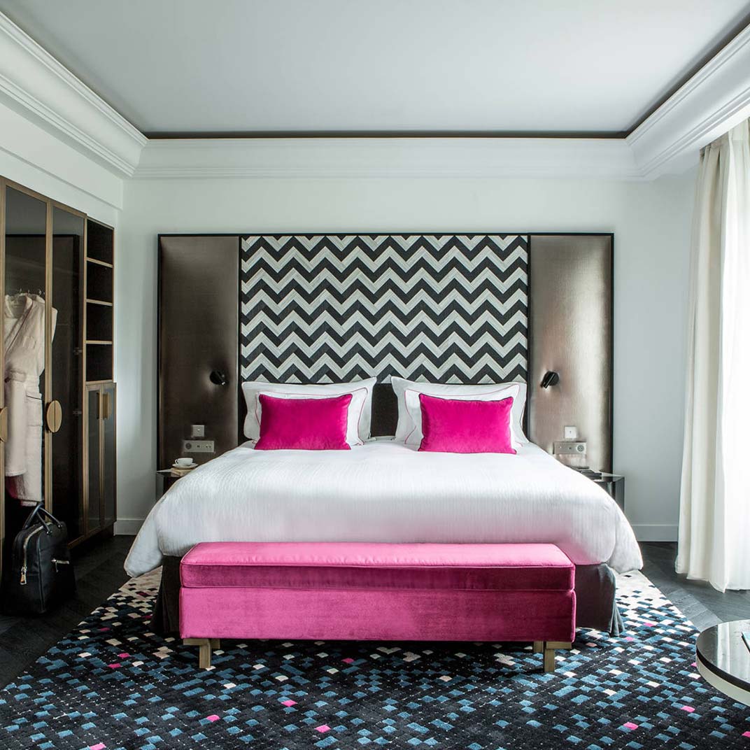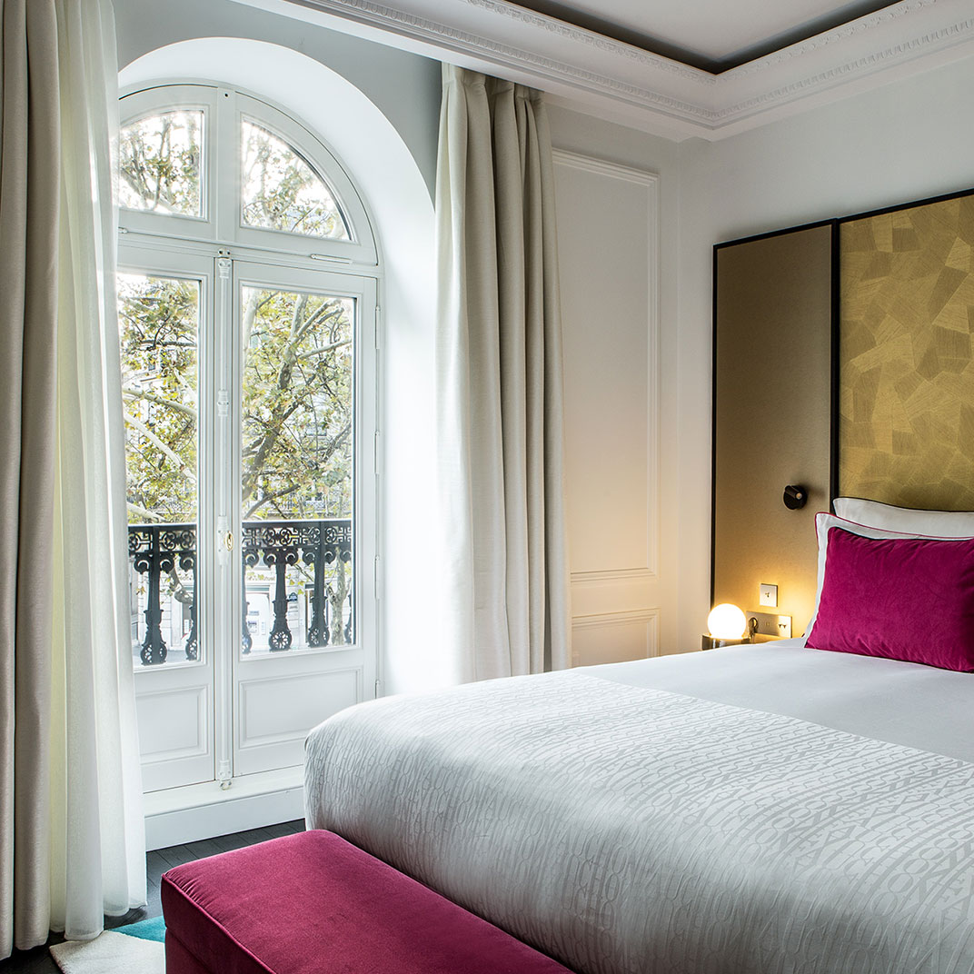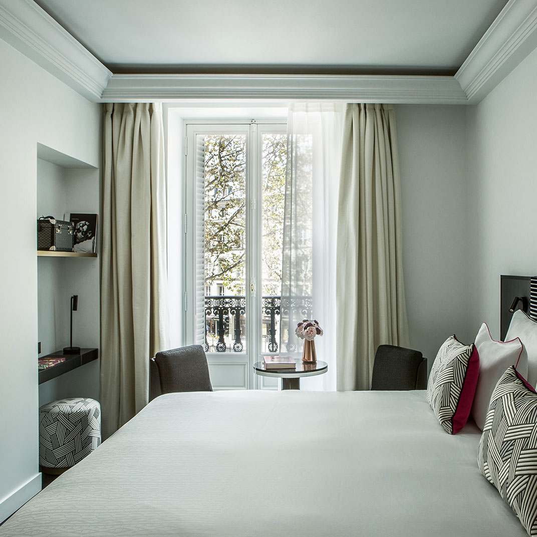 The rooms and suites are exactly what we mean when we say “contemporary classic” — they’re typically Parisian, with 19th-century architectural elements, graphic echoes of Art Deco, and custom furniture in a contemporary color palette. All the details are entirely up to date, including some impressive electronics, and Fauchon’s culinary heritage means you’re provided with a liberal assortment of sweets and small bites in your in-room mini-pantry.