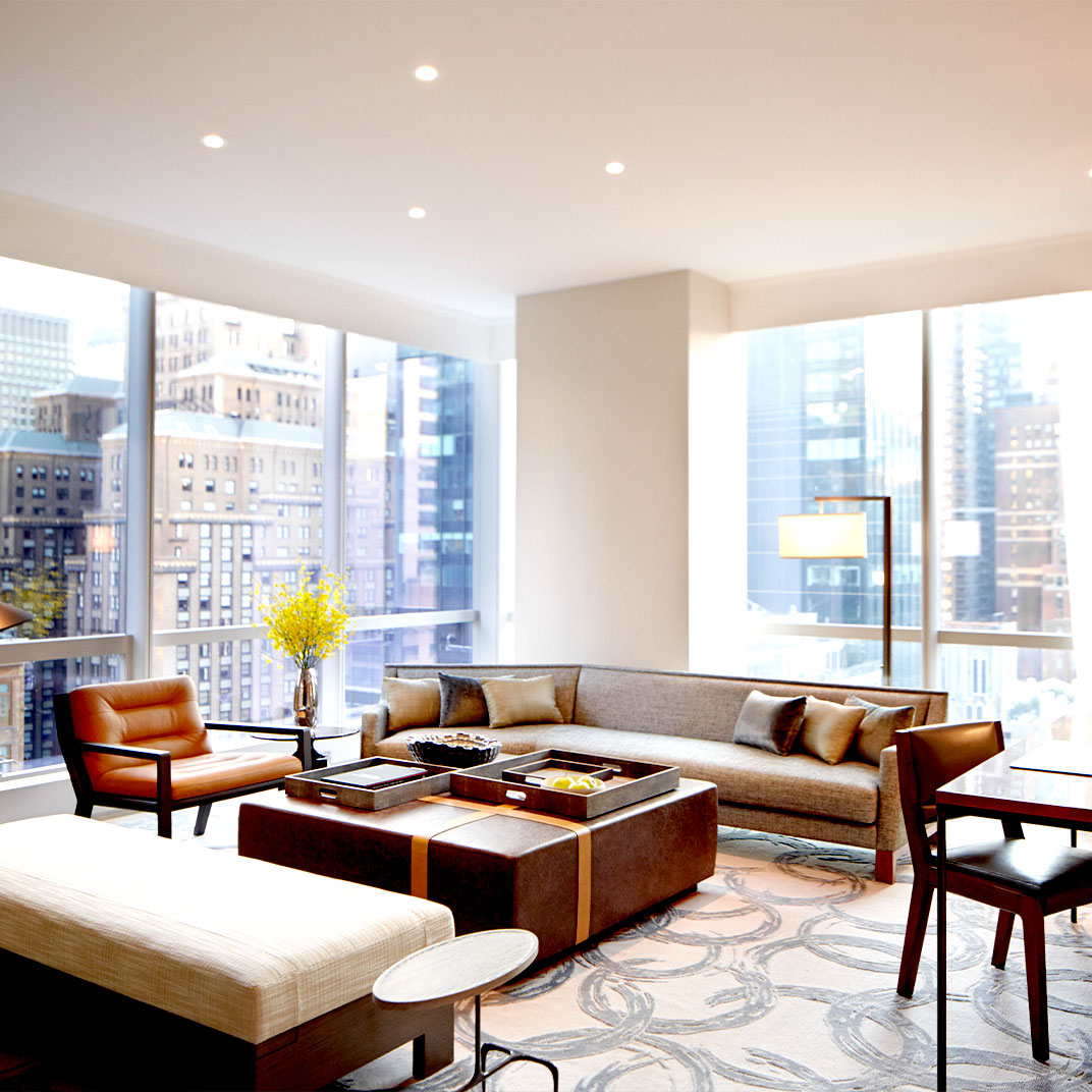 The rooms and suites are full of visual interest and tactile comfort, and come with as much modern technology as a savvy traveler can manage, and no more — this includes not just communications, connectivity and remote-control everything, but thoughtful touches like Nespresso coffee makers and Japanese-style Toto toilets as well. Views range from “quite good” to “tremendous,” the latter mostly in the suites, which’ll give you a little taste of what it feels like to be one of One57’s upper-floor residents.