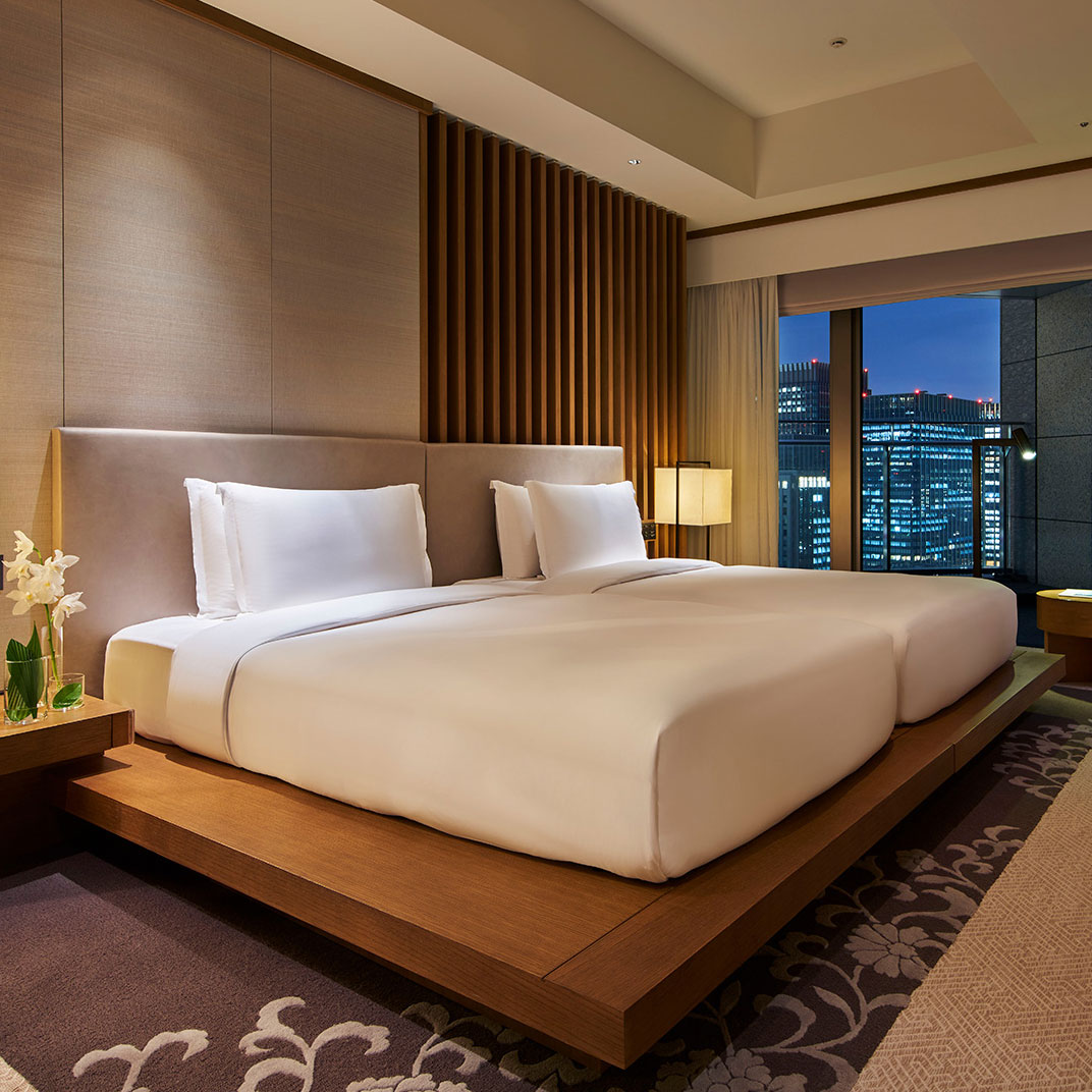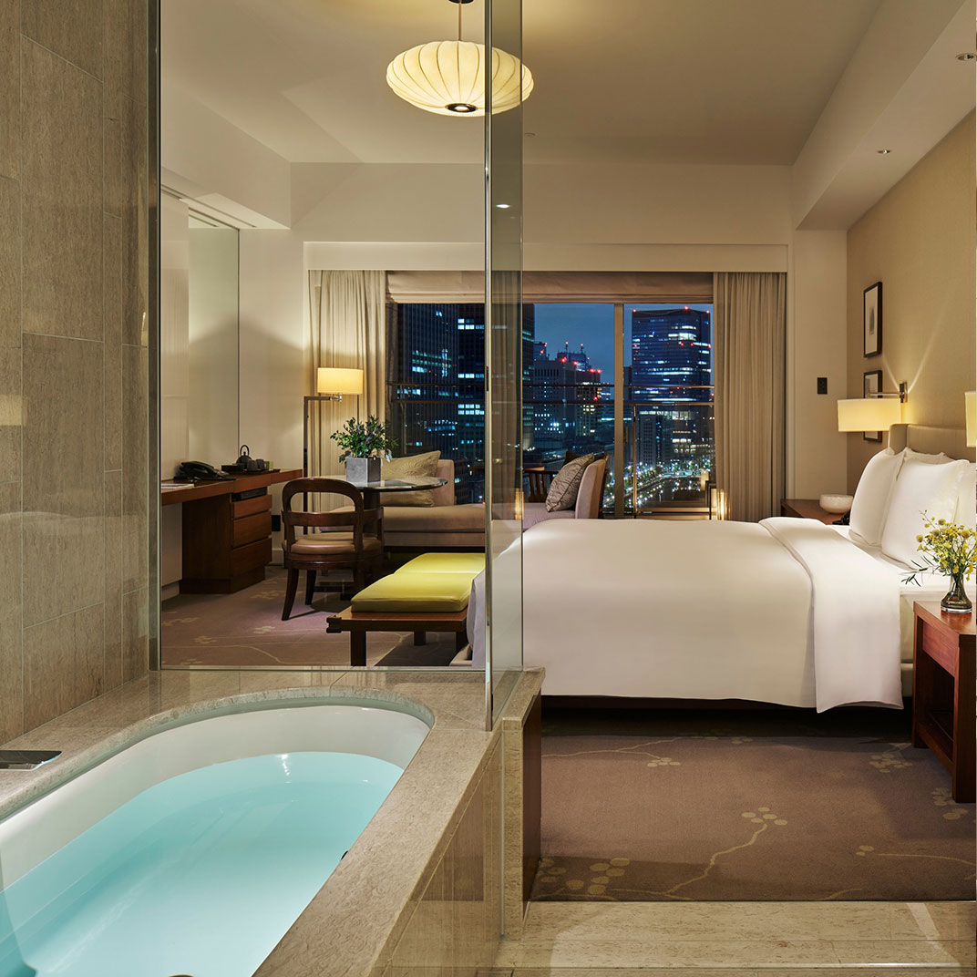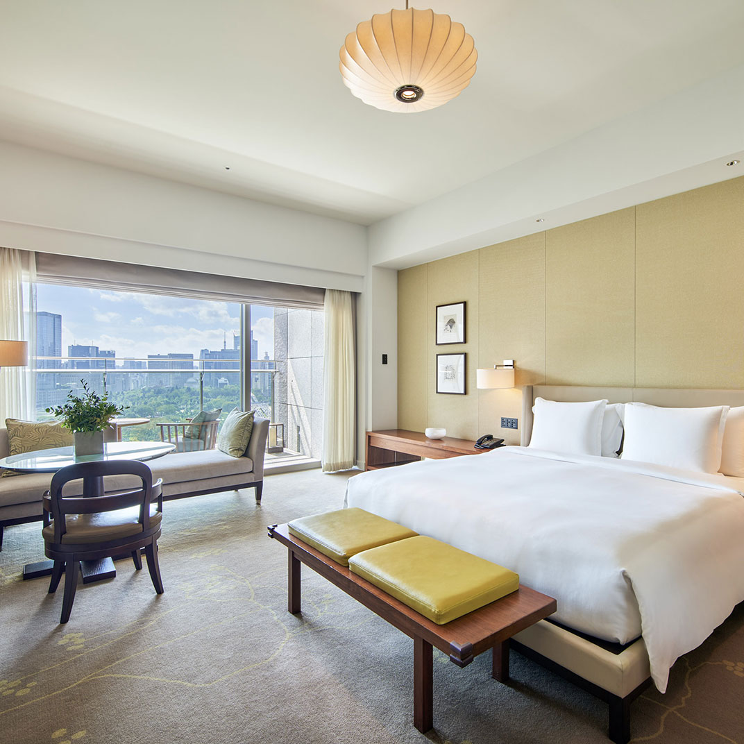The architecture and design are as perfectly sober and calm as you’d expect from a high-end Japanese luxury hotel, and the modern-Japanese interiors feel perfectly weighted, carefully considered, expertly crafted. The most basic Deluxe Rooms are hardly basic at all, and the better ones quickly scale the heights, adding balconies, living rooms, and the like. And the views of the Palace grounds and the city benefit from the fact that they’re scaling literal heights as well, all the way on up to the Palace Suite.