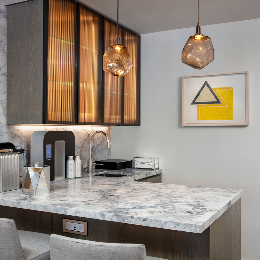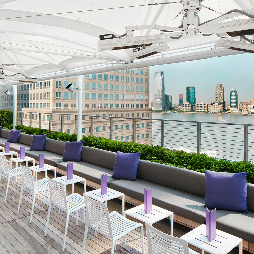 Conrad took over the property from a relatively undistinguished business chain, resulting, even after a thorough renovation, in a couple of unusual features. It’s an all-suite hotel, for one thing, and there’s something a touch residential about the layout of the suites. And the towering central atrium is something you don’t see much anymore — in this case it’s livened up considerably by the inclusion of some space-filling sculptural elements and an enormous, colorful 13-story Sol LeWitt artwork called Loopy Doopy. The rooftop bar, with its views of the Statue of Liberty, takes the same name, while Atrio, the wine bar and restaurant, is the Conrad’s signature venue. Cross West Street for the World Trade Center, head north into Tribeca, and from there you’ve got all of Downtown proper at your feet.